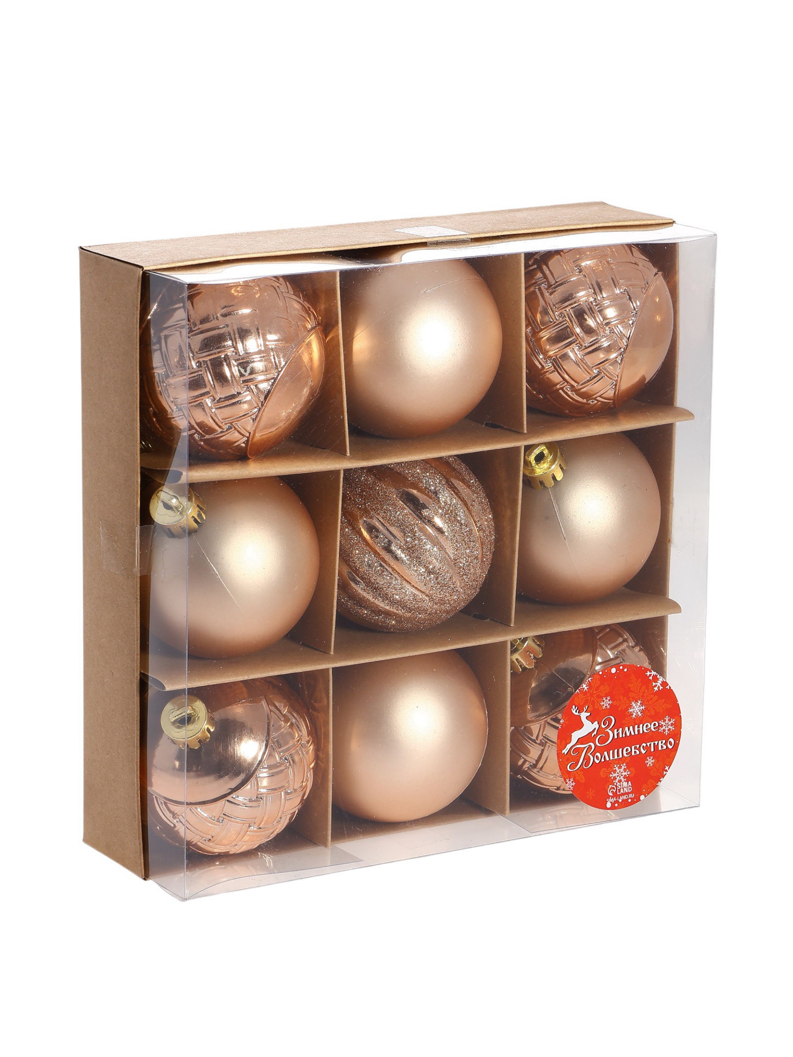 Ёлочные игрушки "Изабель", шары новогодние, набор 9 шт., геометрия, золото, 6x6 см., Зимнее волшебство, Китай
