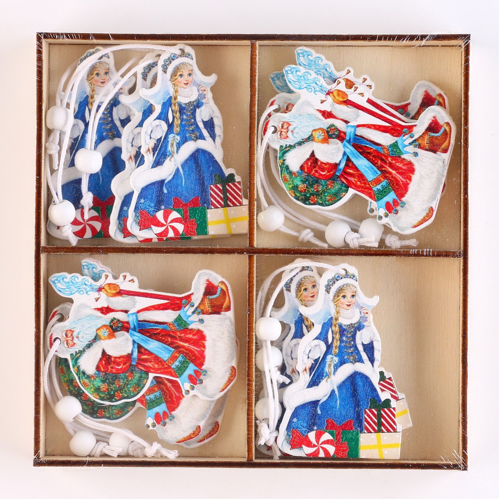Подвески "Дед Мороз и Снегурочка", набор 12 шт., МИКС, 4.5x6x13 см., Китай