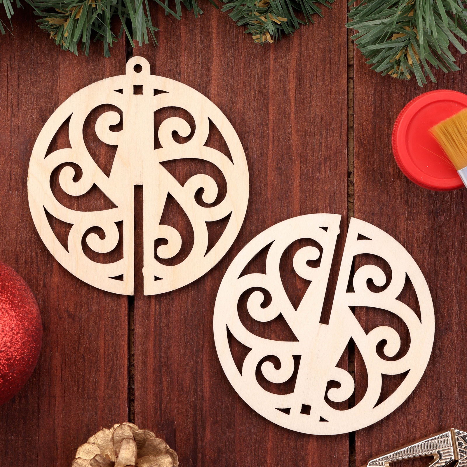 Деревянная игрушка на ёлку "Завитки", шар, диаметр 8 см, Россия