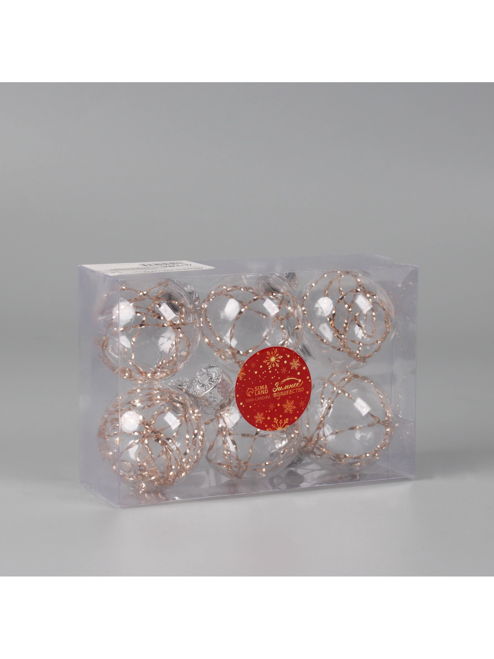 Особенности: Прозрачная, С наполнением Цвет: Золотистый, Прозрачный Стиль: Ар-деко, Новогоднее барокко Размер упаковки: 11.5 x 6 x 17.5 см. Диаметр шара, см: 6 Набор: Да В наборе, шт.: 6 Форма игрушки: Шар Символ года: Нет Тематика праздника: Новый год tnved: 9505109000 Рисунок: Нет Украсьте ёлку элегантными шарами с прозрачным золотистым сиянием. Набор из 6 новогодних шаров диаметром 6 см выполнен в сочетании стилей арт-деко и барокко. Пластиковые шары с наполнением создают эффект глубины и отражают свет, привнося праздничную атмосферу в интерьер. Преимущества набора
