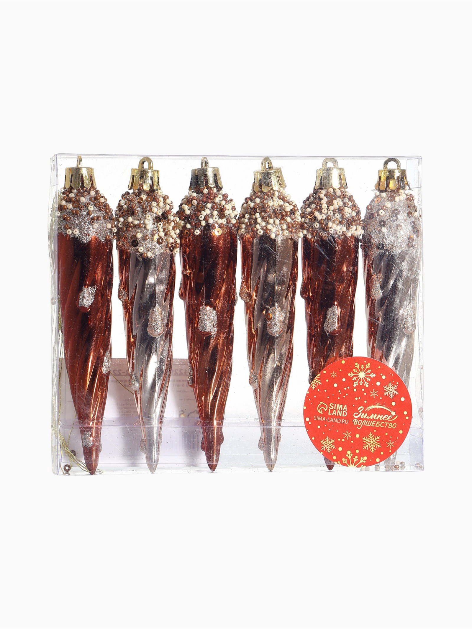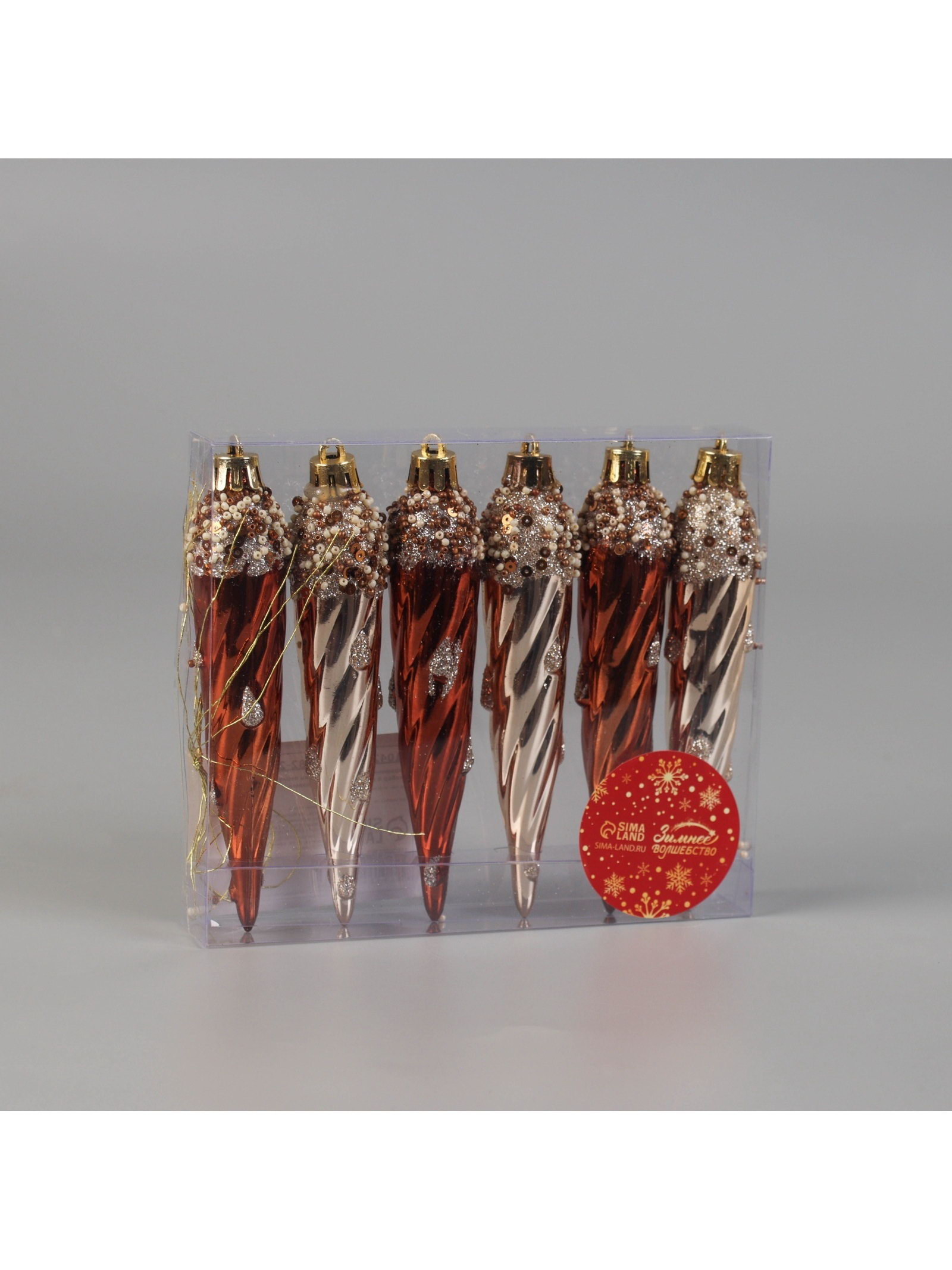 Ёлочные игрушки набор 6 шт. "Сосулька верхушка блеск", 13x3 см, золото/коричневый, 3x13 см., Зимнее волшебство, Китай
