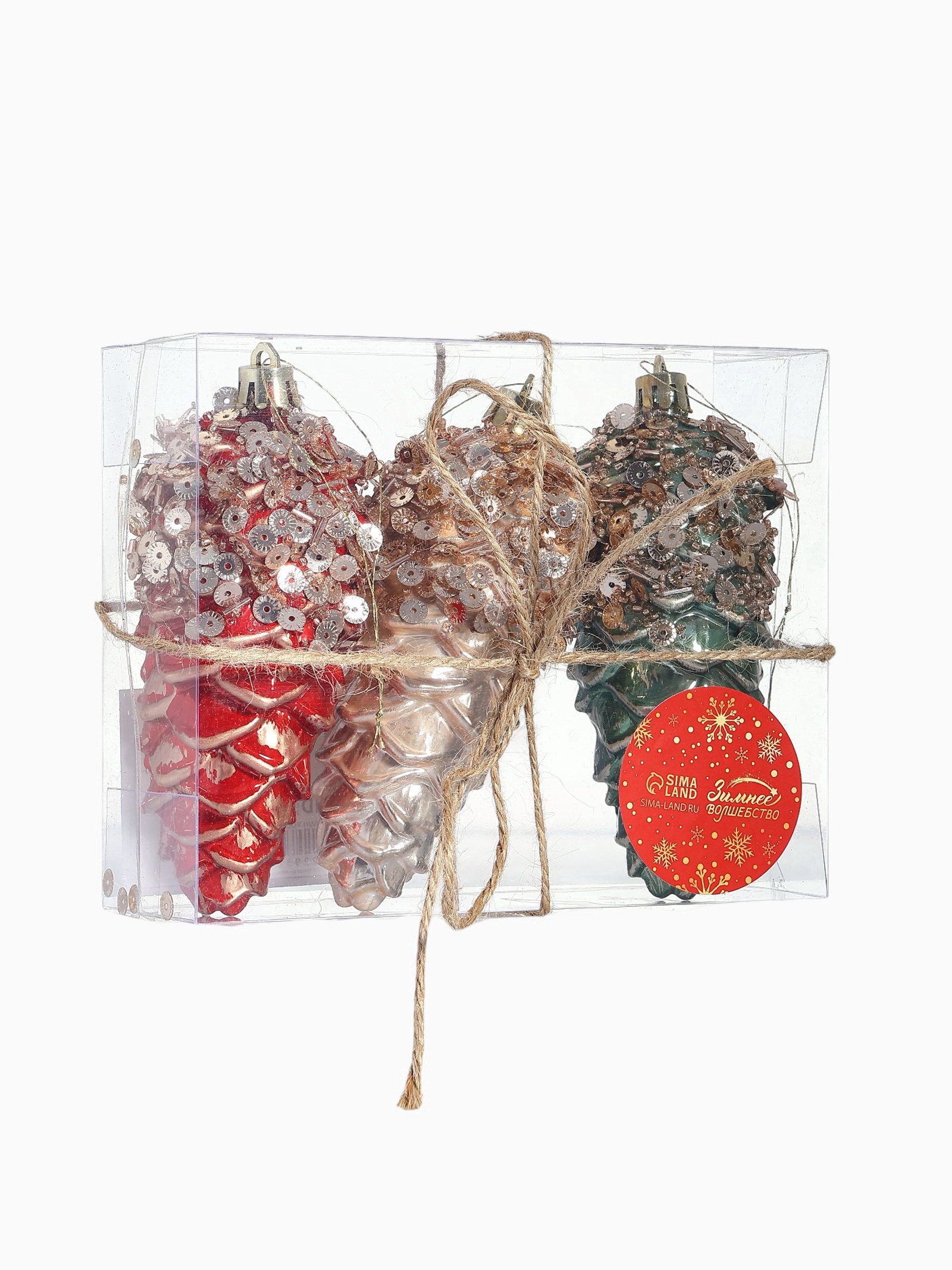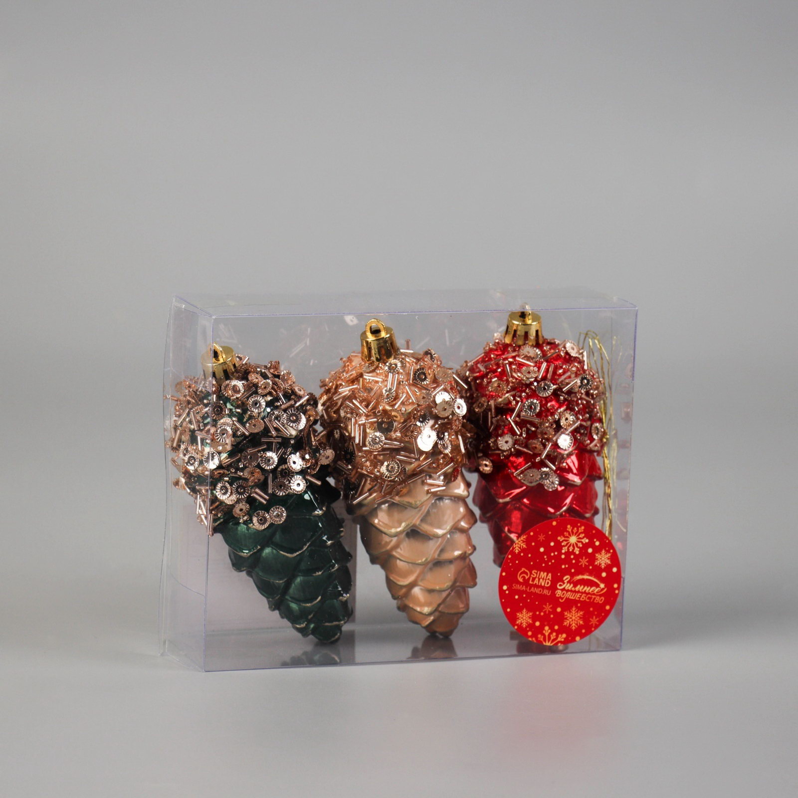 Ёлочные игрушки 3 шт. "Шишка Коул" 12x4 см, микс, 4x12 см., Зимнее волшебство, Китай