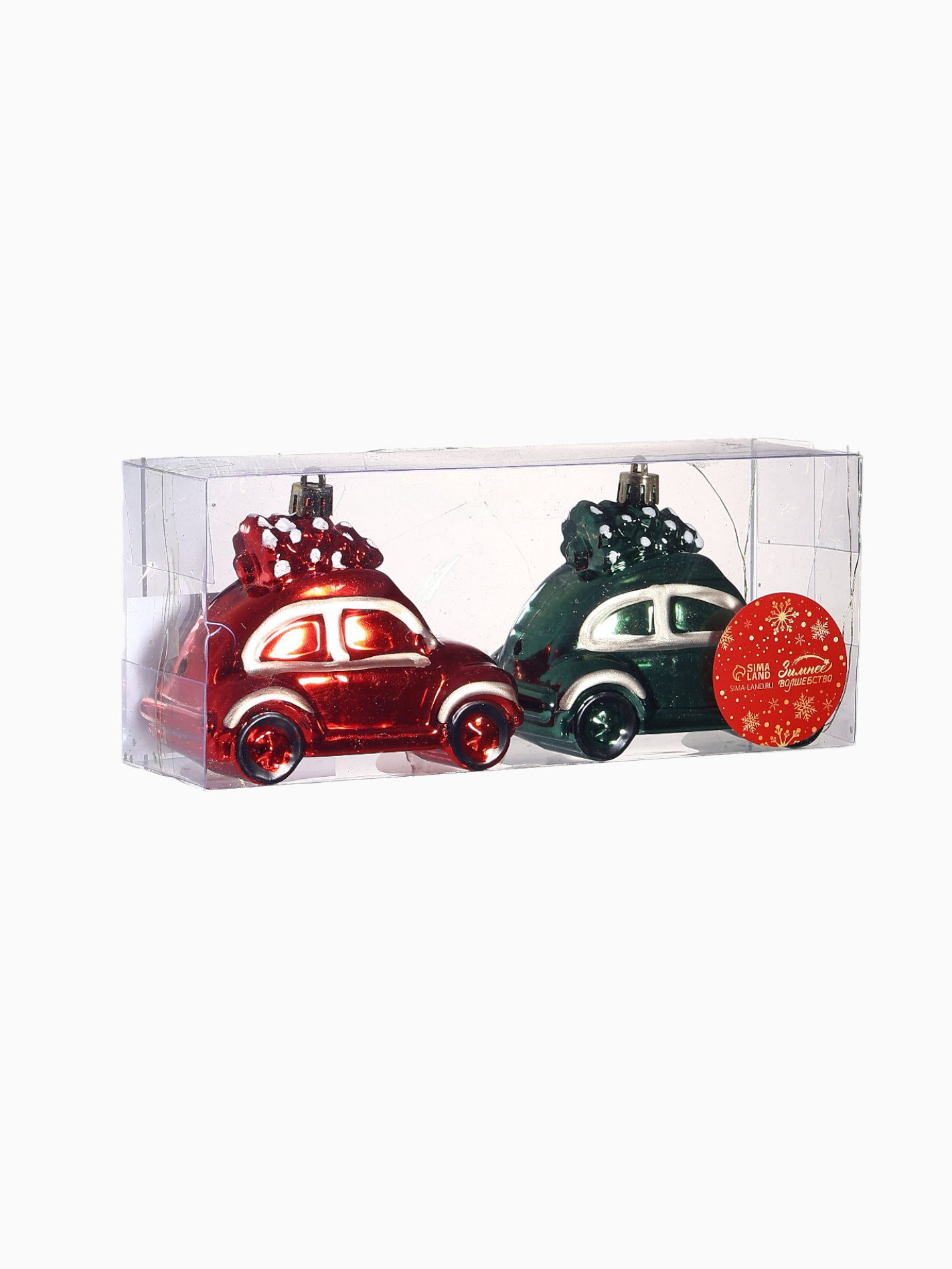 Ёлочные игрушки 2 шт. "Зимнее волшебство. Машинка колор" пластик, 9x5x7 см, зелёный, красный, 5x9x7 см., Зимнее волшебство, Китай