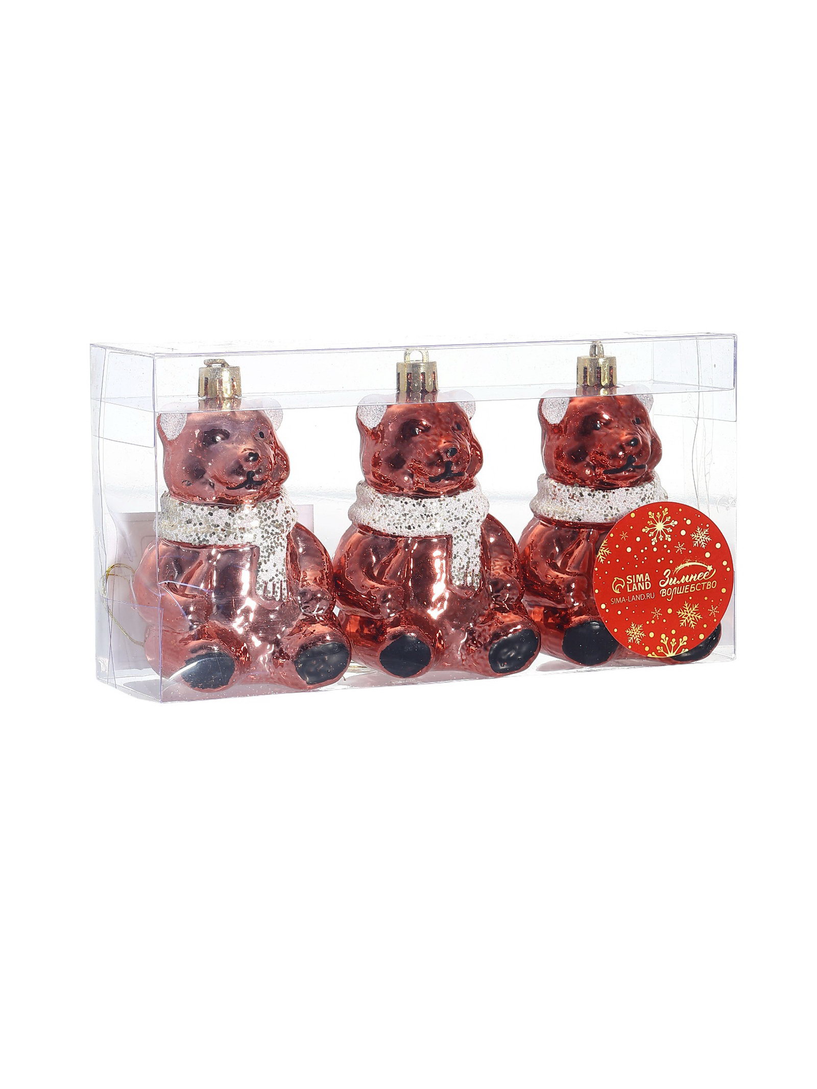 Ёлочные игрушки 3 шт. "Зимнее волшебство. Мишка колор" пластик, 9x5 см, красный, 5x9 см., Зимнее волшебство, Китай