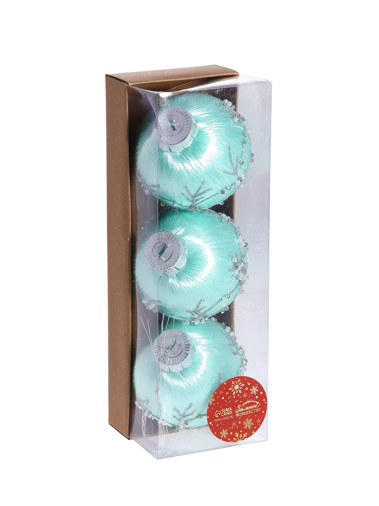 Ёлочные игрушки "Хайдвин", шары новогодние, d=8 см, набор 3 шт., нежность, зелёный, 8x8 см., Зимнее волшебство, Китай
