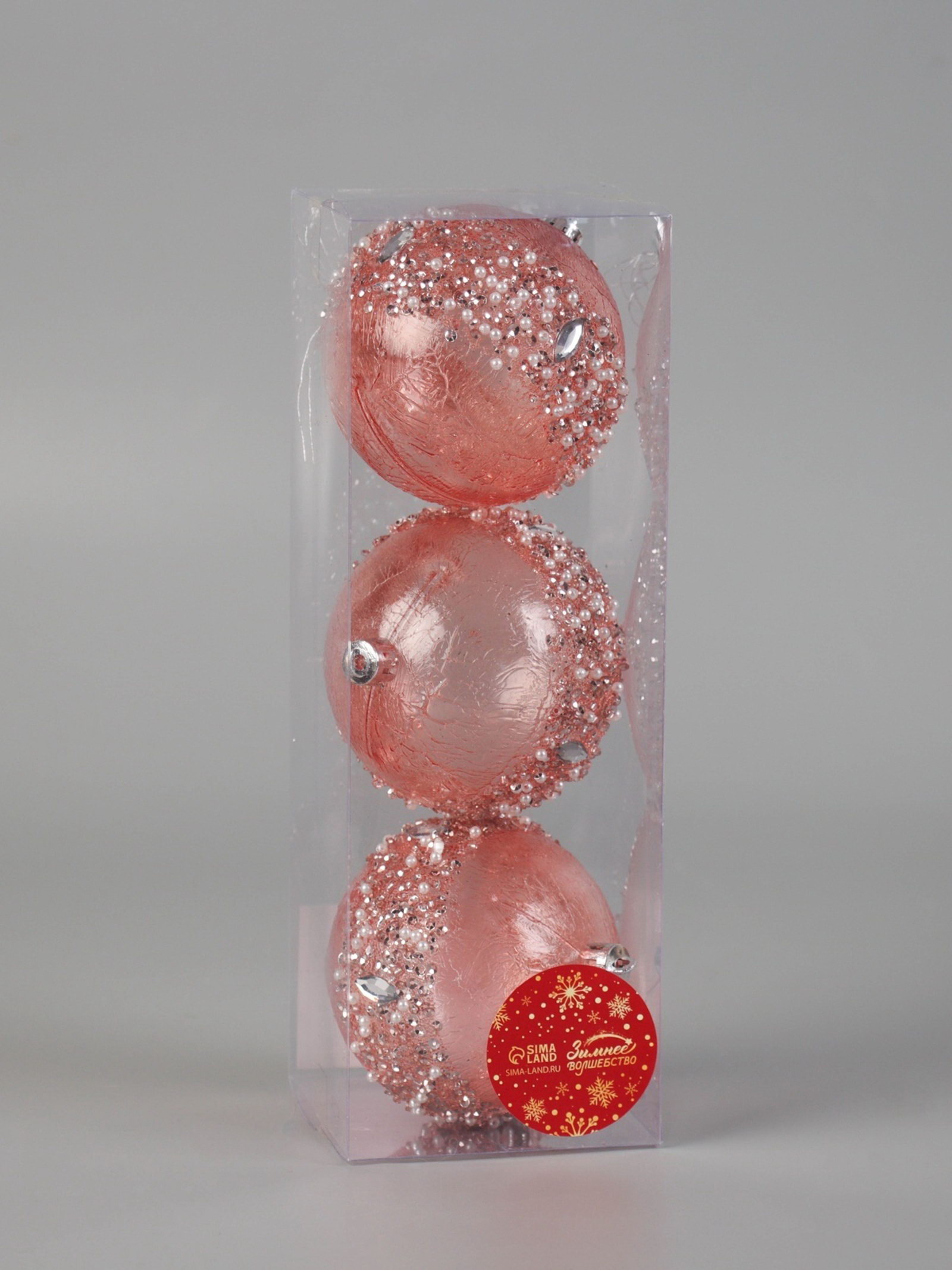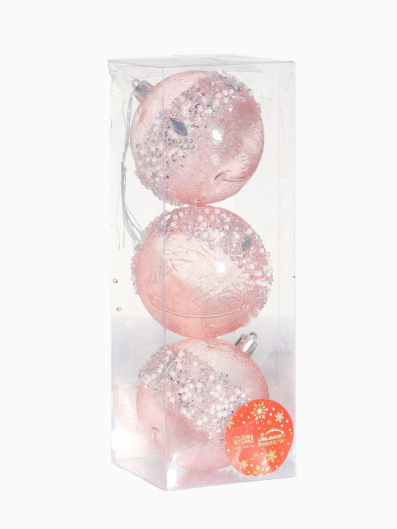 Ёлочные игрушки "Эйдонс", шары новогодний, d=8 см, набор 3 шт., розовый, 8x8 см., Зимнее волшебство, Китай
