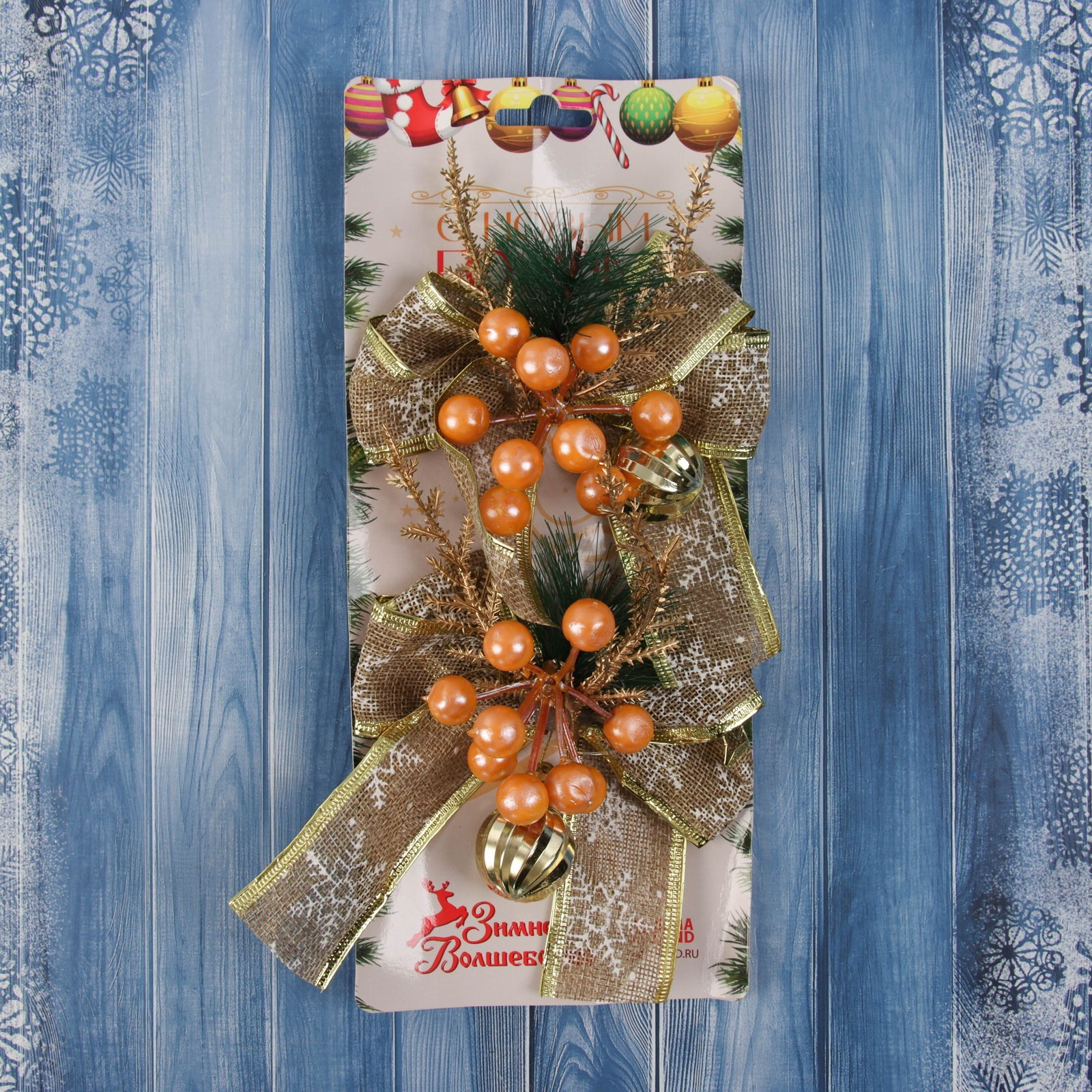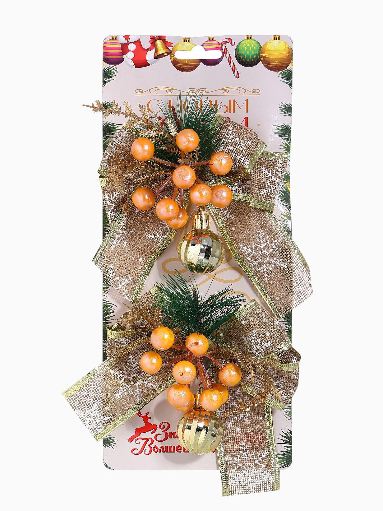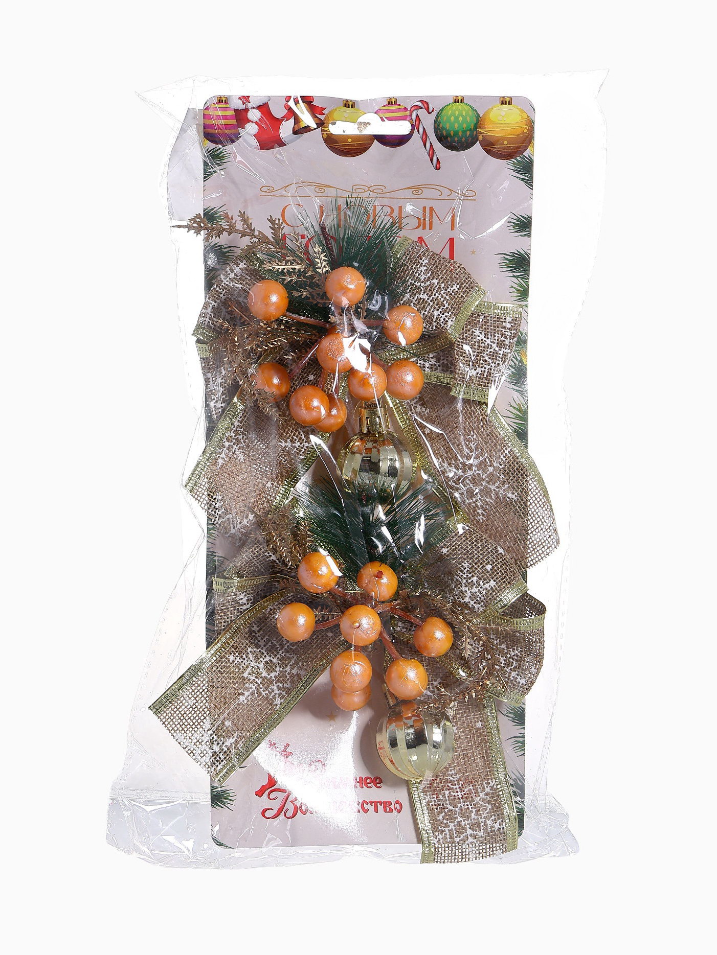 Ёлочные игрушки 2 шт. "Зимнее волшебство. Композиция на бантике" пластик, ягодки, 13x15 см, 15x13 см., Зимнее волшебство, Китай