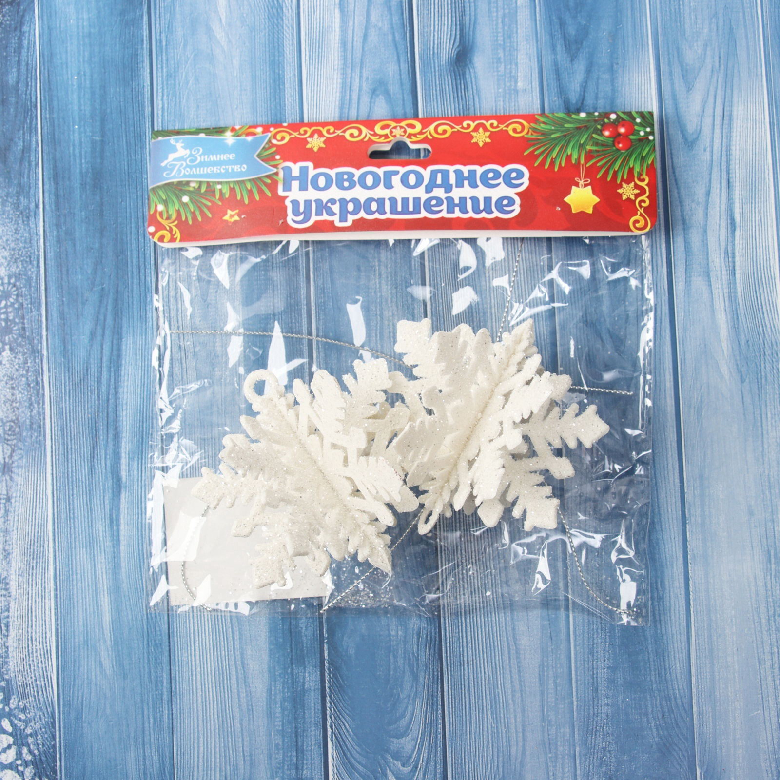 Ёлочные игрушки набор 2 шт. "Зимнее волшебство. Снежинка объёмная", 7x6 см, белый, 6x7 см., Зимнее волшебство, Китай