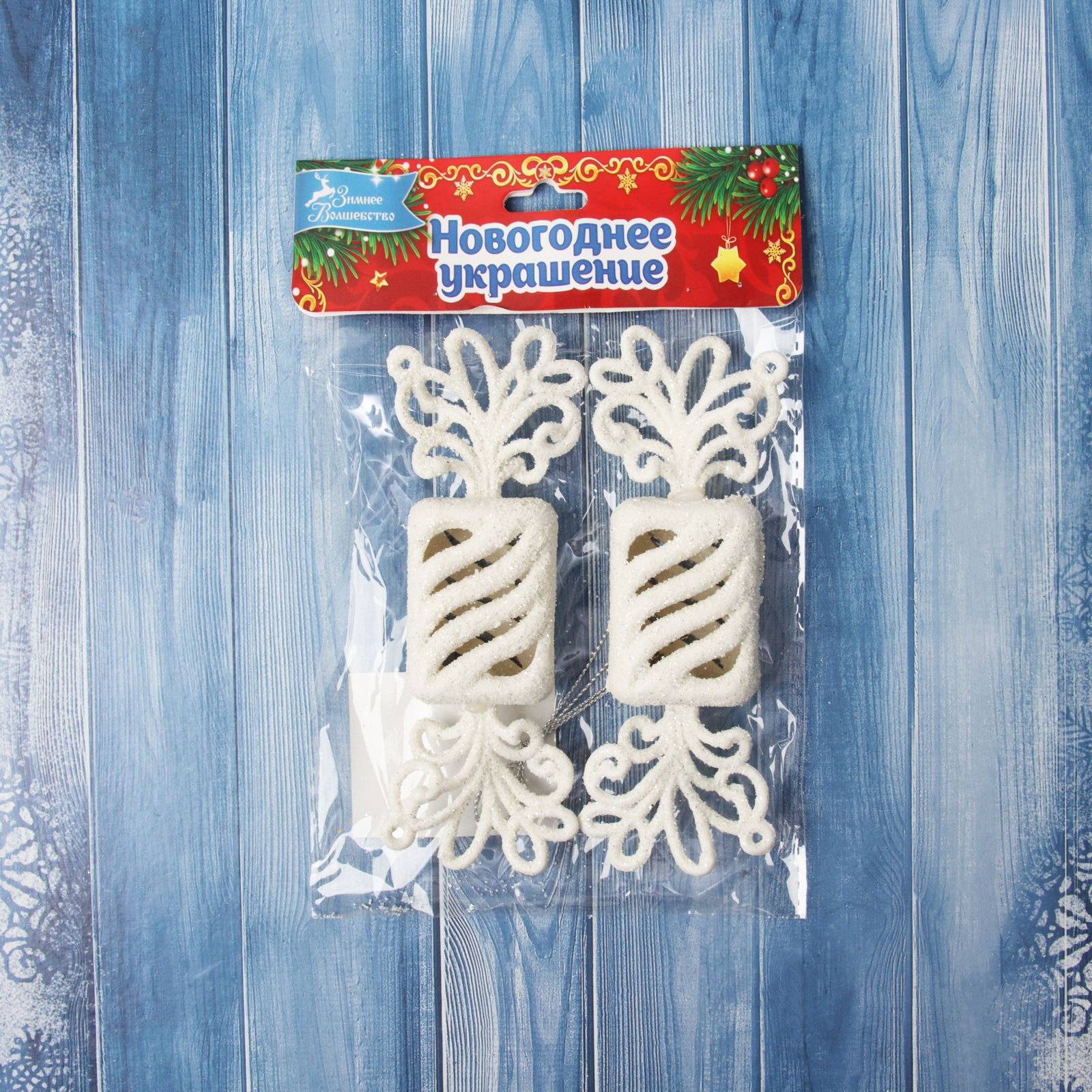Ёлочные игрушки 2 шт. "Конфетка блеск" 12.5x3.5 см, белый, 3.5x12.5 см., Зимнее волшебство, Китай