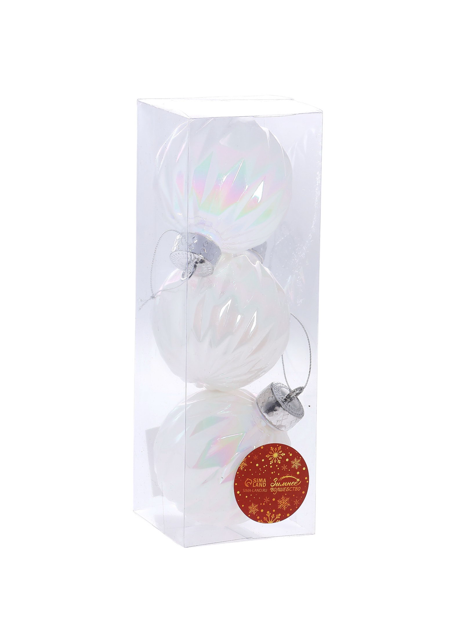 Ёлочные игрушки "Перелив", шары новогодние, d=8 см, набор 3 шт., грани, белый перламутр, 8x8 см., Зимнее волшебство, Китай