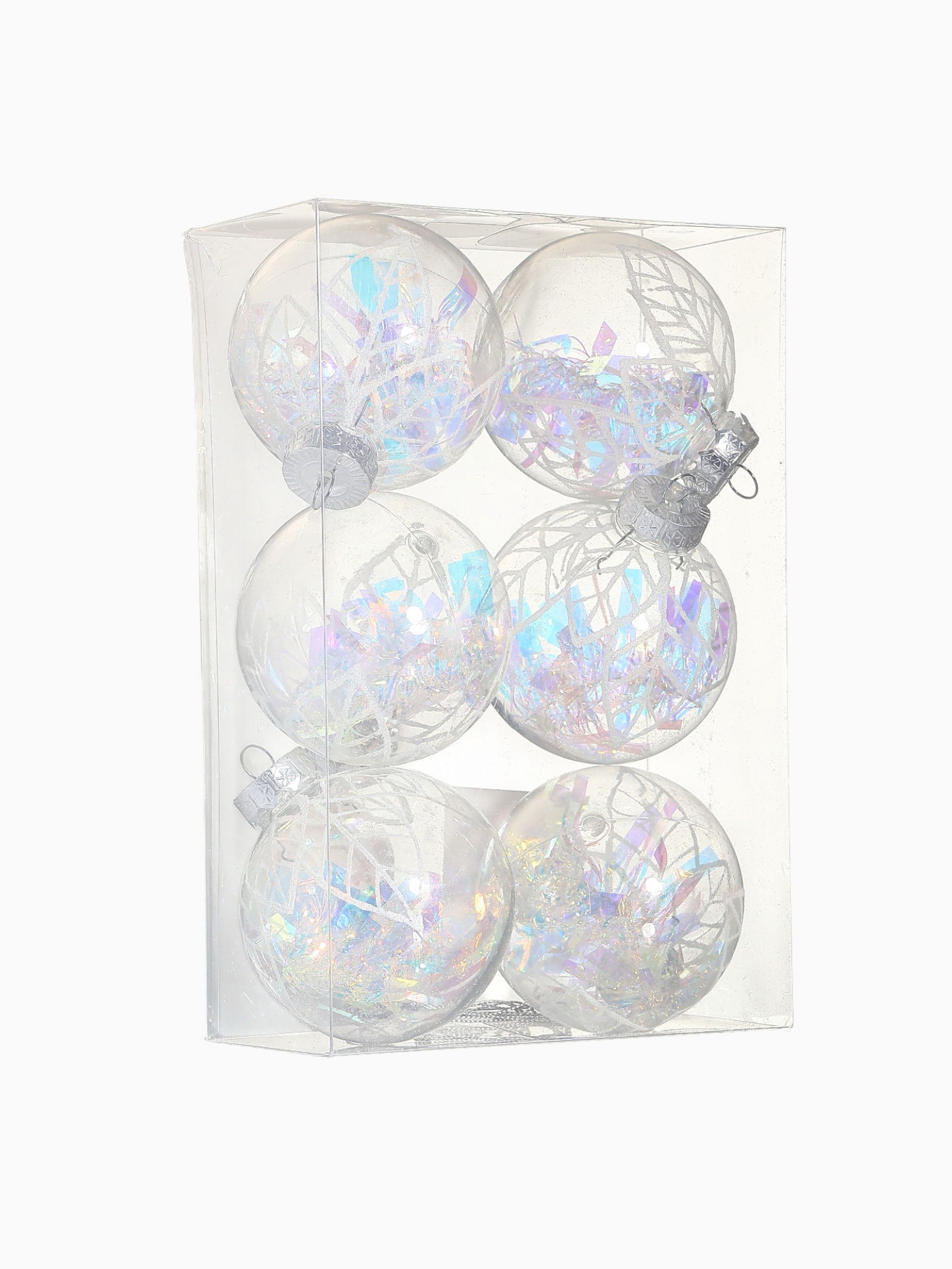 Ёлочные игрушки "Прозрачный лист", шары новогодние, d=8 см, набор 6 шт., 8x8 см., Зимнее волшебство, Китай