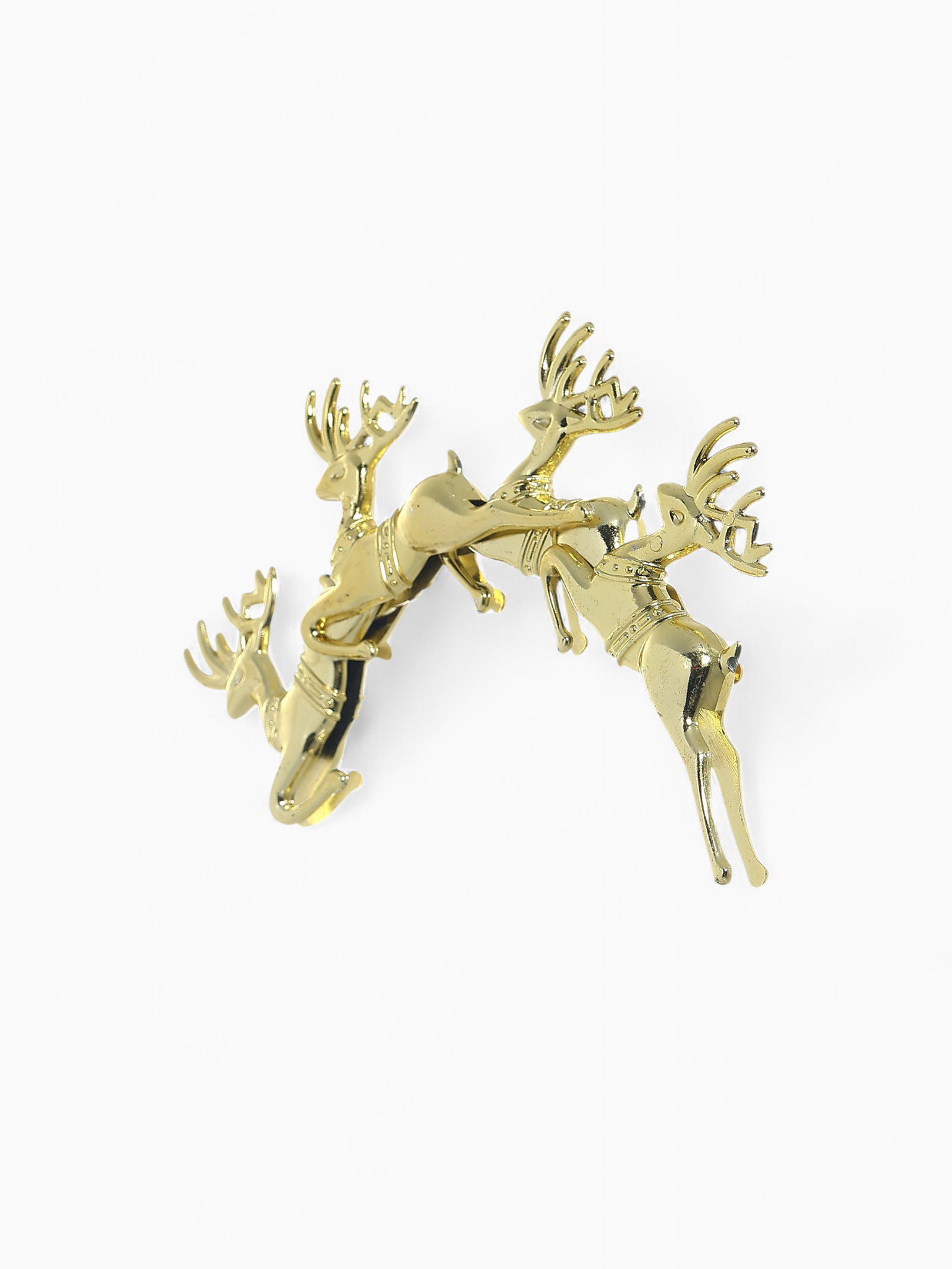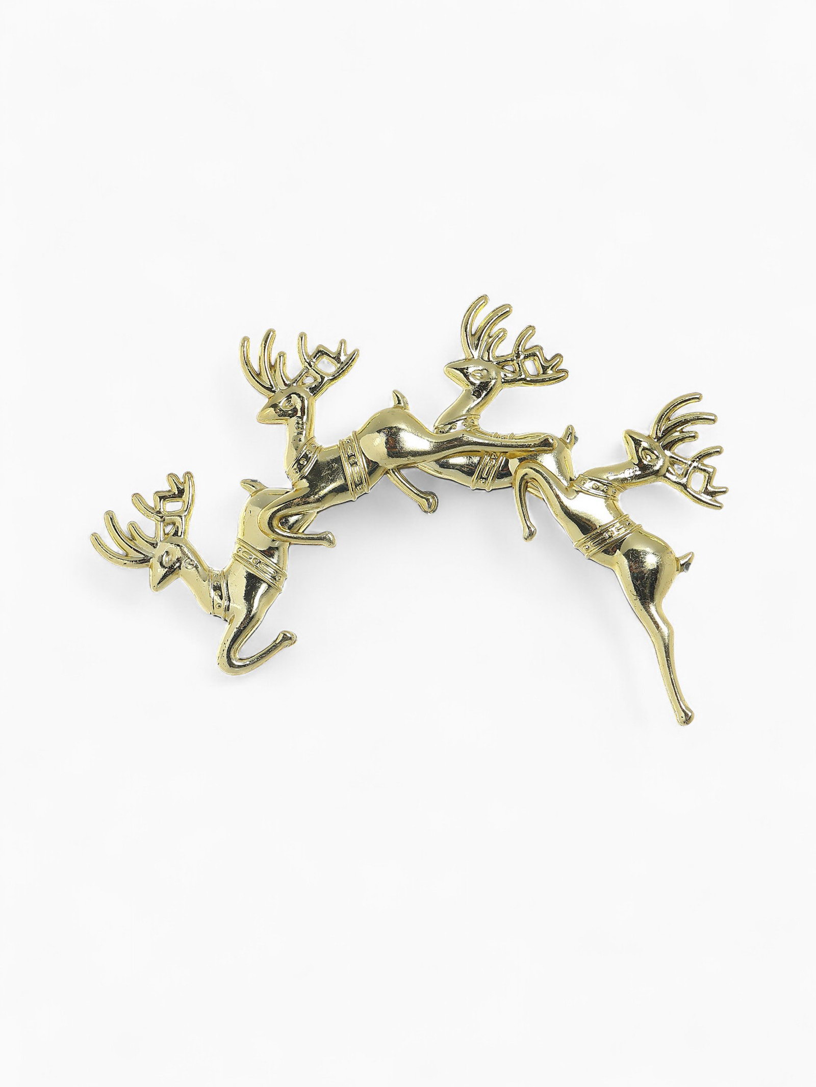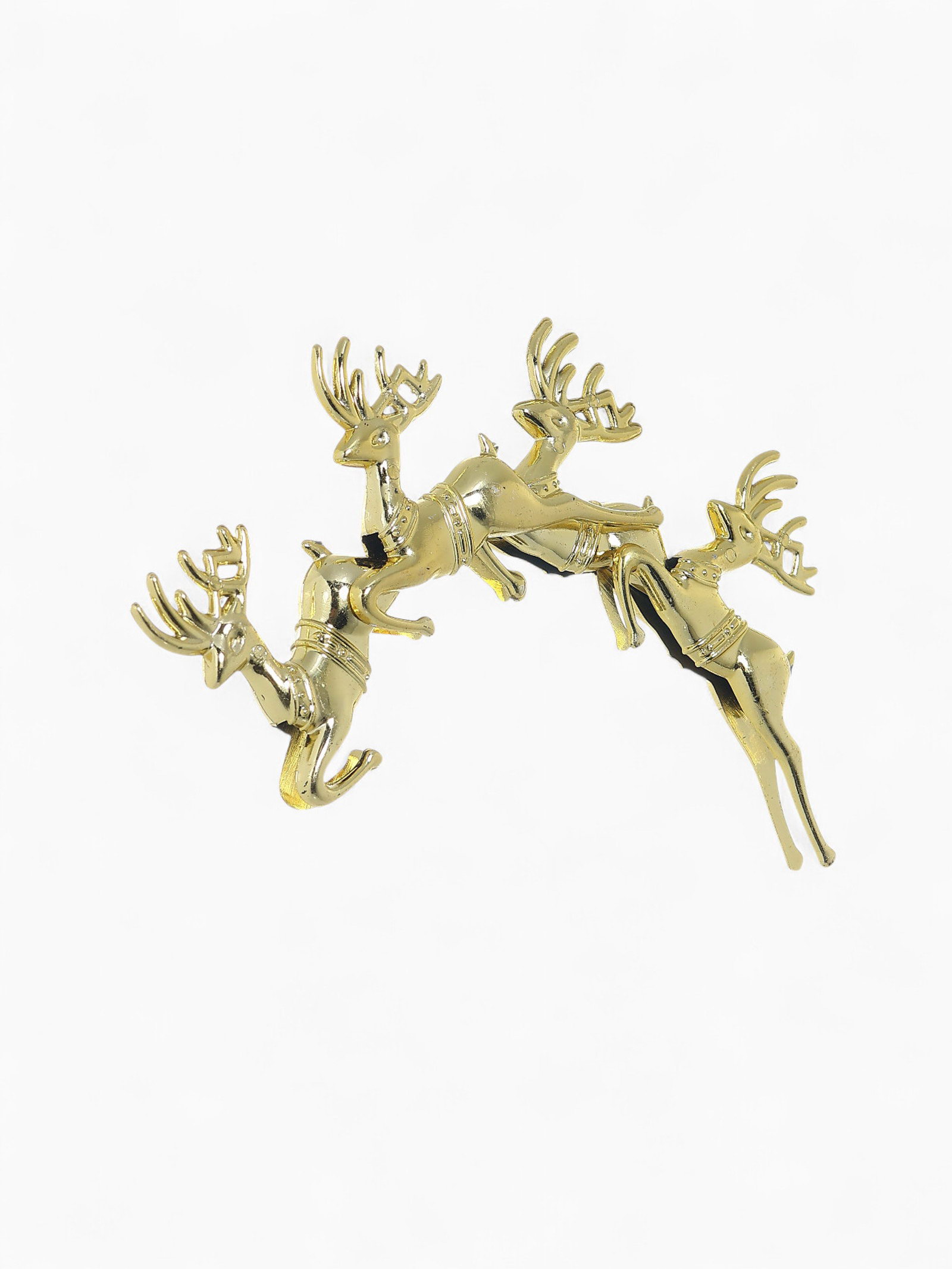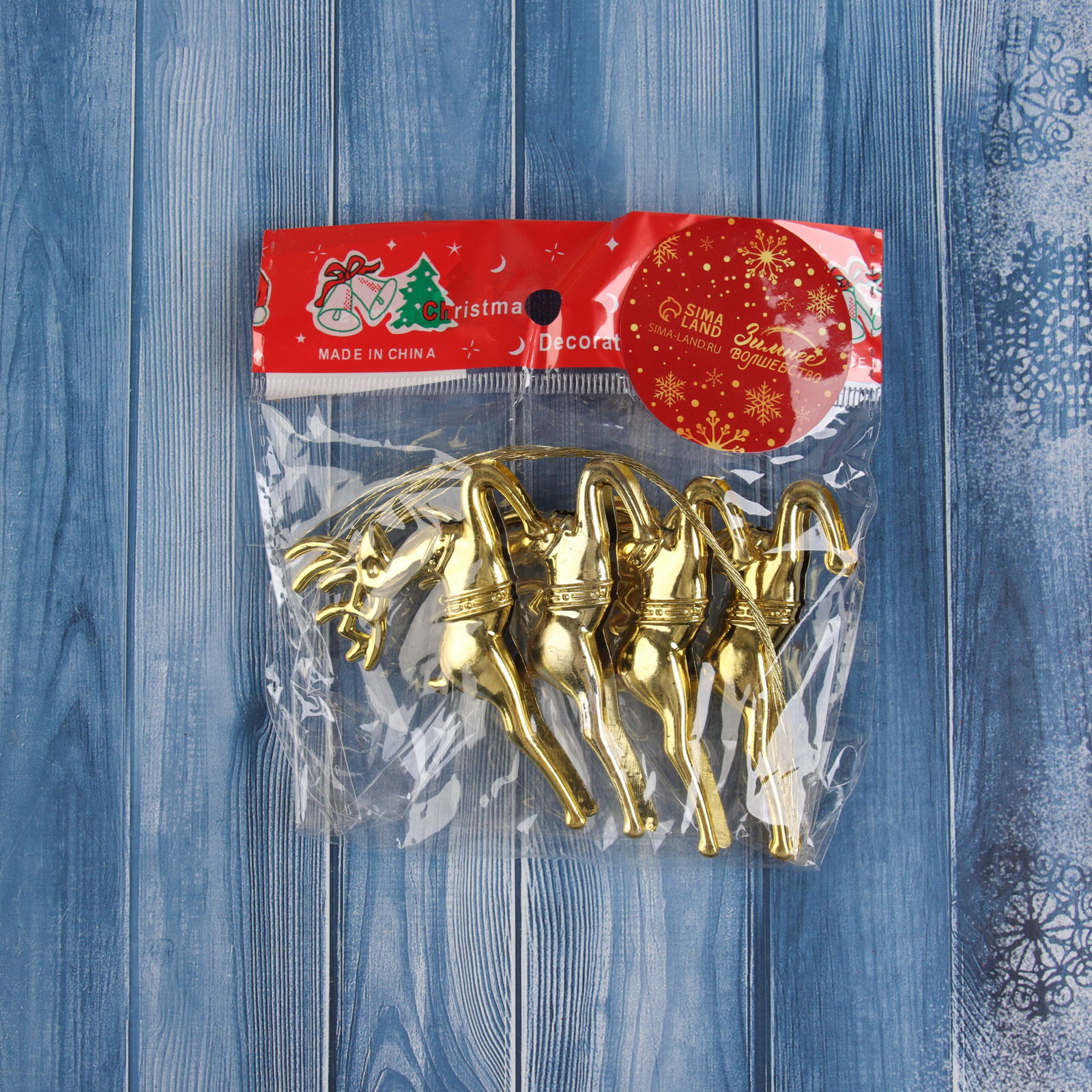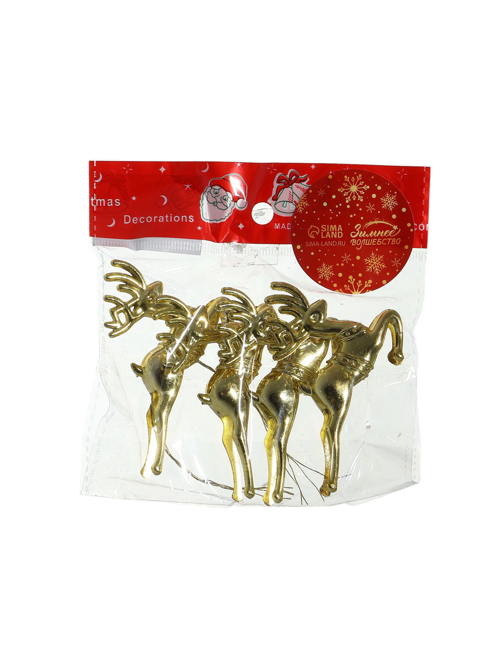Ёлочные игрушки 4 шт. "Зимнее волшебство. Бегущий олень" пластик, 5x7 см, золото, 7x5 см., Зимнее волшебство, Китай