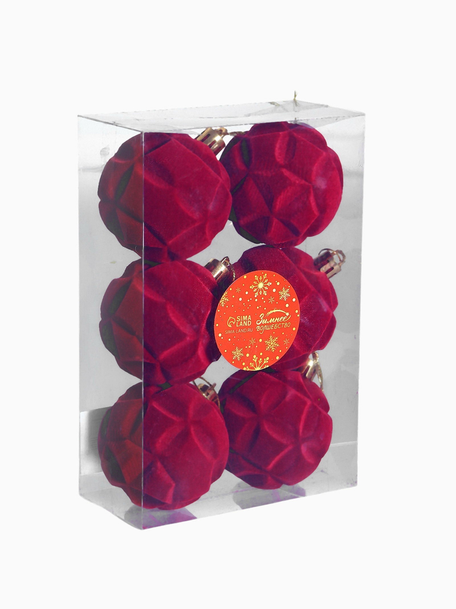 Ёлочные игрушки "Бьорн", шары новогодние, набор 6 шт., d=6 см, красный, 6x6 см., Зимнее волшебство, Китай