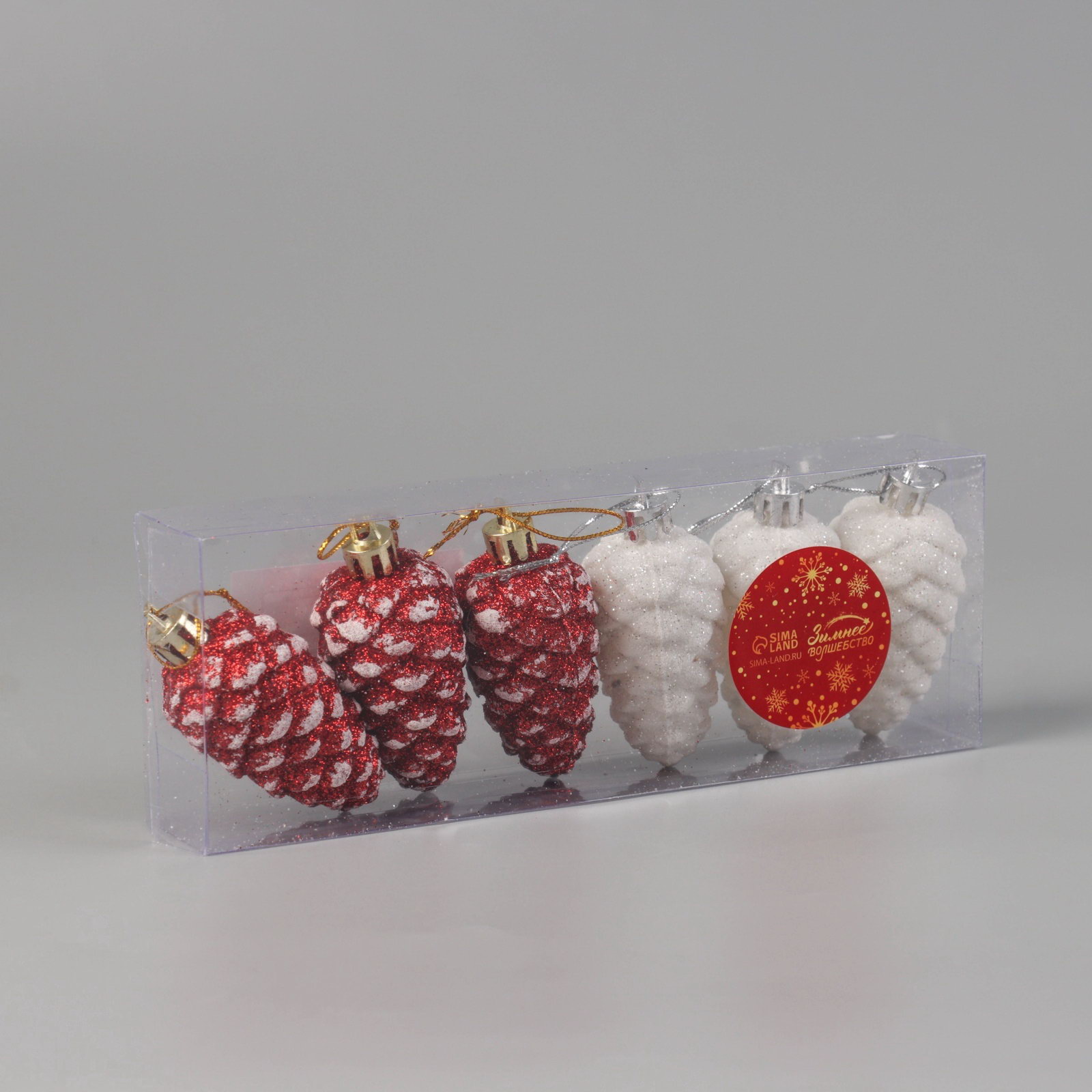 Ёлочные игрушки 6 шт. "Шишки ассорти классик" 7.5x3.5 см, красный белый, 3.5x7.5 см., Зимнее волшебство, Китай