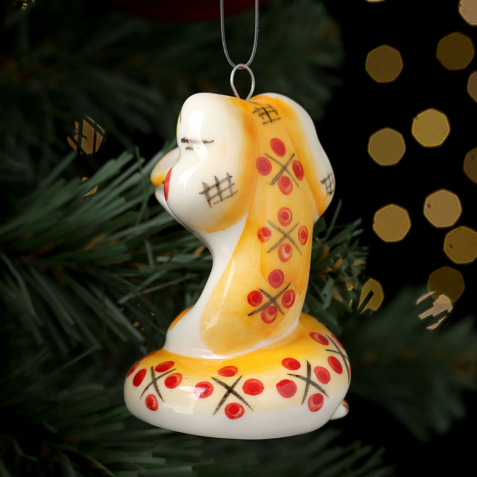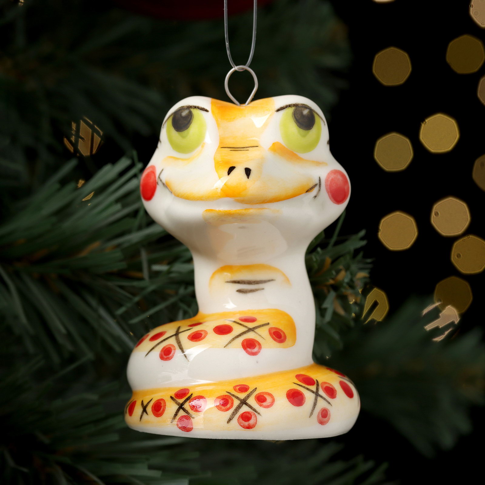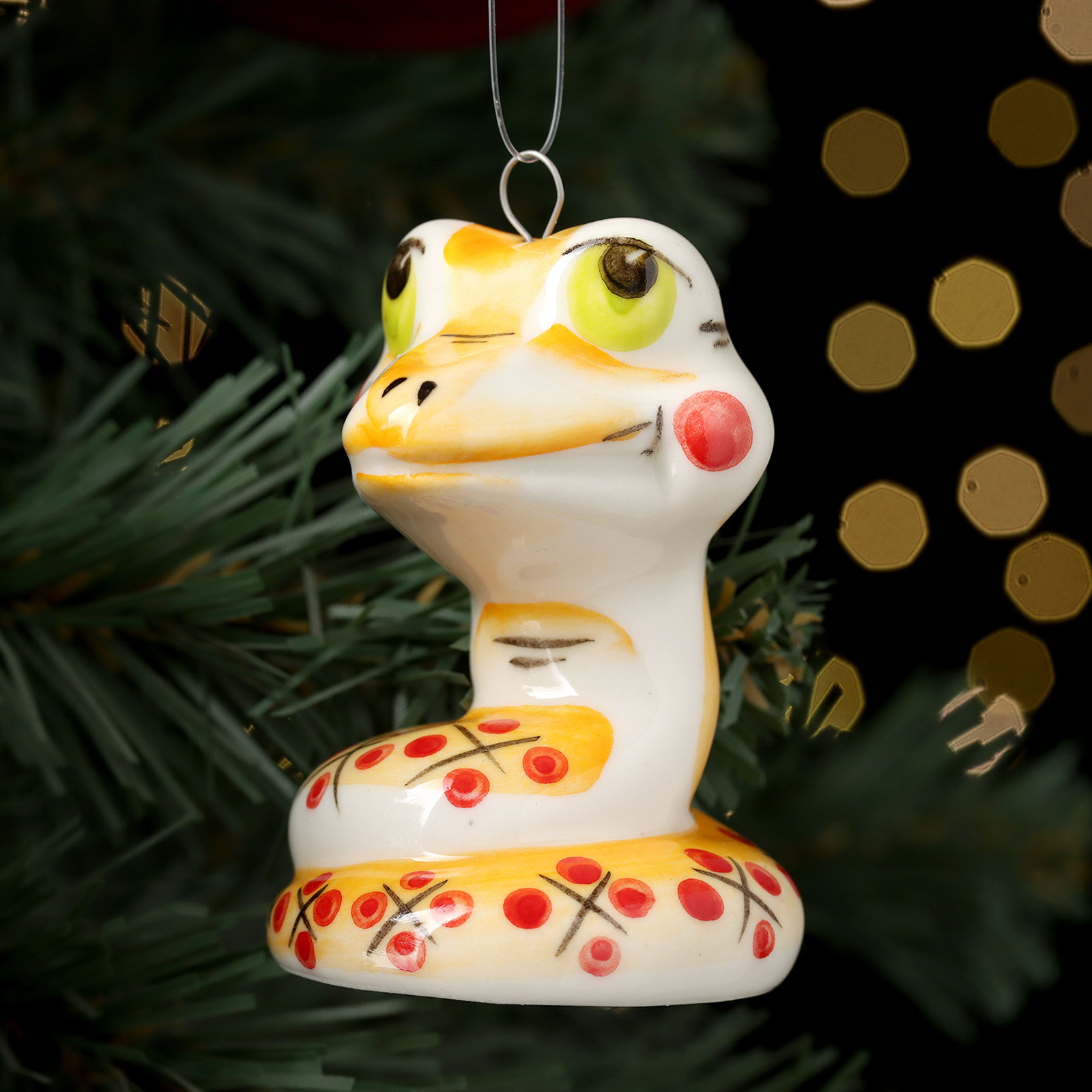 Ёлочный игрушка фарфоровая "Змей Улыбка красный", 7 см, Россия