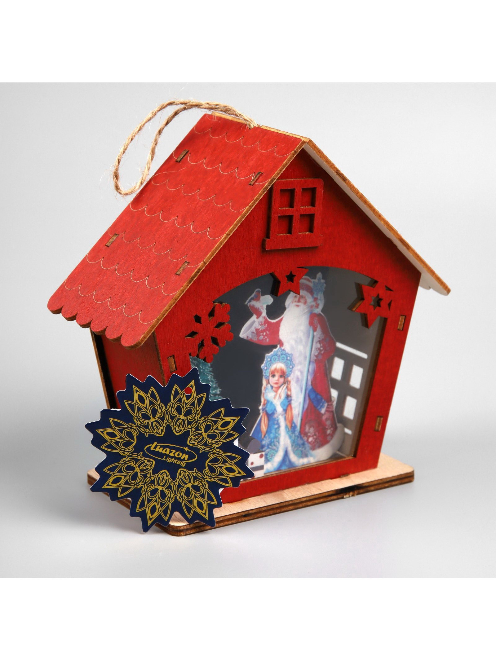 Подвеска световая "Дед Мороз и Снегурочка", 16x7x15.5 см, 1 LED, от батареек AG10x3, свечение тёплое белое, 7x16x16 см., Luazon Lighting, Китай