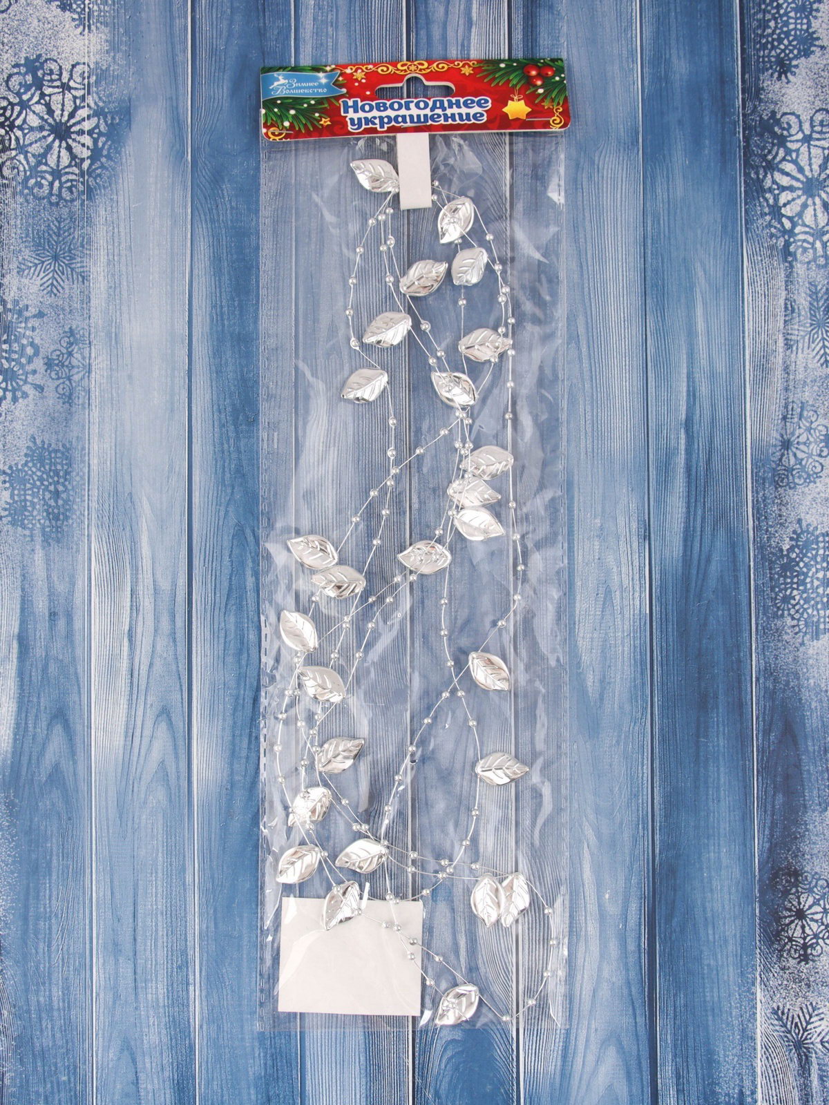 Бусы на ёлку "Листья", длина 2 м, d=12 мм, серебристые, 200 см., Зимнее волшебство, Китай