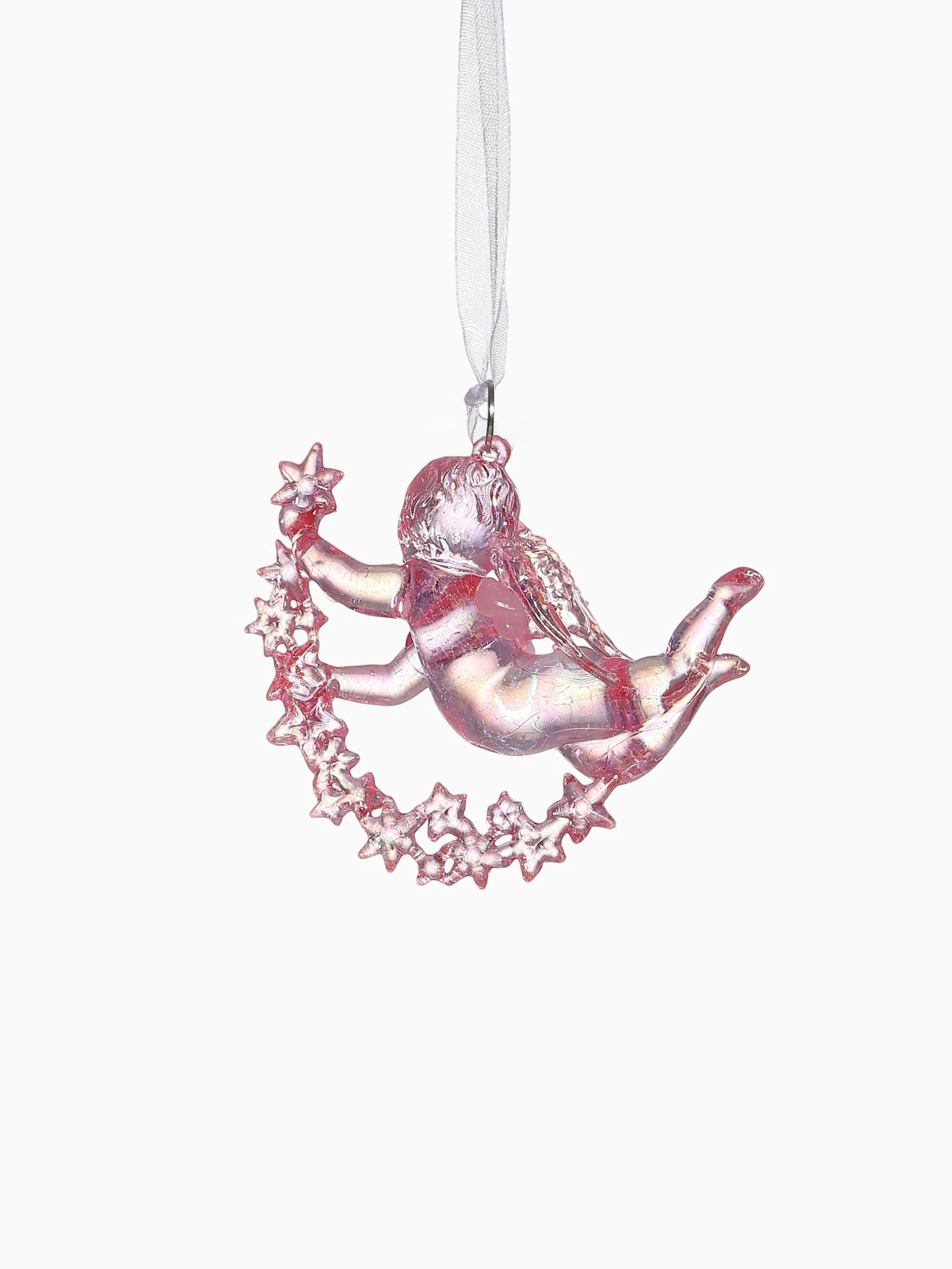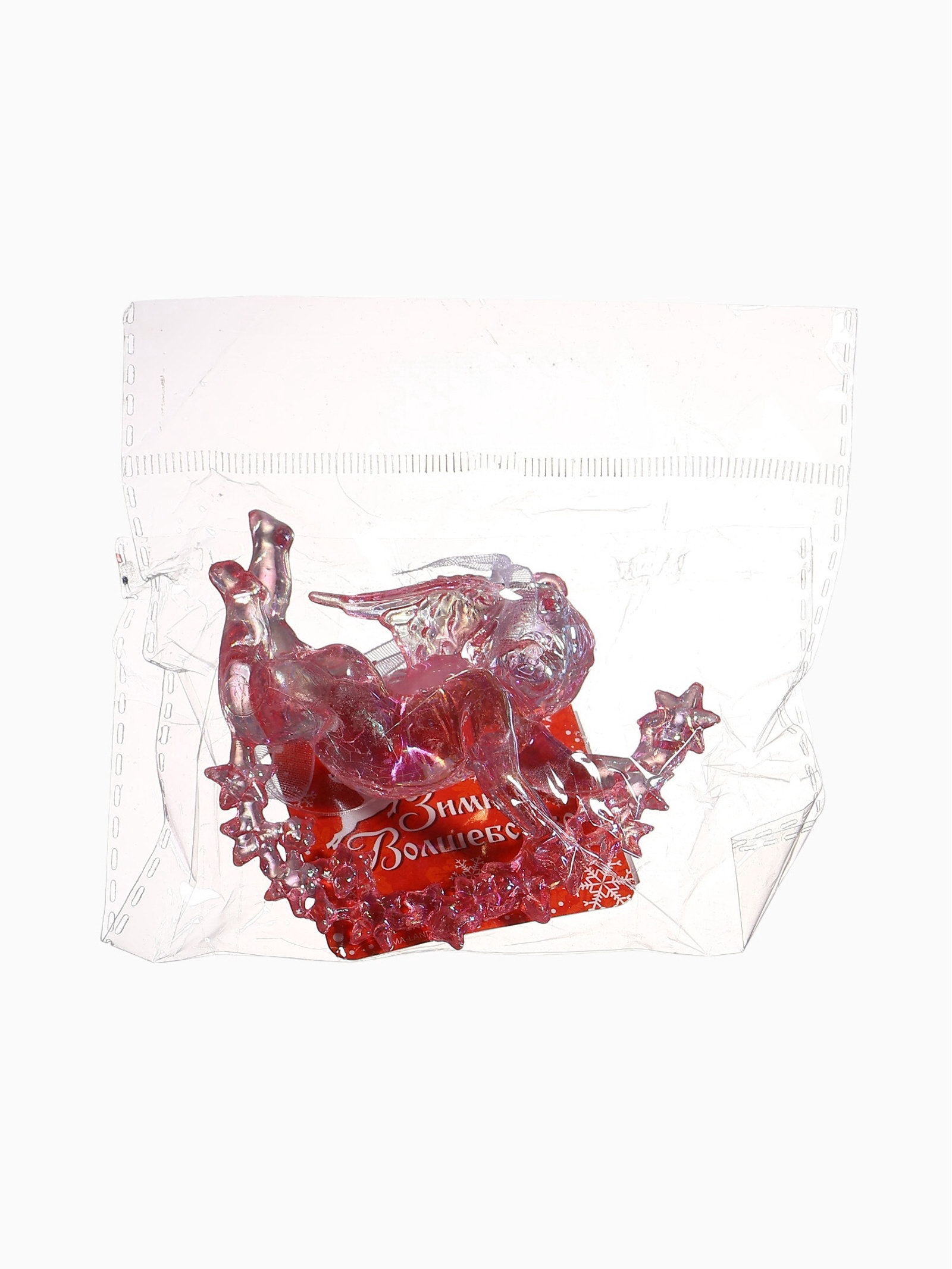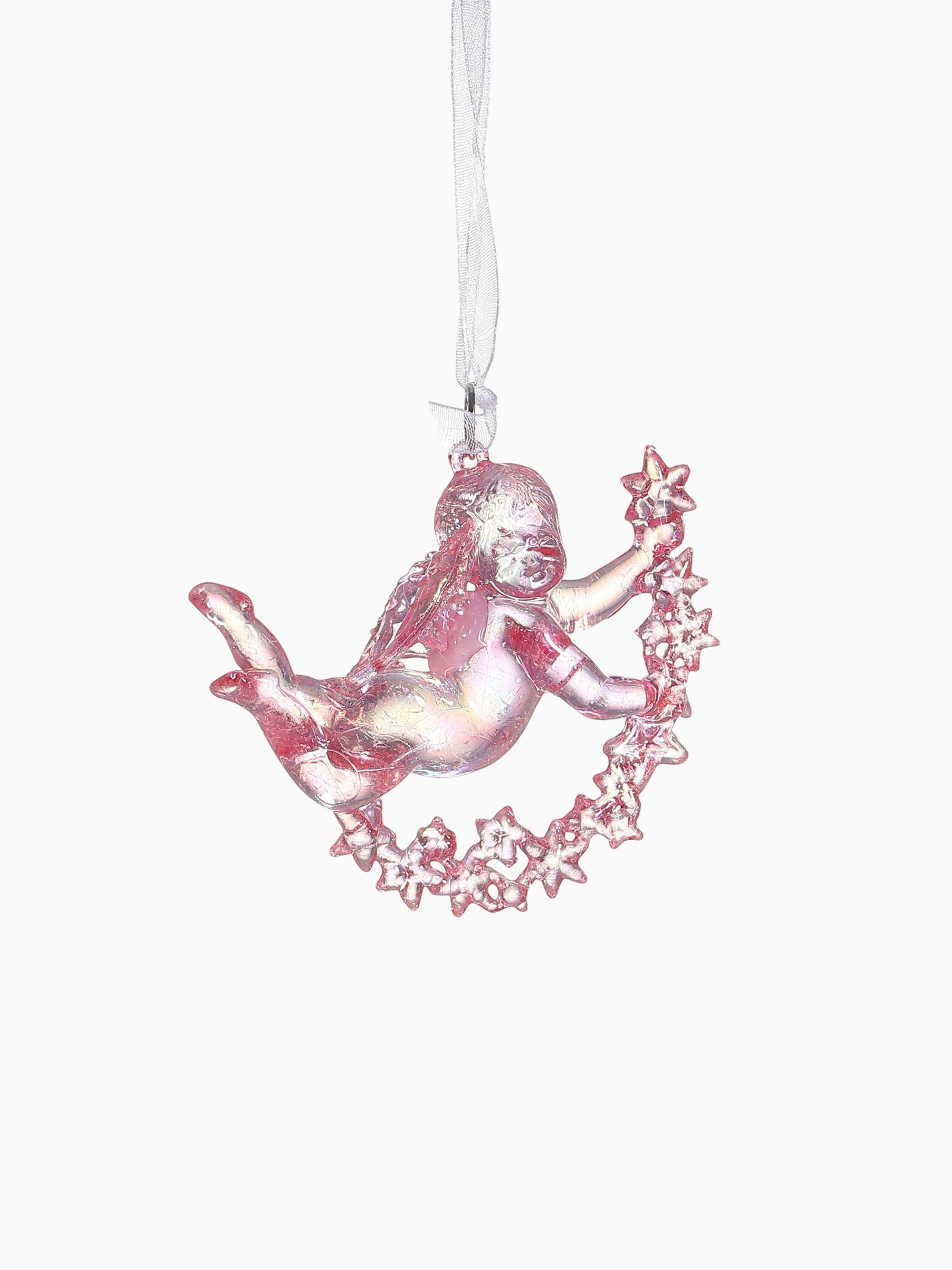 Ёлочная игрушка "Зимнее волшебство. Ангел на звездах" пластик, 7x8 см, сиреневый перелив, 8x7 см., Зимнее волшебство, Китай