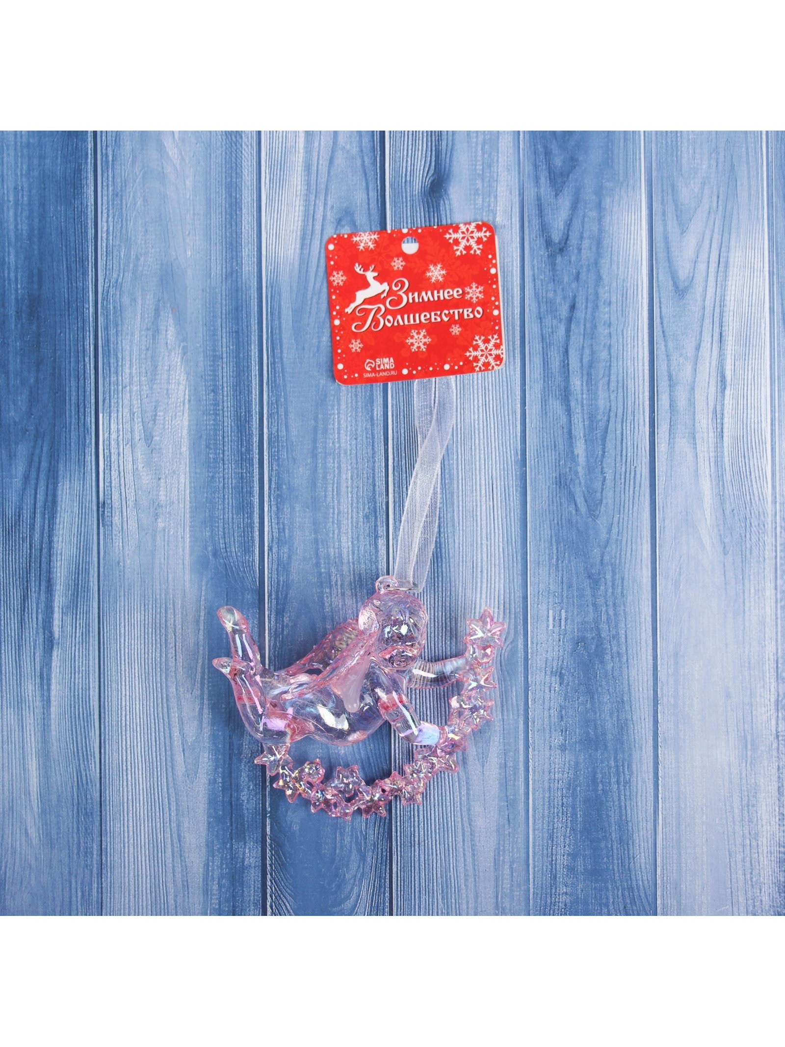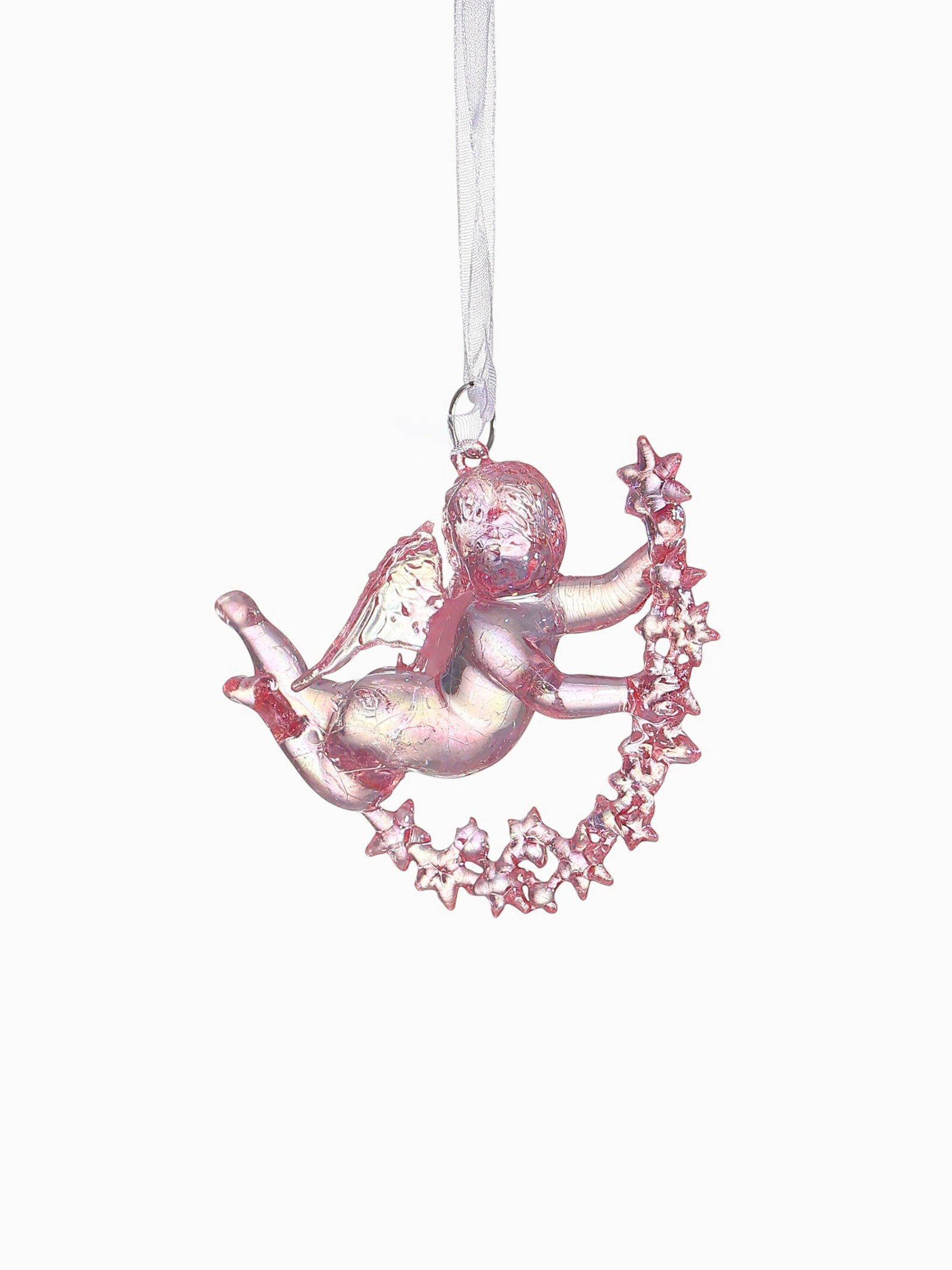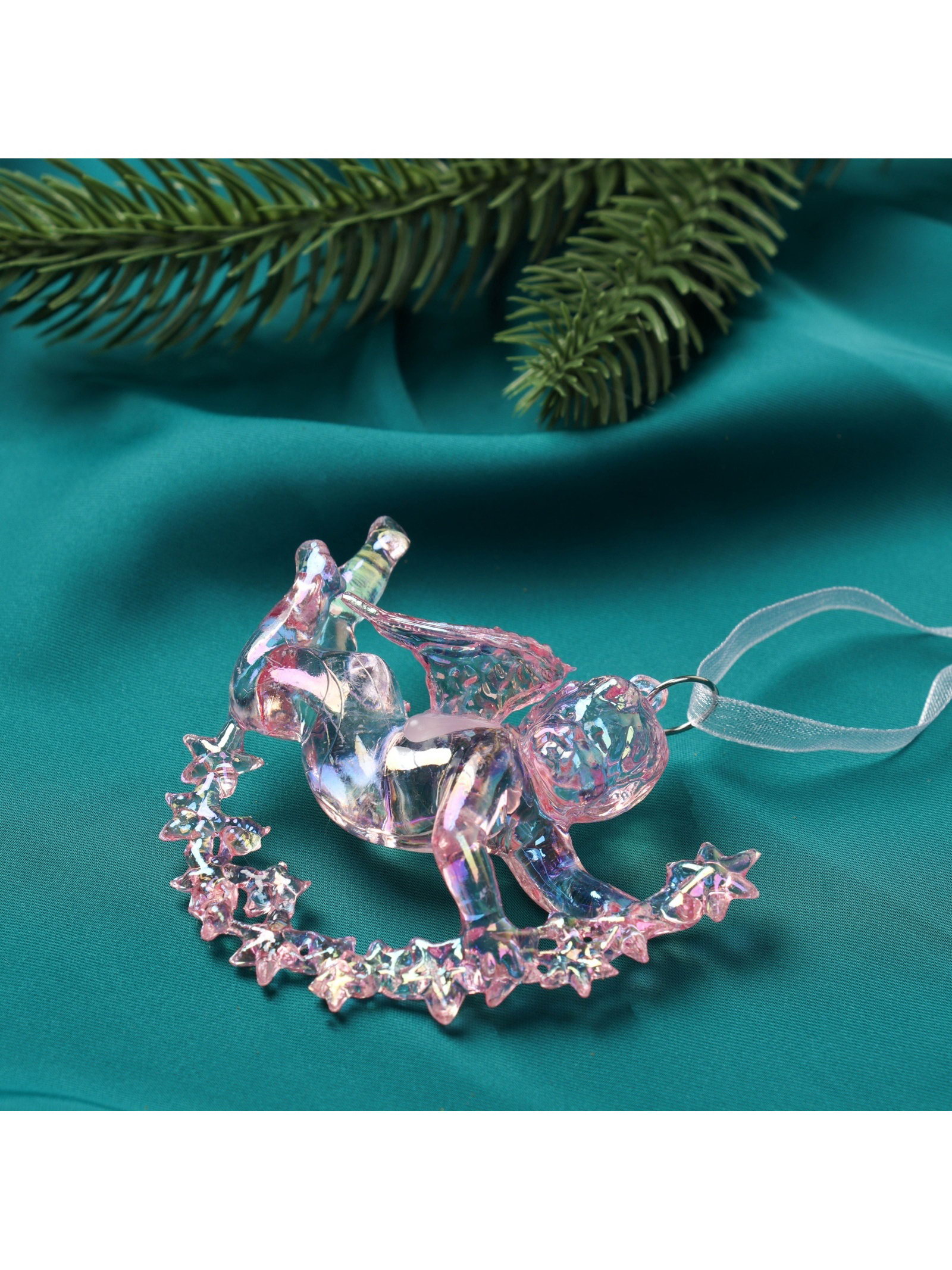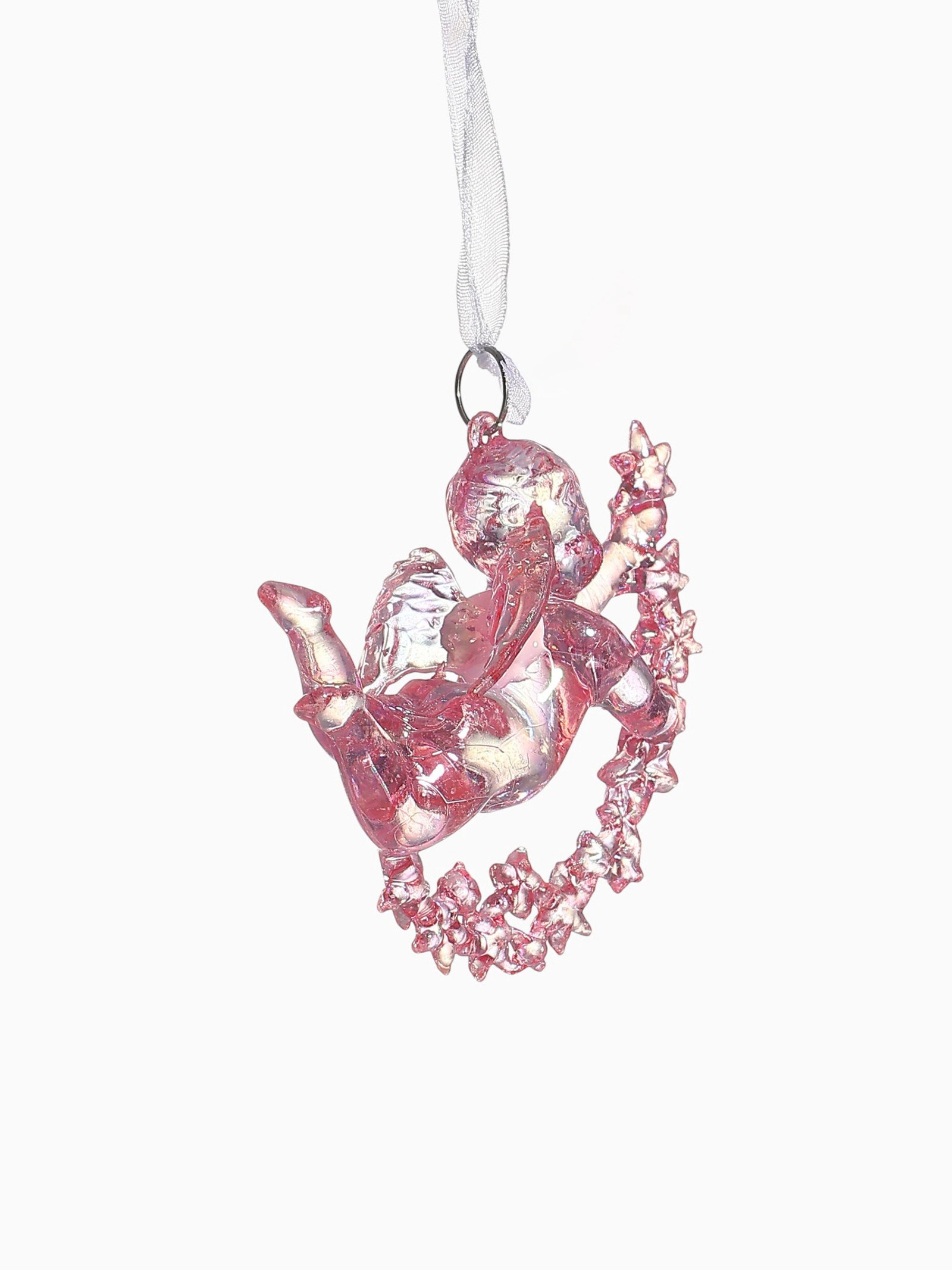 Ёлочная игрушка "Зимнее волшебство. Ангел на звездах" пластик, 7x8 см, сиреневый перелив, 8x7 см., Зимнее волшебство, Китай