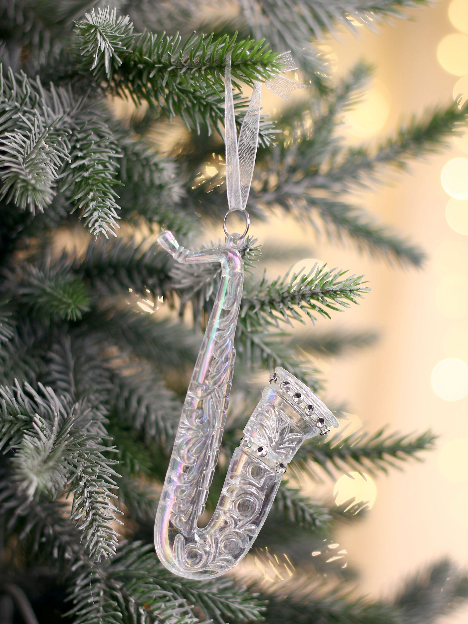 Ёлочная игрушка "Зимнее волшебство. Саксофон", 12x4 см, прозрачный перелив, 4x12 см., Зимнее волшебство, Китай