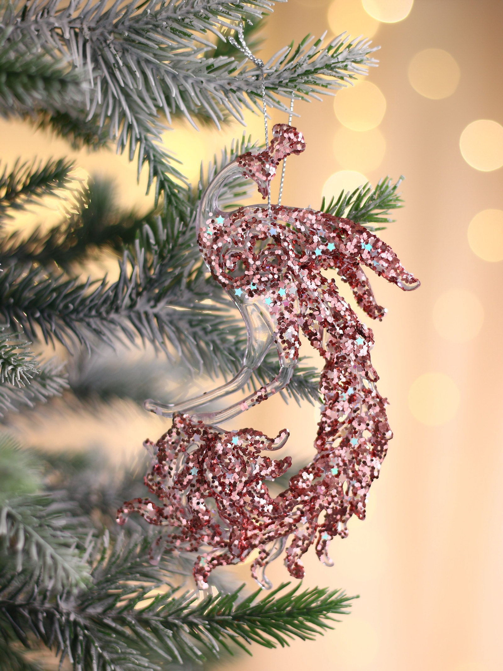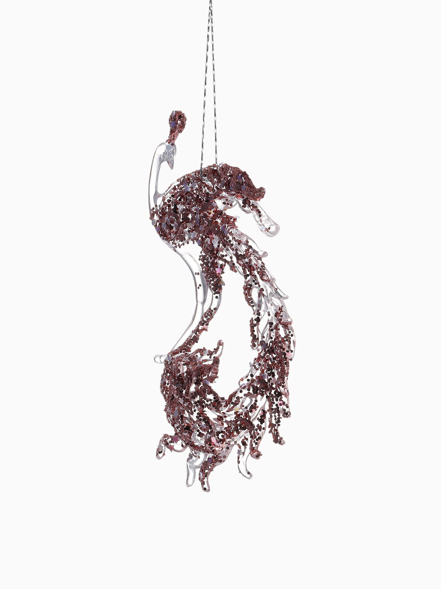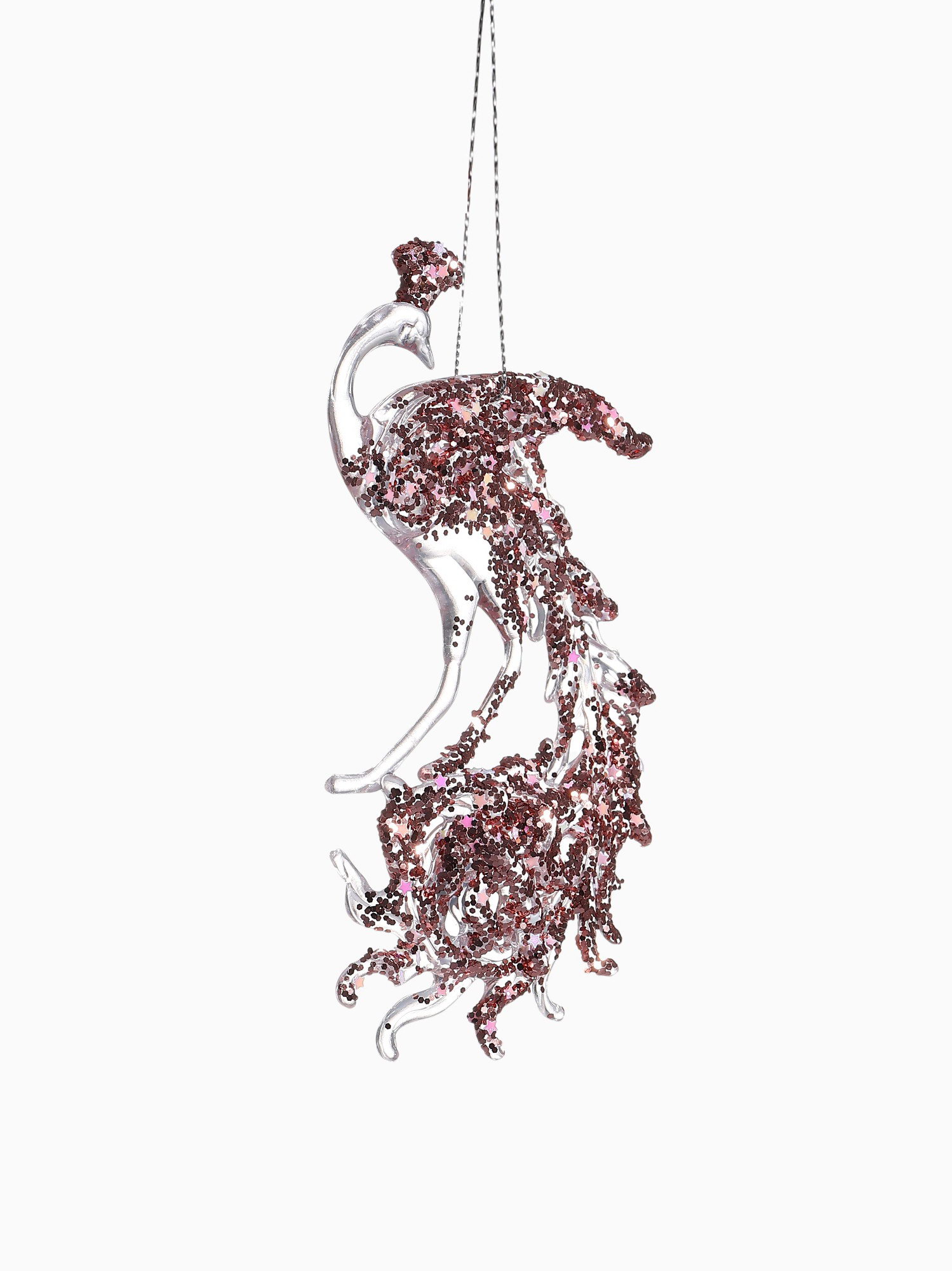 Ёлочная игрушка "Зимнее волшебство. Павлин сияние блеск" пластик, 14x7.5 см, прозрачно-розовый, 7.5x14 см., Зимнее волшебство, Китай