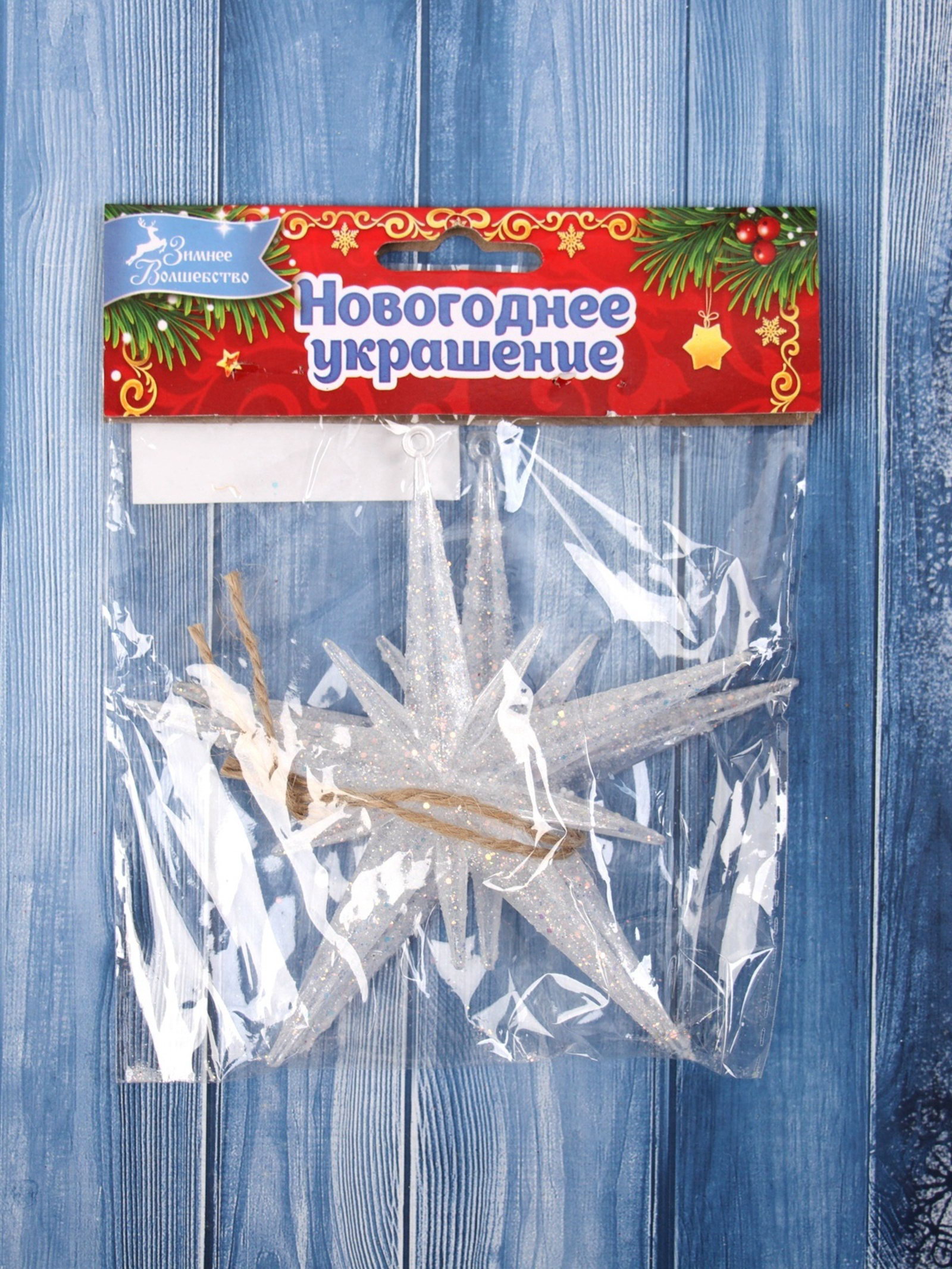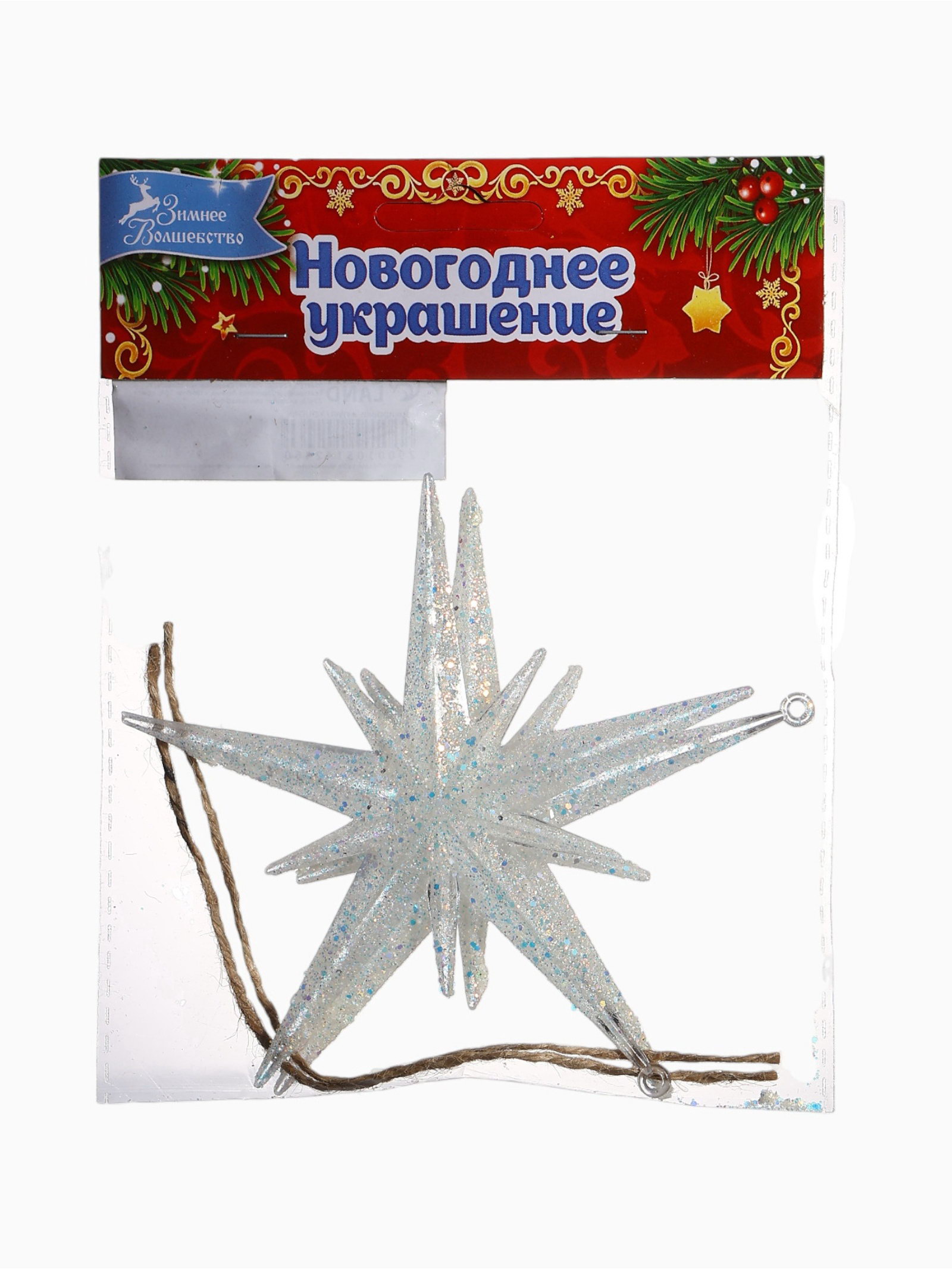 Ёлочные игрушки 2 шт. "Зимнее волшебство. Звезда сияние" пластик, 11.5x11.5 см, белый, 11.5x11.5 см., Зимнее волшебство, Китай