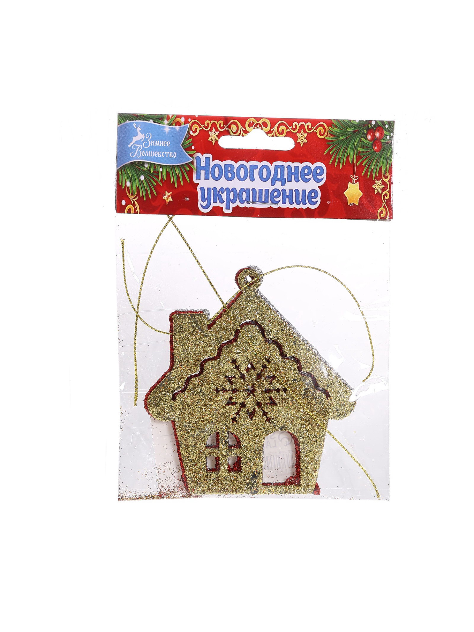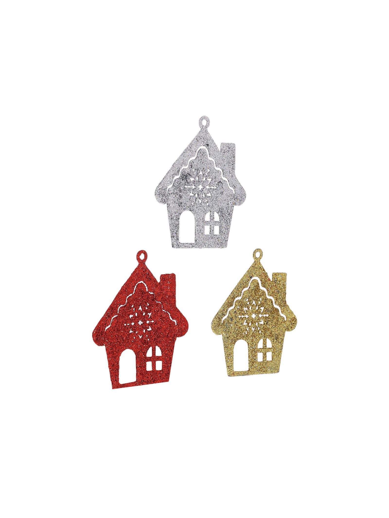 Ёлочные игрушки 3 шт. "Дом со снежинкой" 9x8 см, МИКС, 8x9 см., Зимнее волшебство, Китай