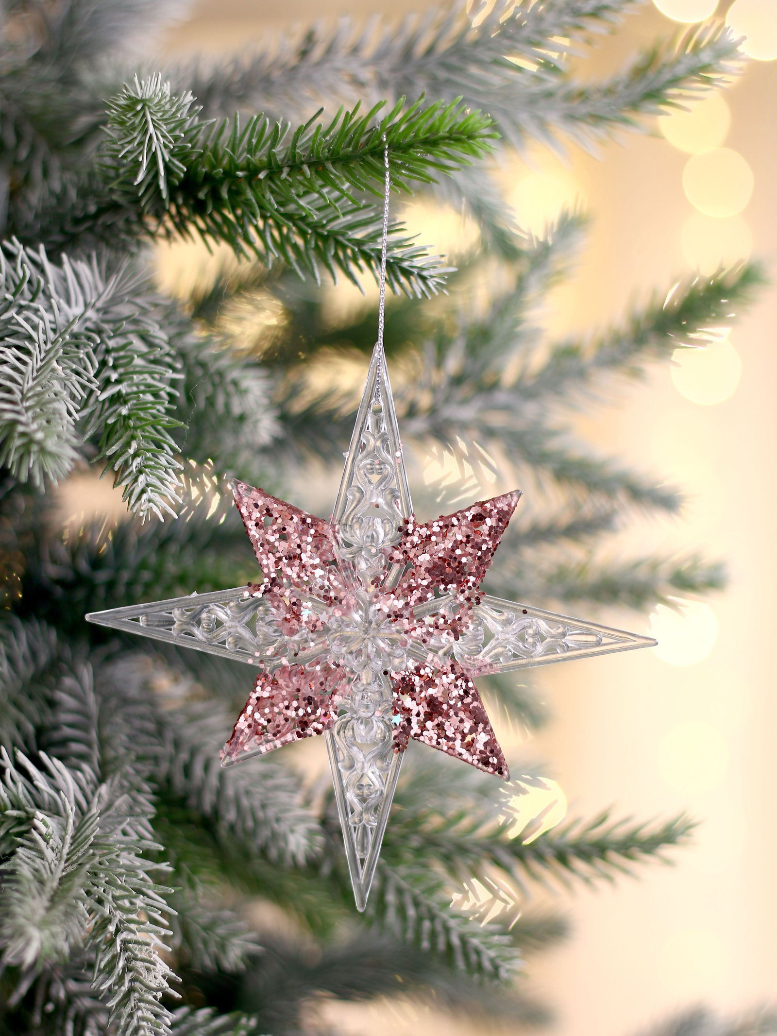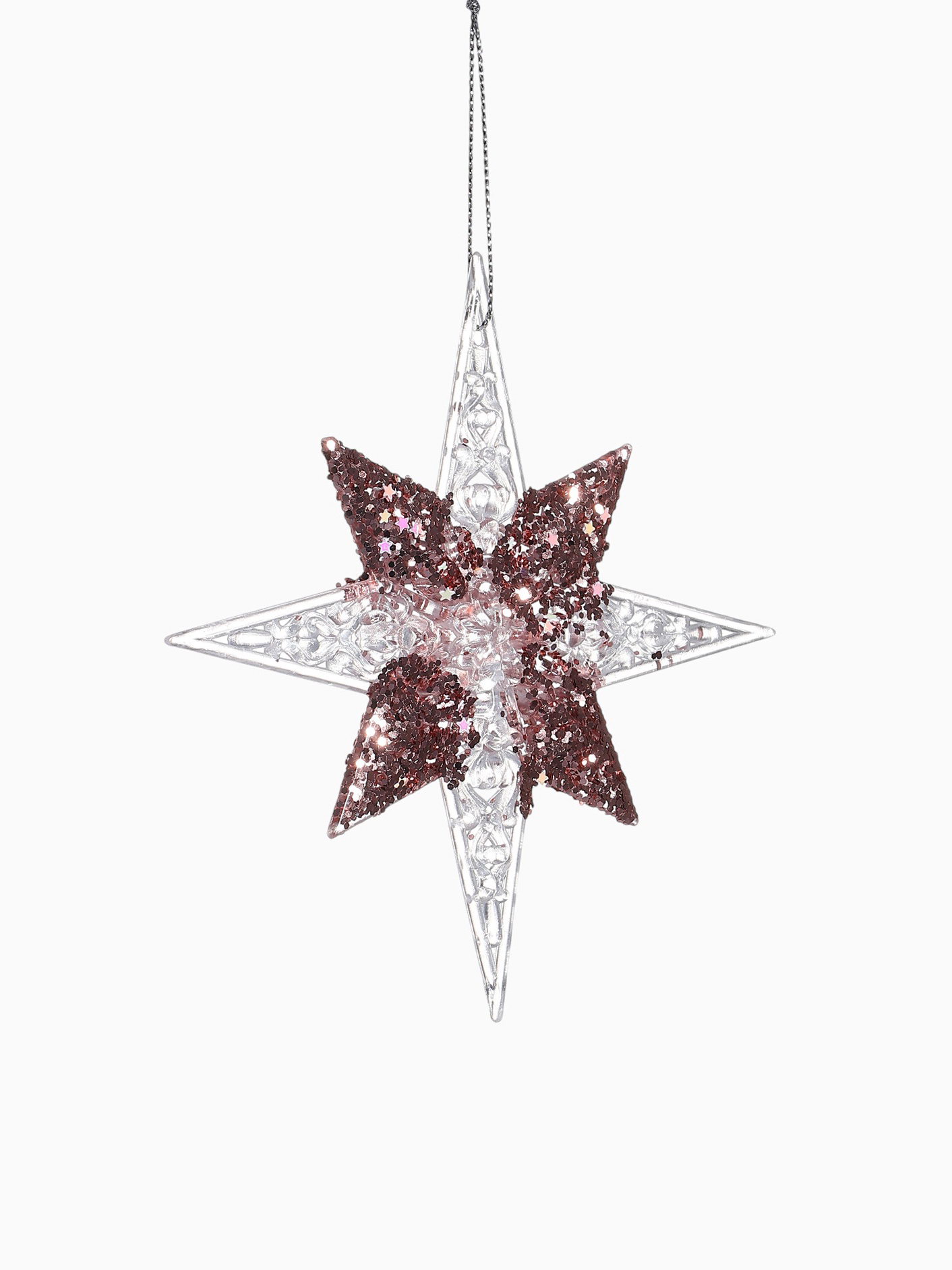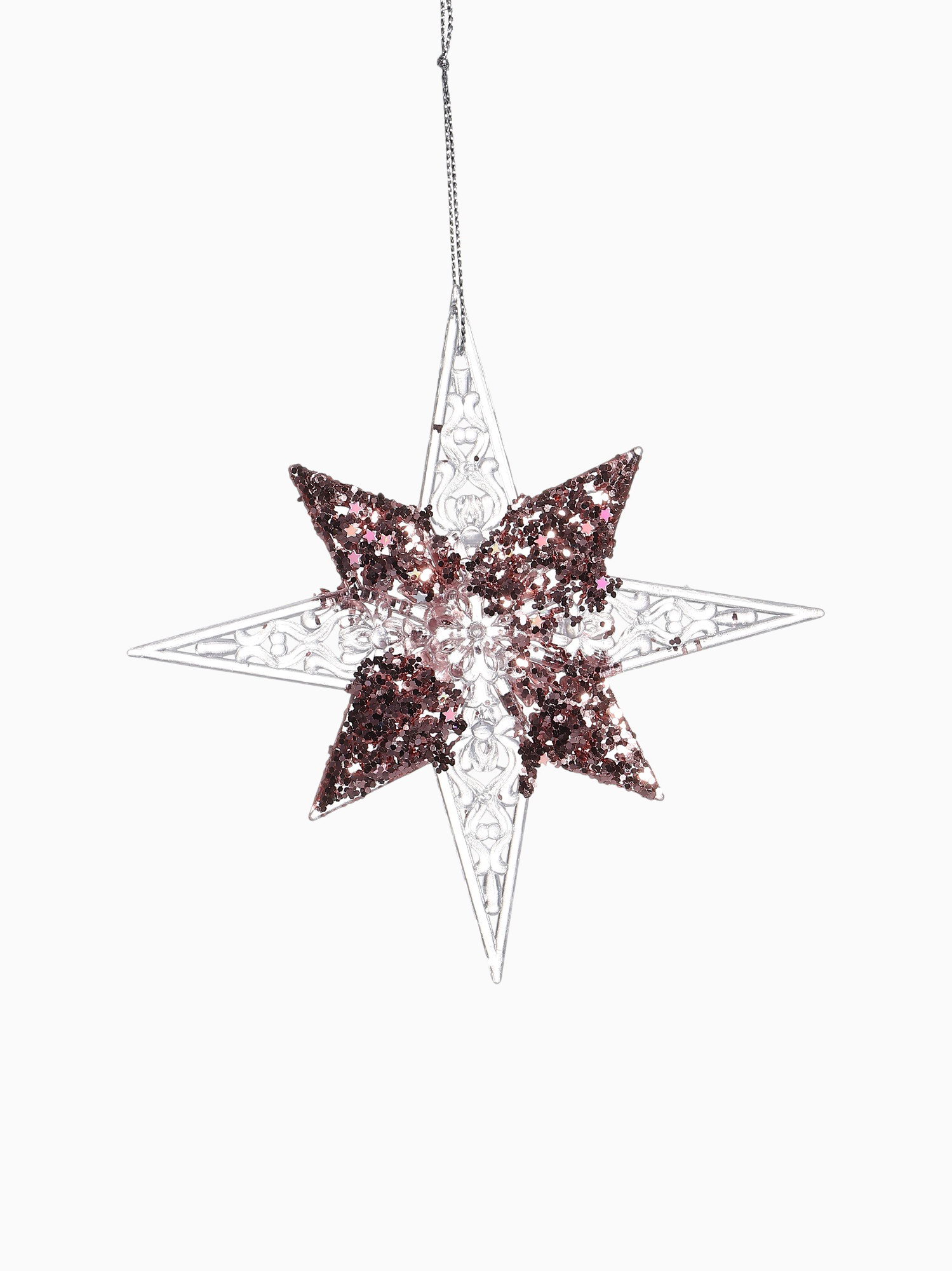 Ёлочная игрушка "Зимнее волшебство. Звезда сияние серединка блеск", 12x12 см, прозрачно-розовый, 12x12 см., Зимнее волшебство, Китай