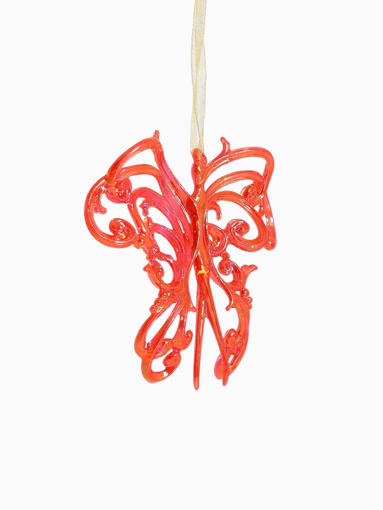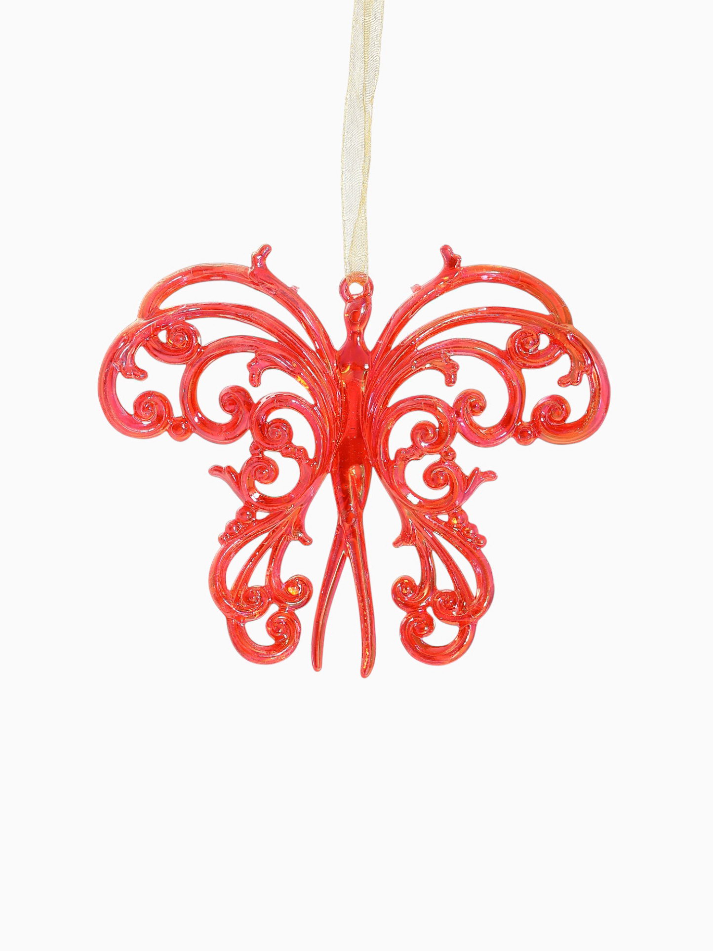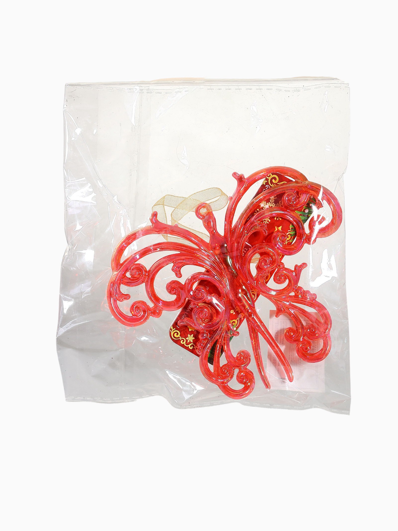 Ёлочная игрушка "Зимнее волшебство. Кружевная бабочка", 10x12 см, красный перелив, 12x10 см., Зимнее волшебство, Китай