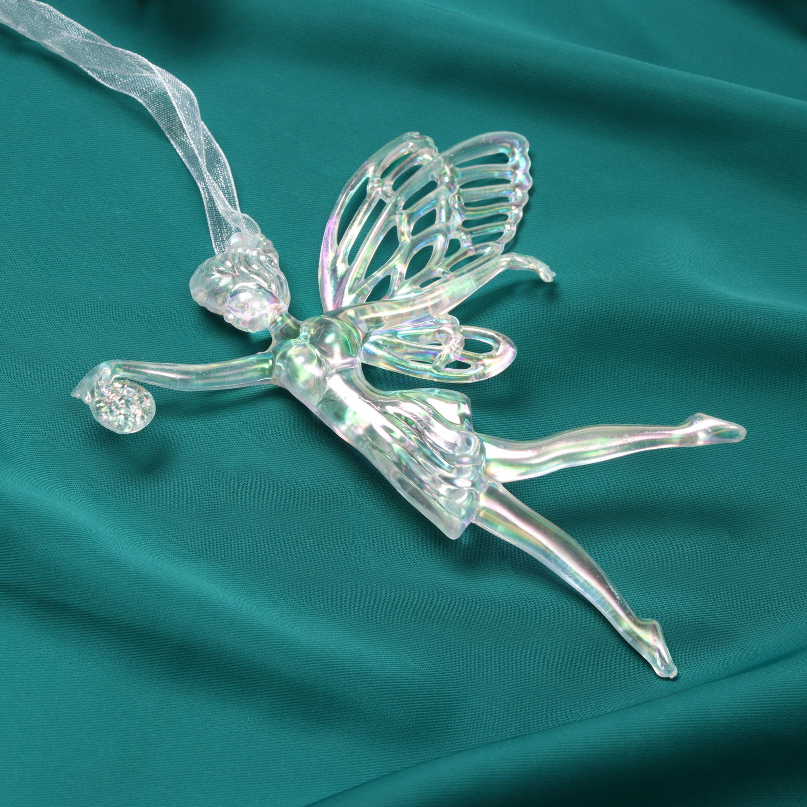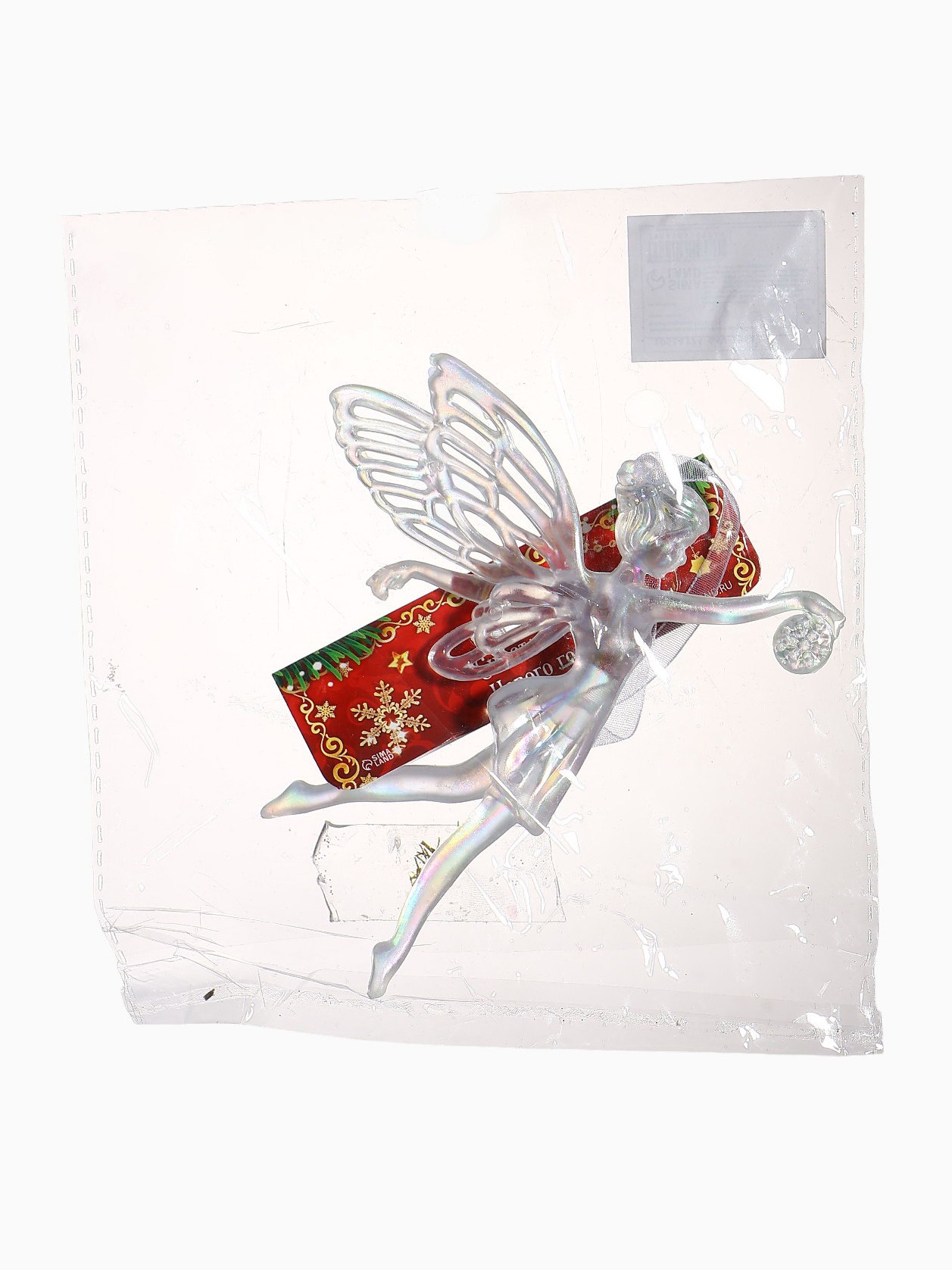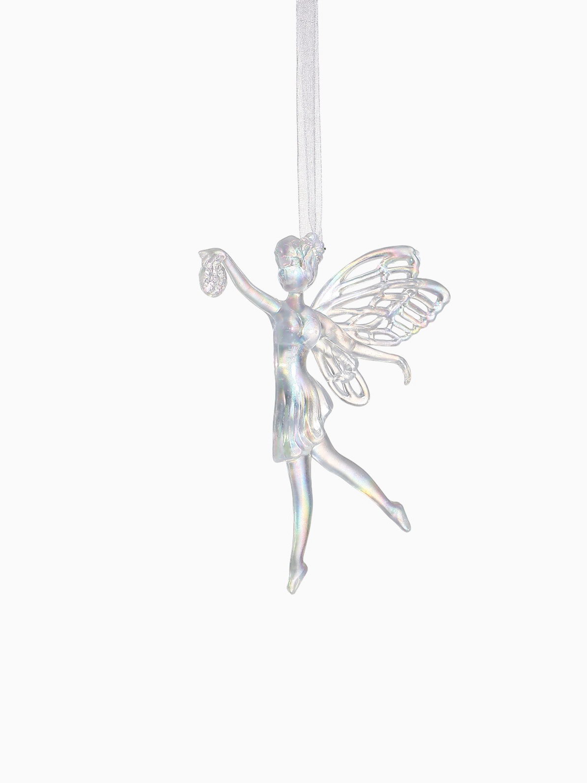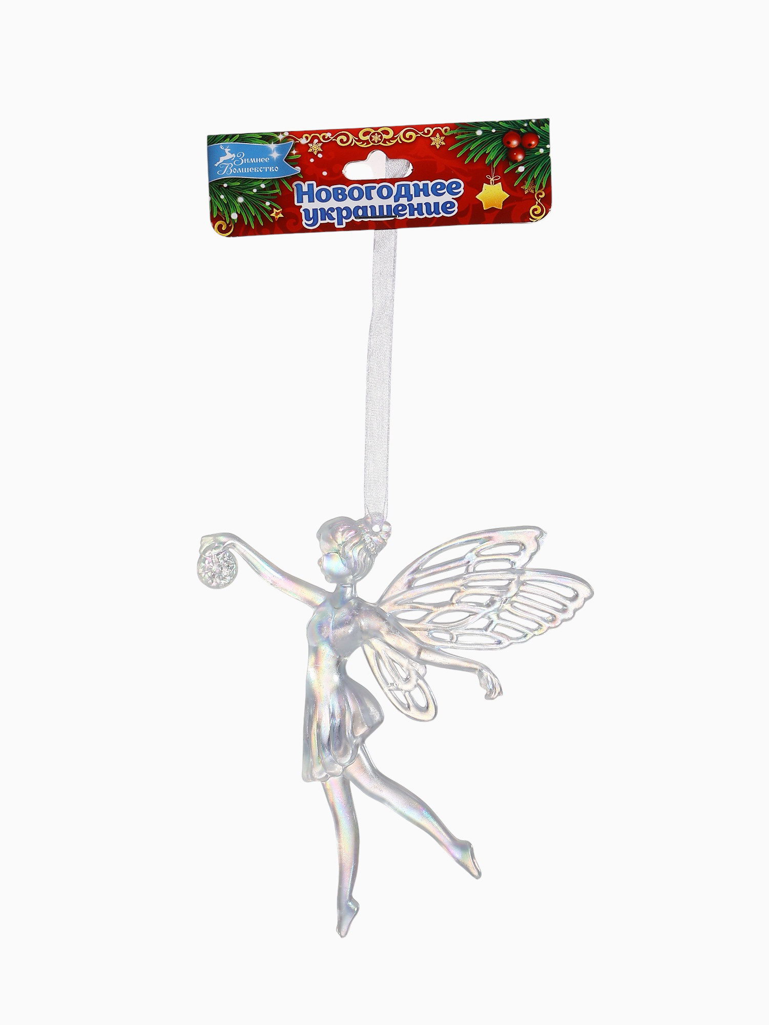 Ёлочная игрушка "Зимнее волшебство. Фея с шариком", 12x11.5 см, белый перелив, 11.5x12 см., Зимнее волшебство, Китай