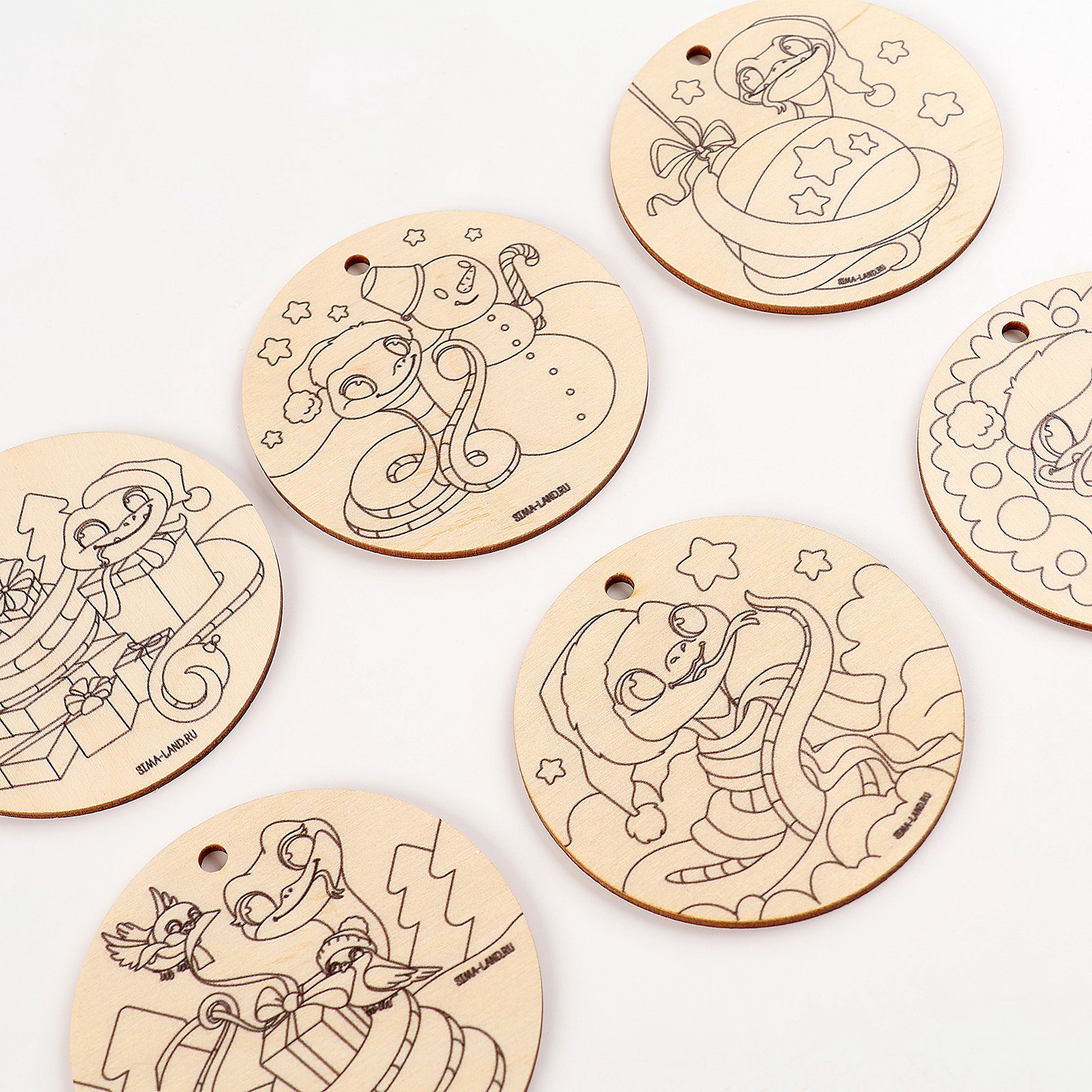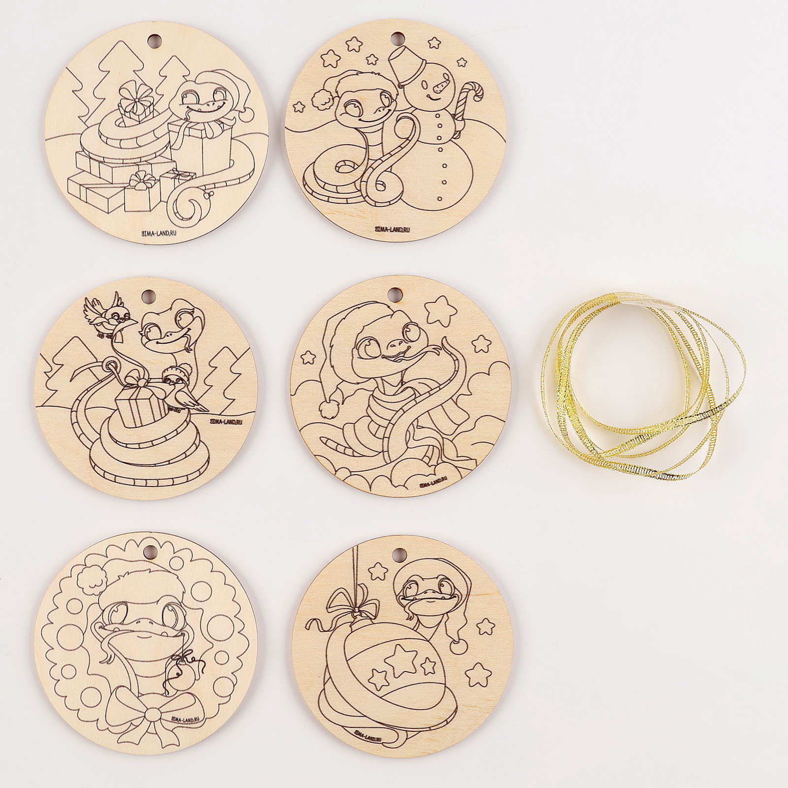 Заготовки для творчества новогодние, набор ёлочных игрушек "Змея", 6 шт., Лесная мастерская, Россия
