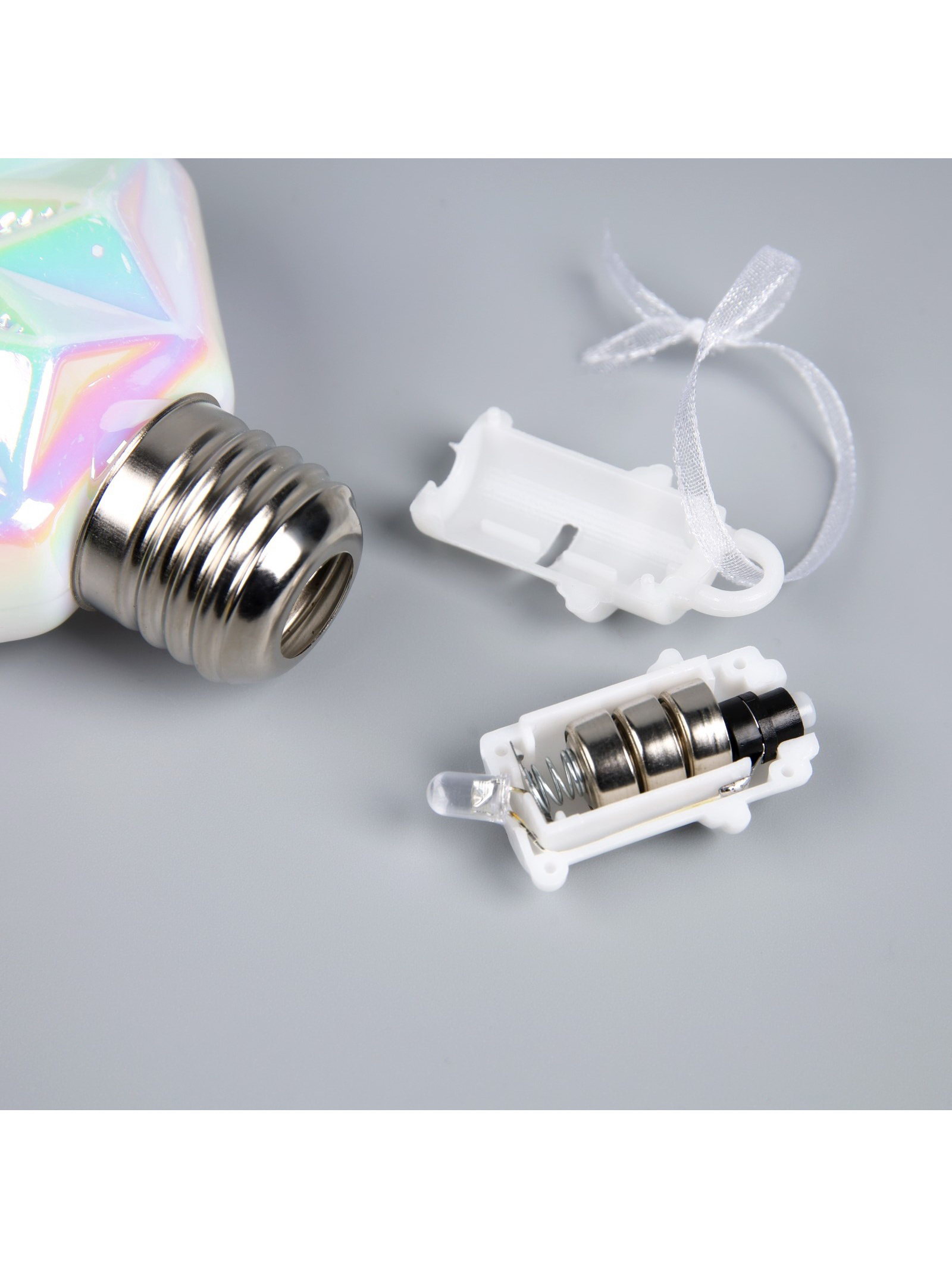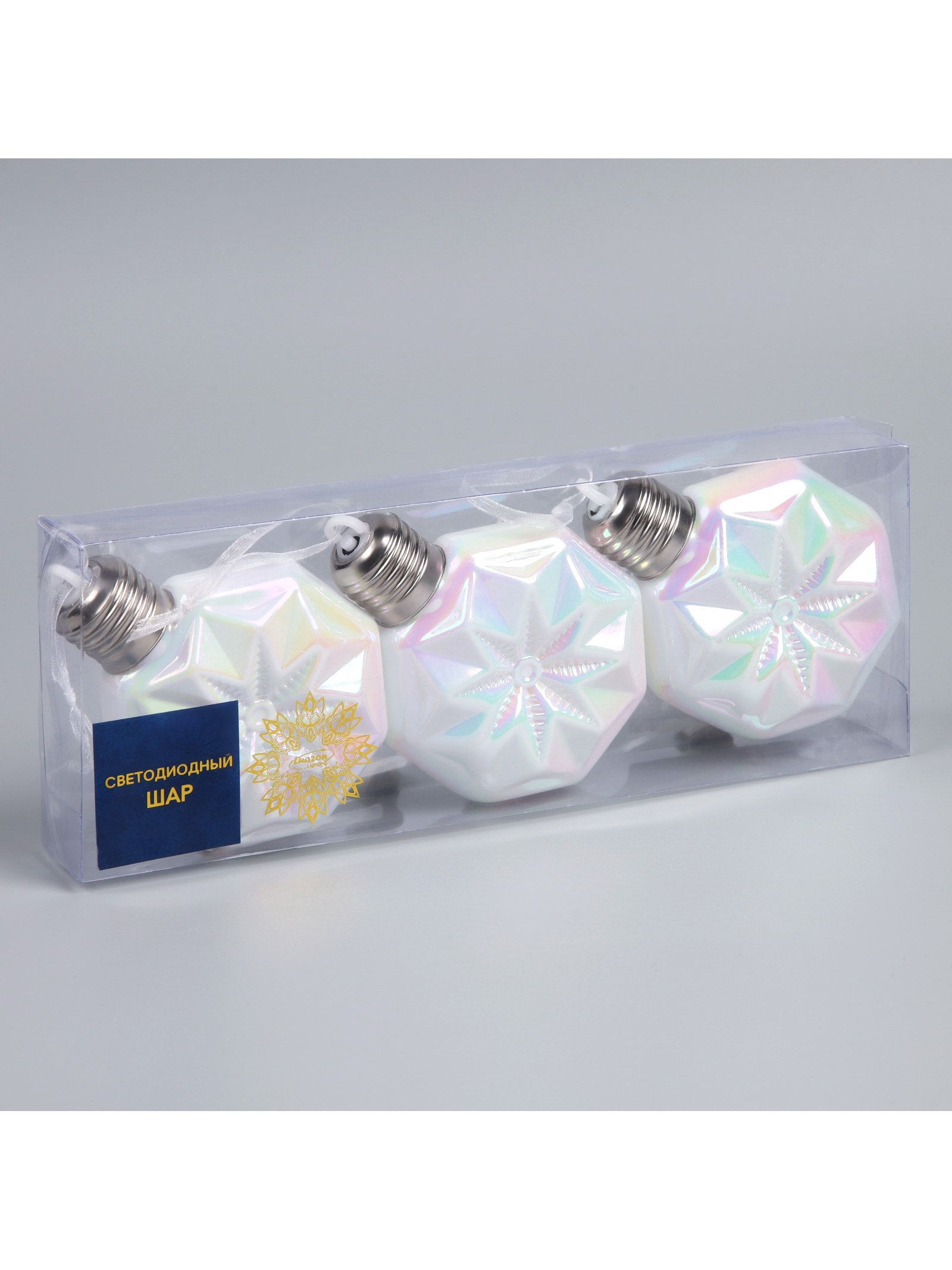 Набор ёлочных шаров "Изморозь", 3 шт, d=7.5 см, 3 LED, от батареек AG13x9, свечение тёплое белое, 4x8x24 см., Luazon Lighting, Китай