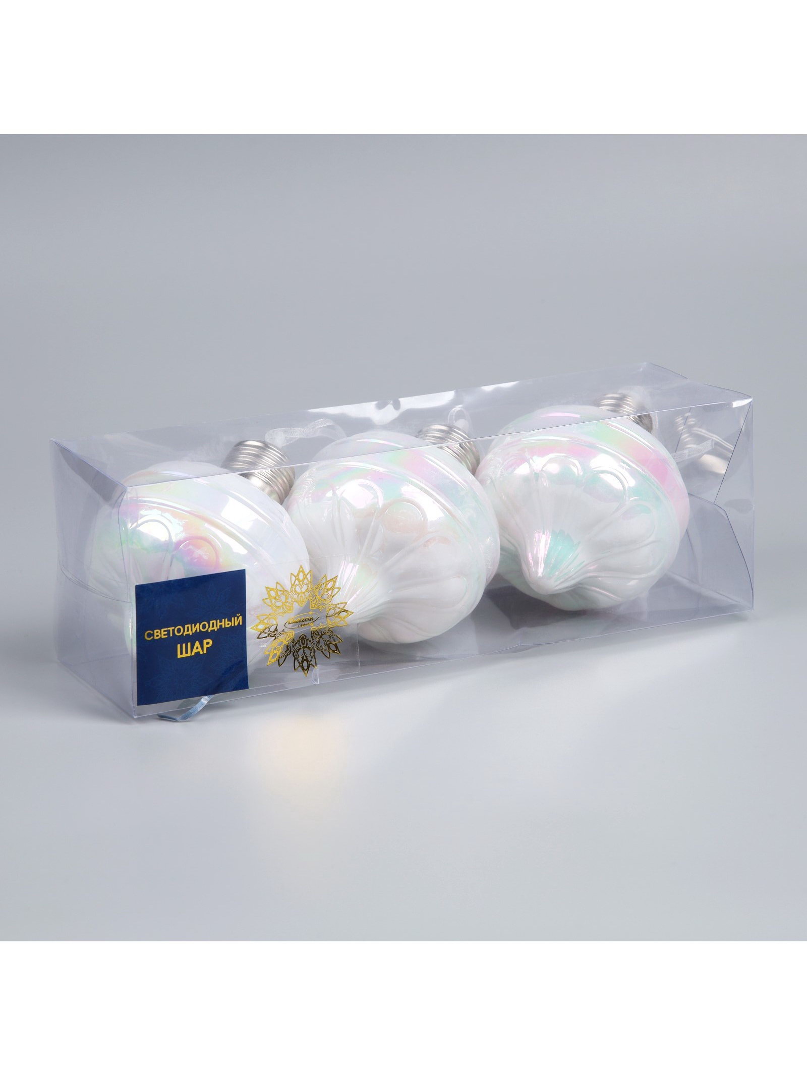Набор ёлочных шаров "Ретро", 3 шт, 8x7 см, 3 LED, от батареек AG13x9, свечение тёплое белое, 8x8x24 см., Luazon Lighting, Китай
