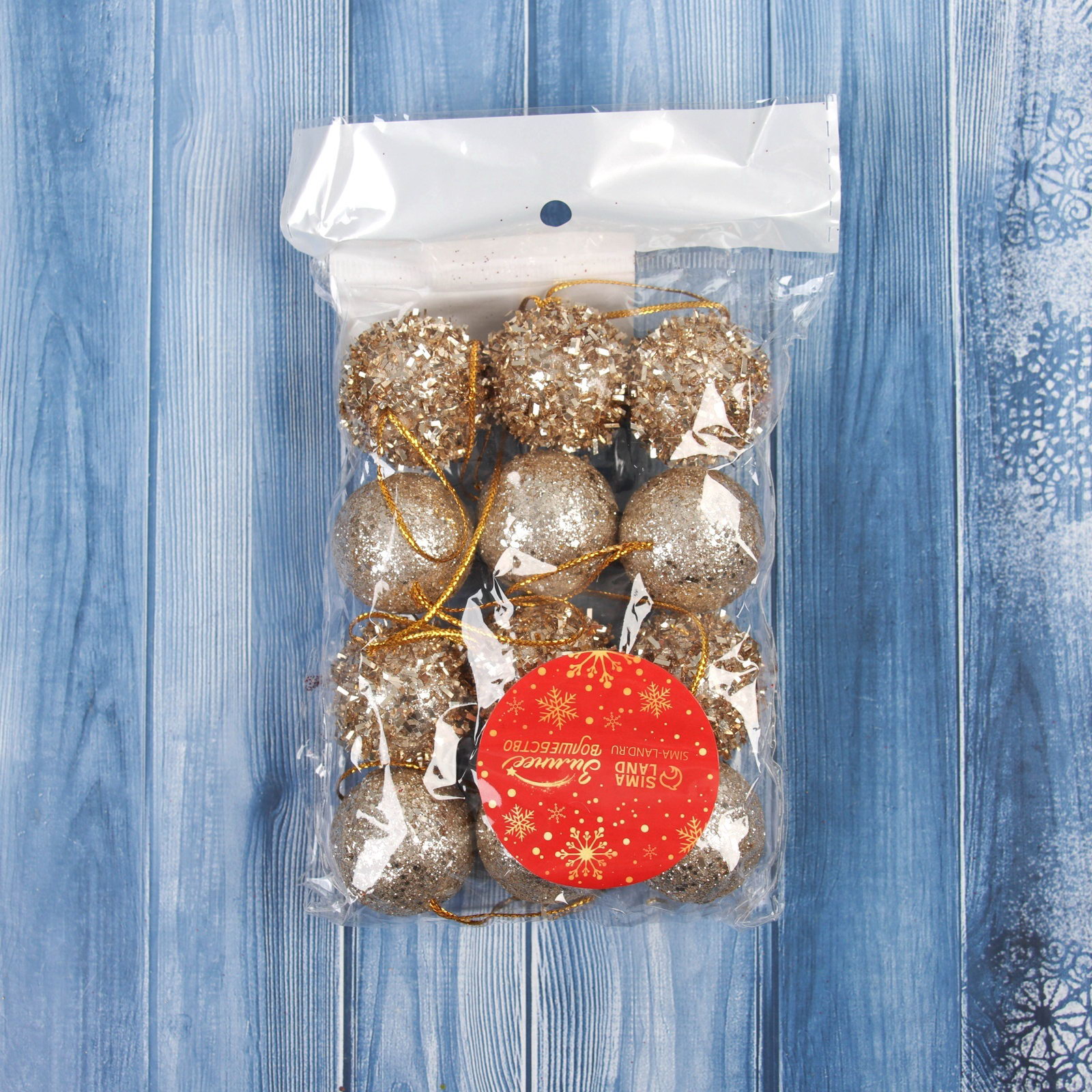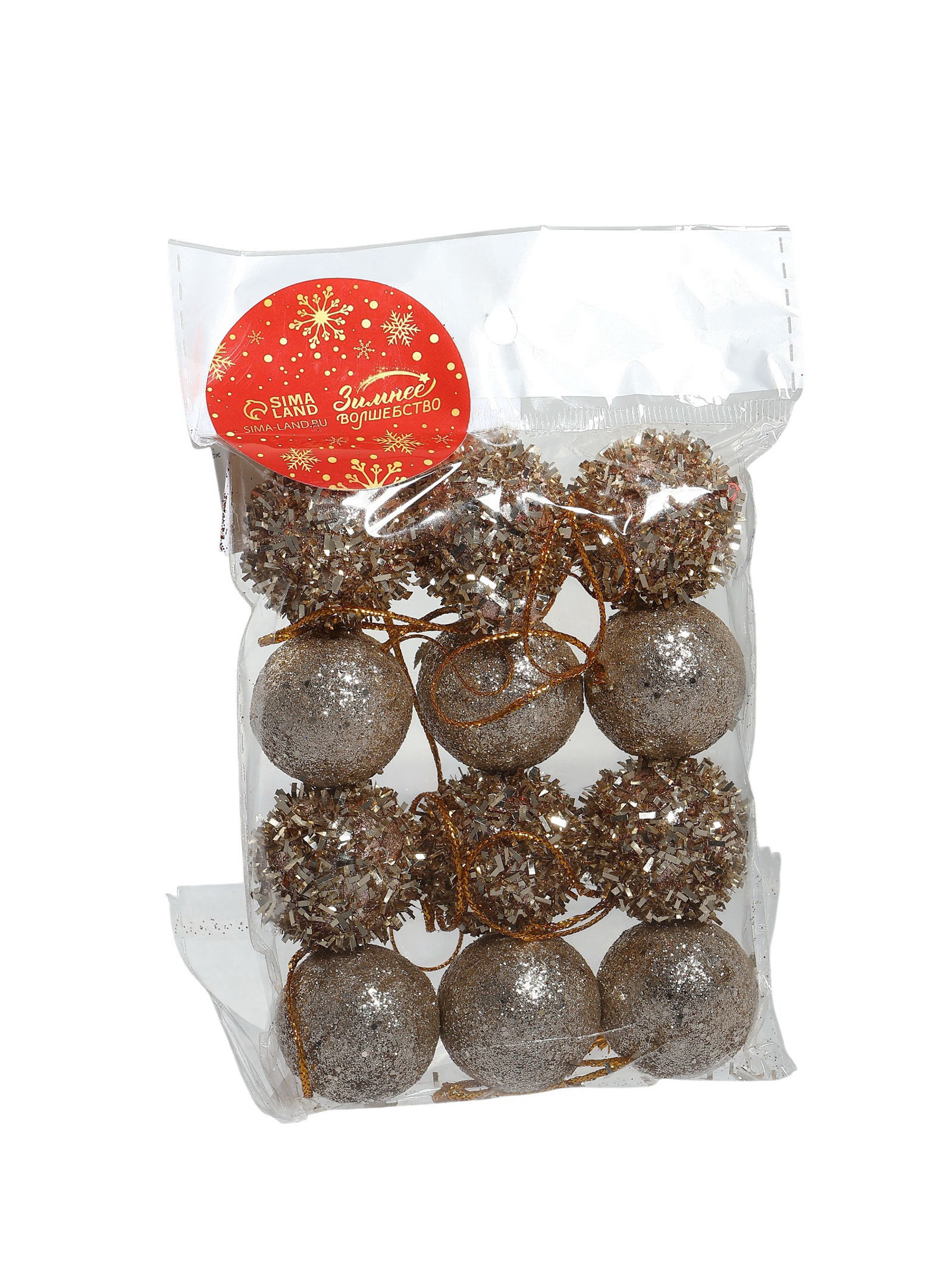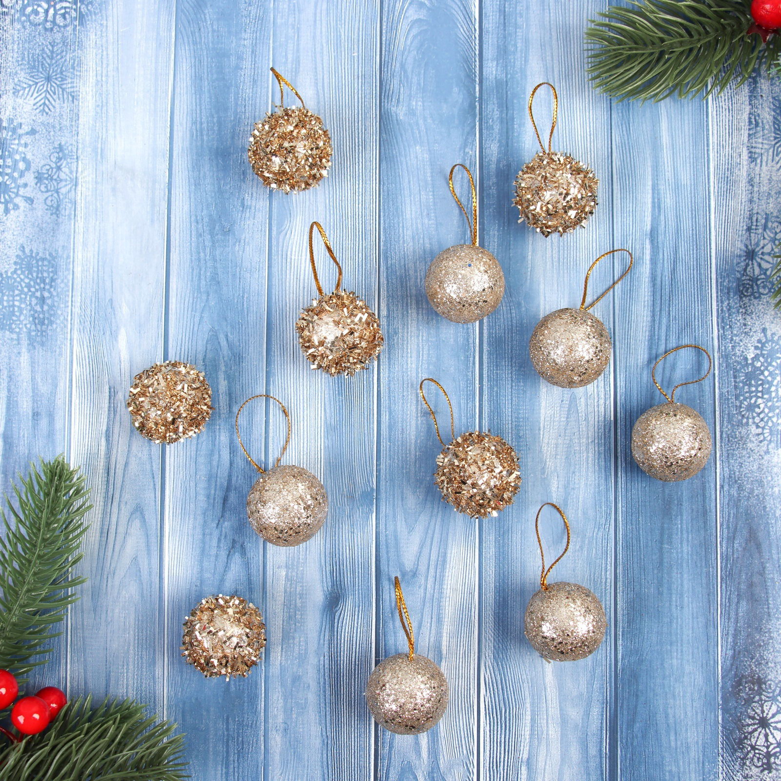 Ёлочные игрушки "Золото", шары новогодние, набор 12 шт., d=3 см, 3x3 см., Зимнее волшебство, Китай