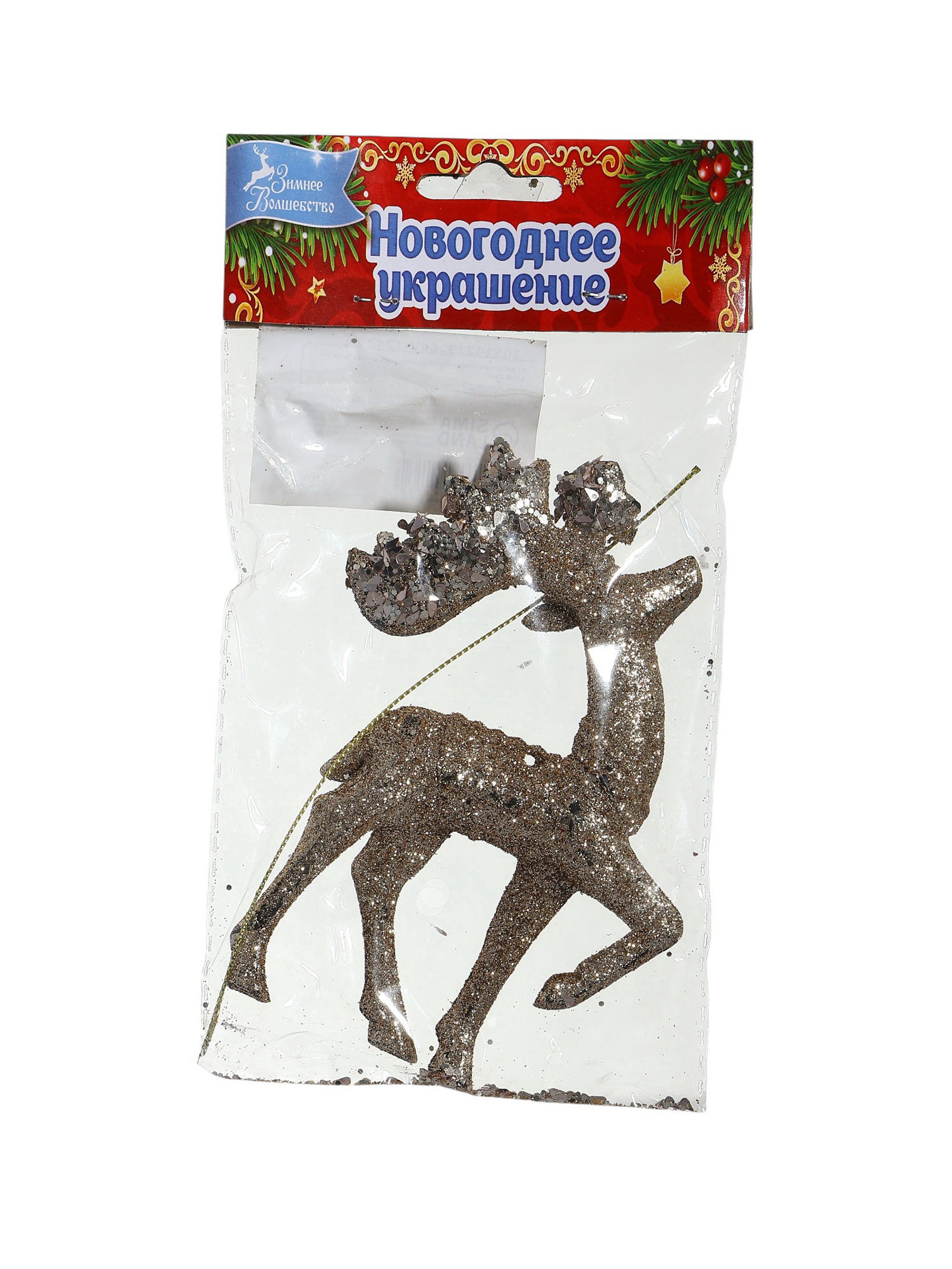 Ёлочная игрушка "Зимнее волшебство. Грациозный олень блеск" пластик, 13x8 см, золото, 8x13 см., Зимнее волшебство, Китай