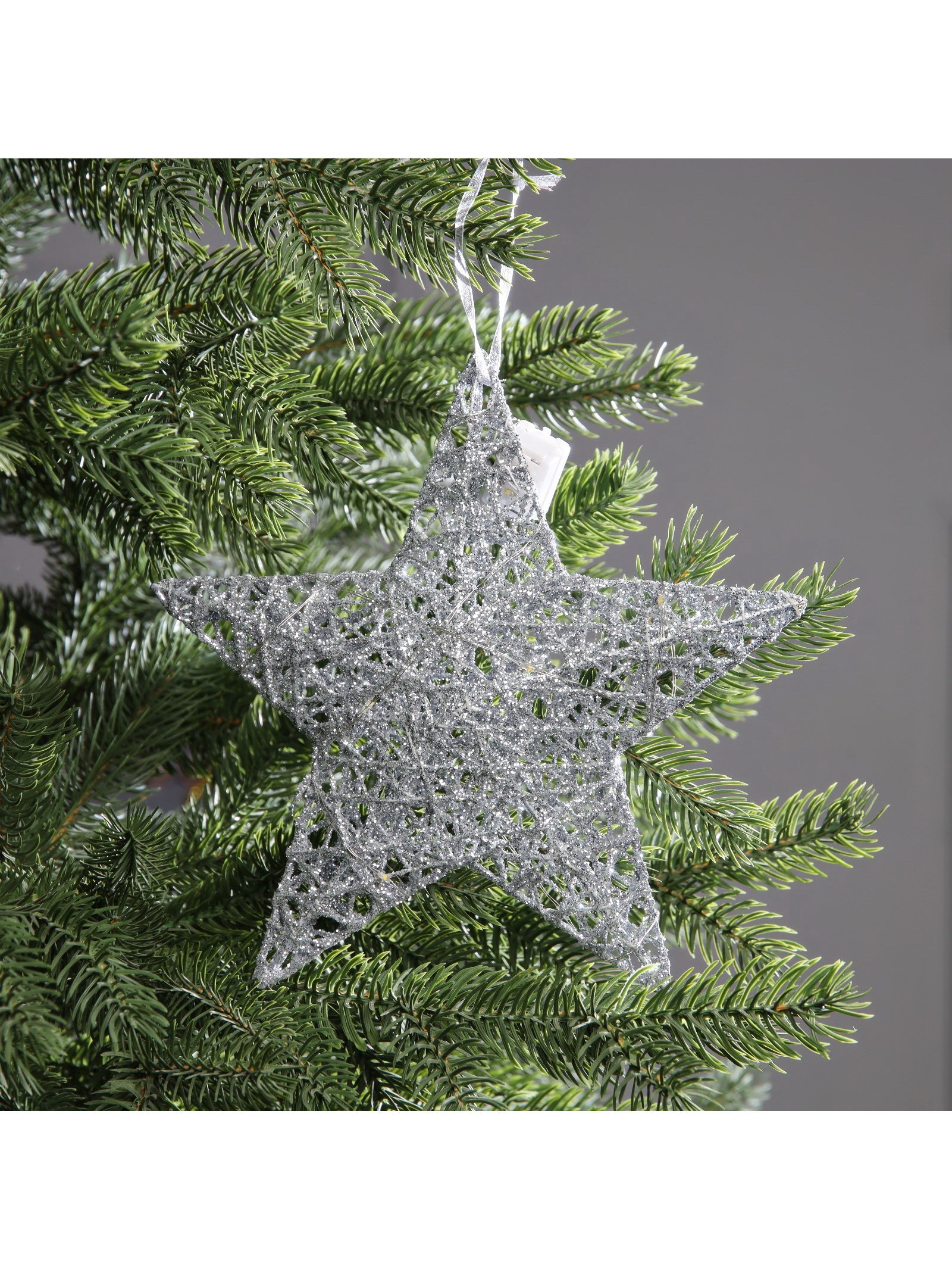 Подвеска световая "Звезда серебристая", 20x20х5 см, 10 LED, от батареек AG13x3, свечение тёплое белое, 20x20x5 см., Luazon Lighting, Китай