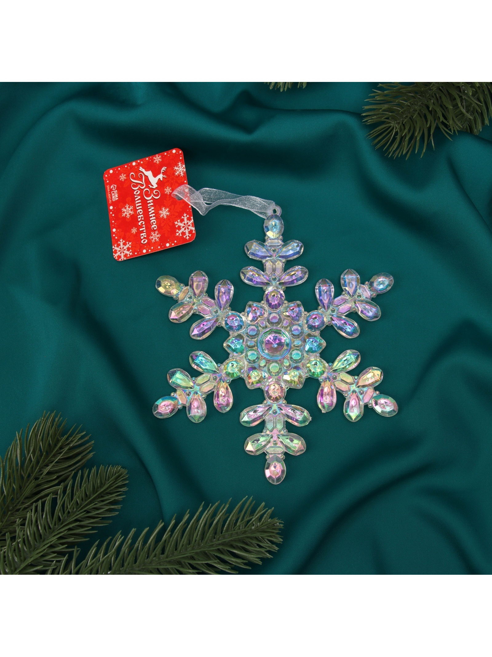 Ёлочная игрушка "Зимнее волшебство. Снежинка перелив", 11x9.5 см, прозрачный, 9.5x11 см., Зимнее волшебство, Китай