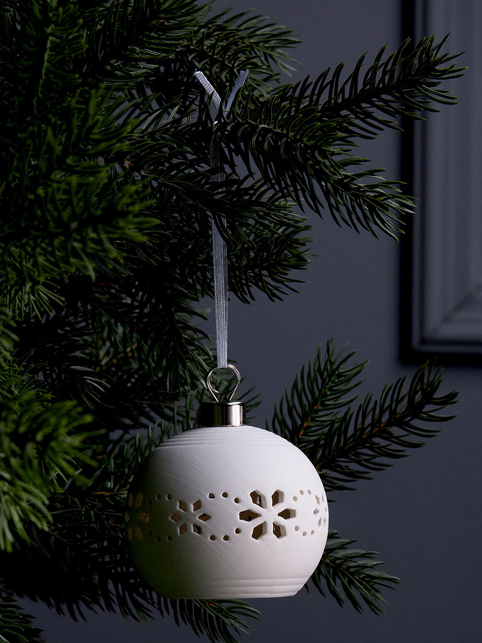 Ёлочный шар "Орнаменты", 6.9x6.9x5.9 см, 1 LED, от батареек LR44x3, свечение тёплое белое, 6.9x6.9x5.9 см., Luazon Lighting, Китай