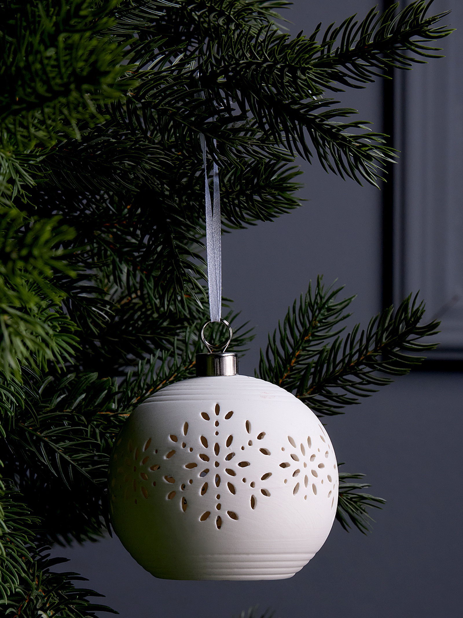 Ёлочный шар "Снежинки", 9x9х9.8 см, 1 LED, от батареек LR44x3, свечение тёплое белое, 9x9x9.8 см., Luazon Lighting, Китай