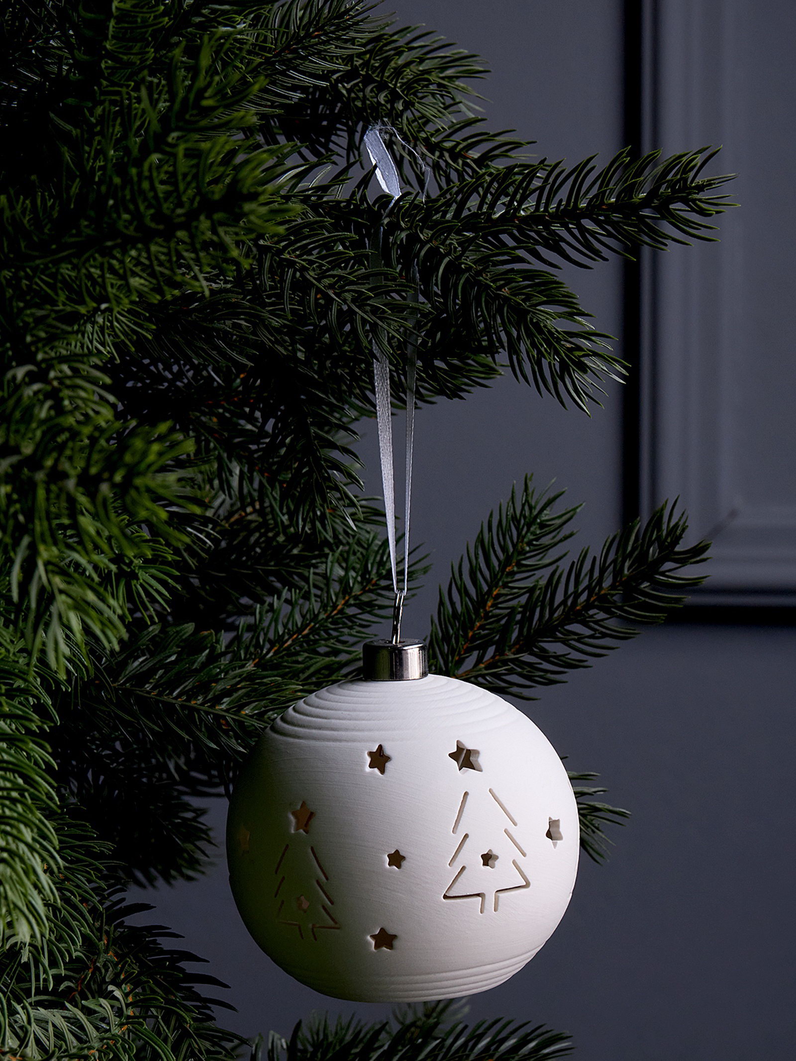 Ёлочный шар "Ёлки", 9x9х9.8 см, 1 LED, от батареек LR44x3, свечение тёплое белое, 9x9x9.8 см., Luazon Lighting, Китай