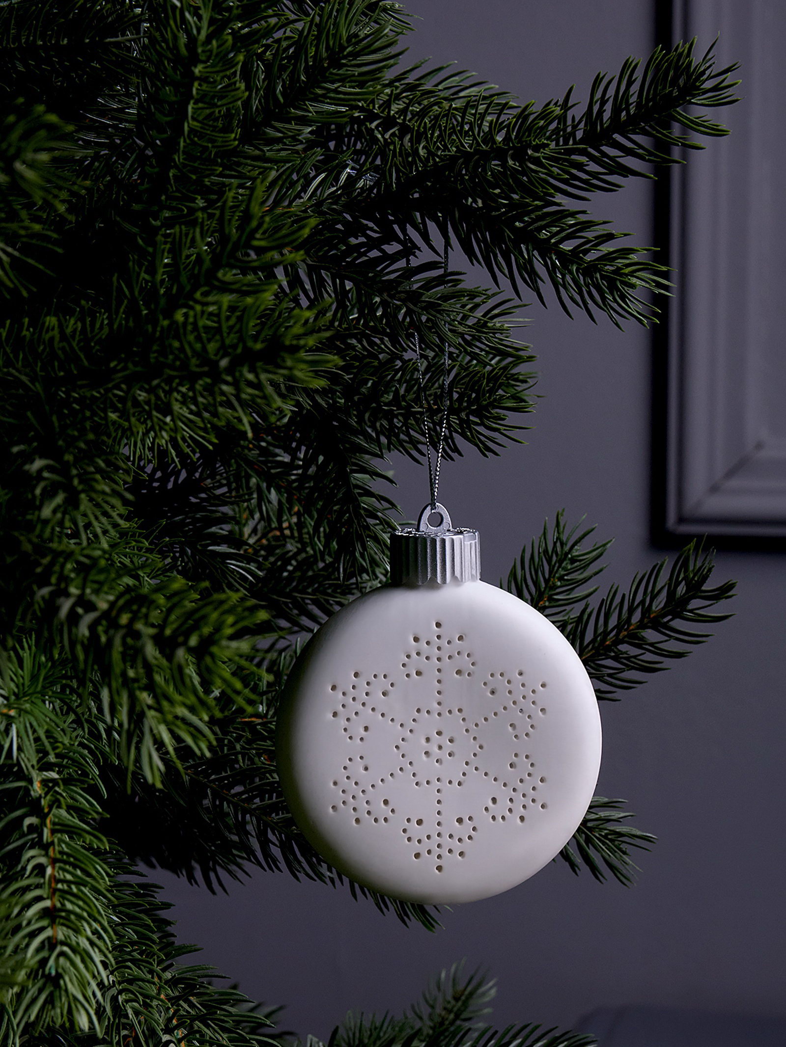 Ёлочный шар "Снежинка", 8.7x3.1x9.8 см, 1 LED, от батареек LR44x3, свечение тёплое белое, 3.1x8.7x9.8 см., Luazon Lighting, Китай