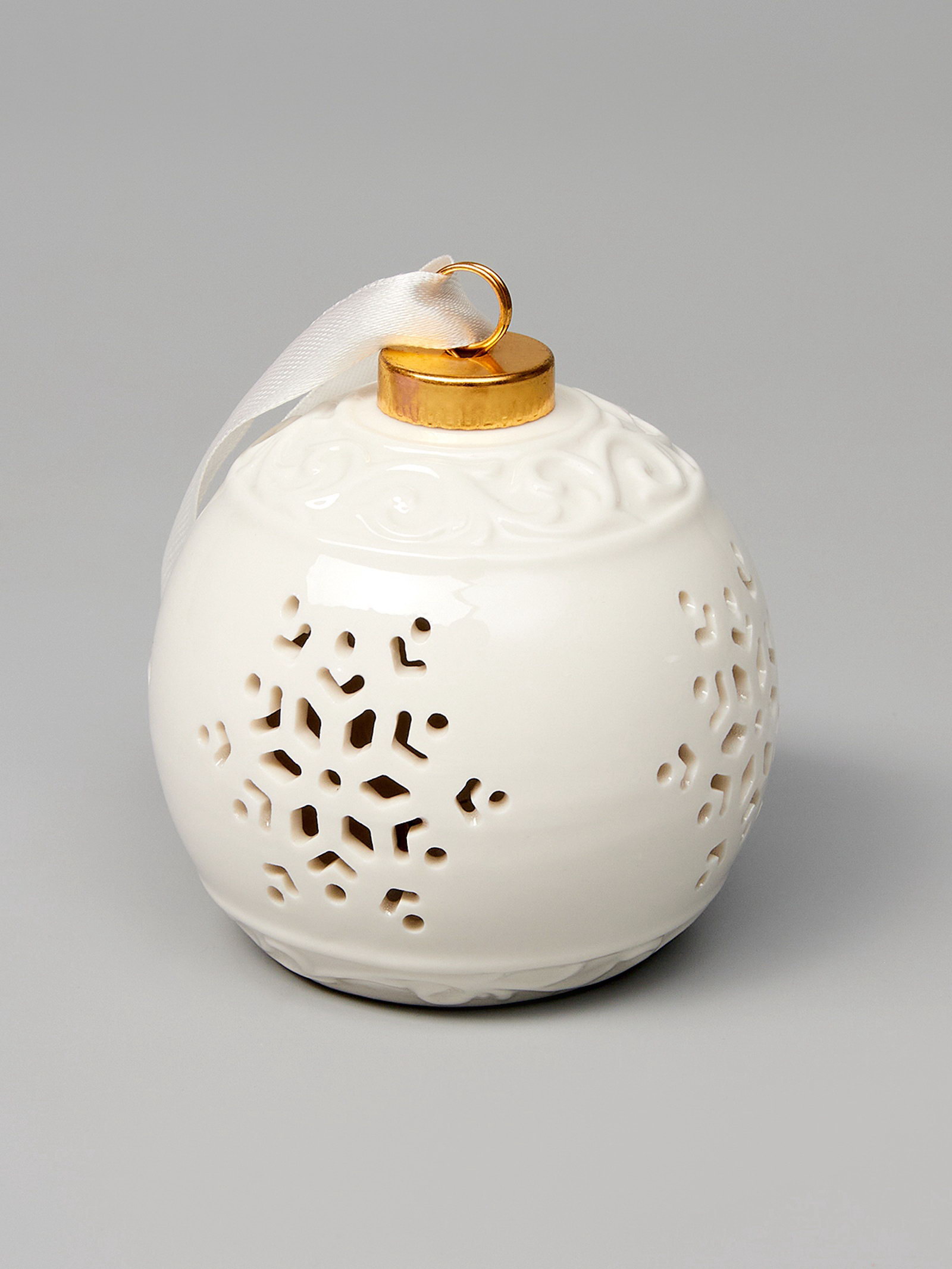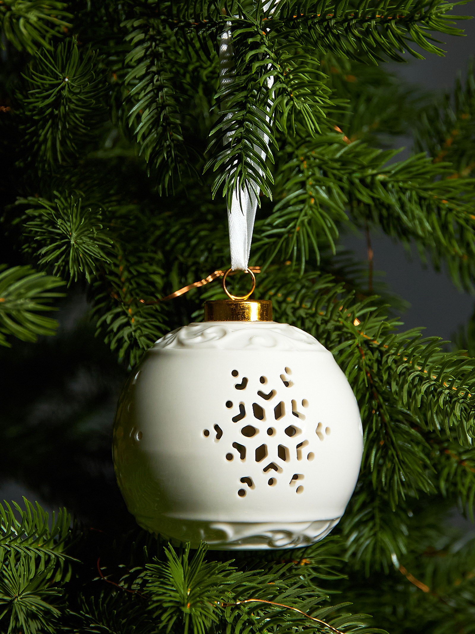 Ёлочный шар с подсветкой "Снежинка", 10x8.8x8.8 см, 1 LED, от батареек LR44x3, керамика, свечение тёплое белое, 8.8x10x8.8 см., Luazon Lighting, Китай