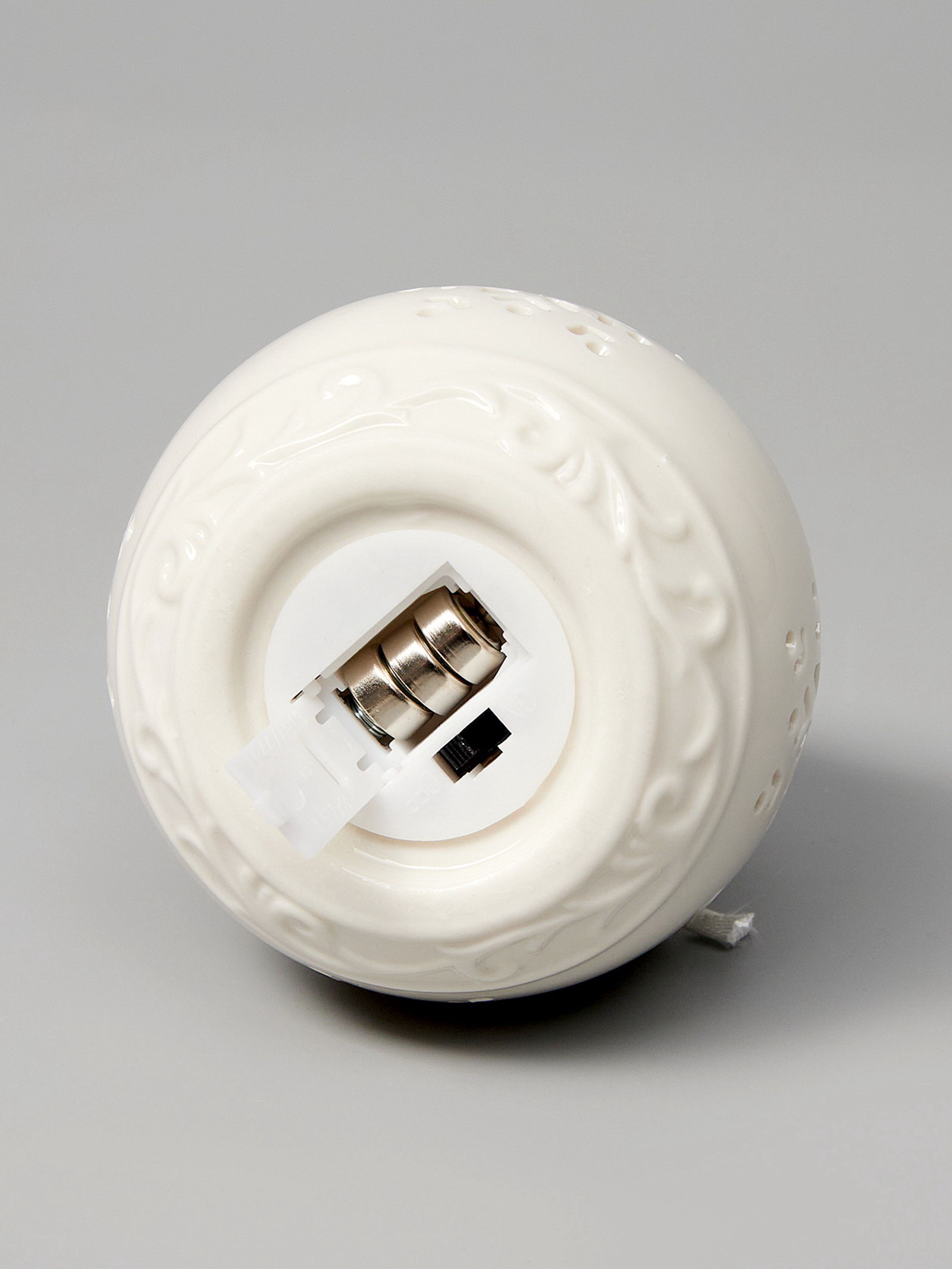 Размер упаковки: 8.8 x 8.8 x 10 см. Цвет: Белый Форма игрушки: Шар Диаметр шара, см: 8.8 Особенности: Со светодиодами Набор: Нет Гарантийный срок, мес.: 6 tnved: 9505109000 Символ года: Нет Тематика праздника: Новый год Тип питания: От батареек Цвет свечения: Тёплый белый Количество светодиодов: 1 Количество батареек: 3 Типоразмер батареек: LR44 (V13GA, AG13, LR1154, SR44) Керамический светящийся ёлочный шар "Снежинка" станет настоящим украшением вашего праздника. Этот декоративный элемент привнесёт тёплый белый свет в ваш дом и создаст атмосферу зимней сказки. Характеристики