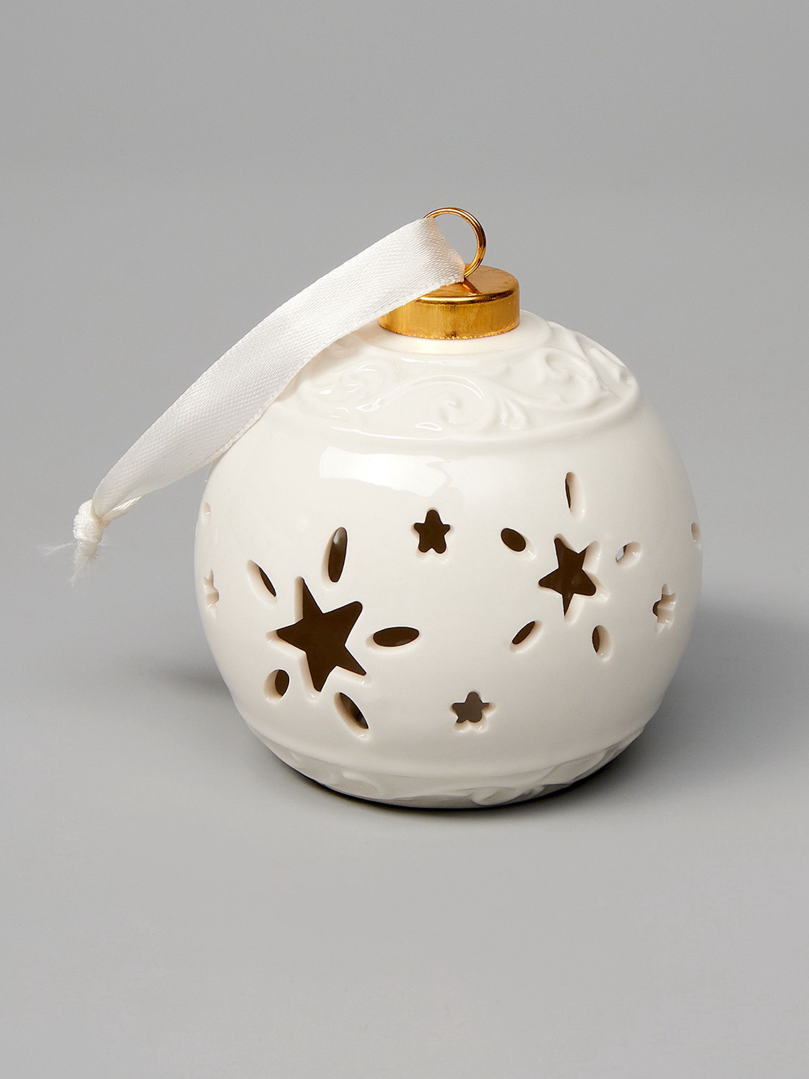 Ёлочный шар с подсветкой "Звёздочки", 10x8.8x8.8 см, 1 LED, от батареек LR44x3, керамика, свечение тёплое белое, 8.8x10x8.8 см., Luazon Lighting, Китай