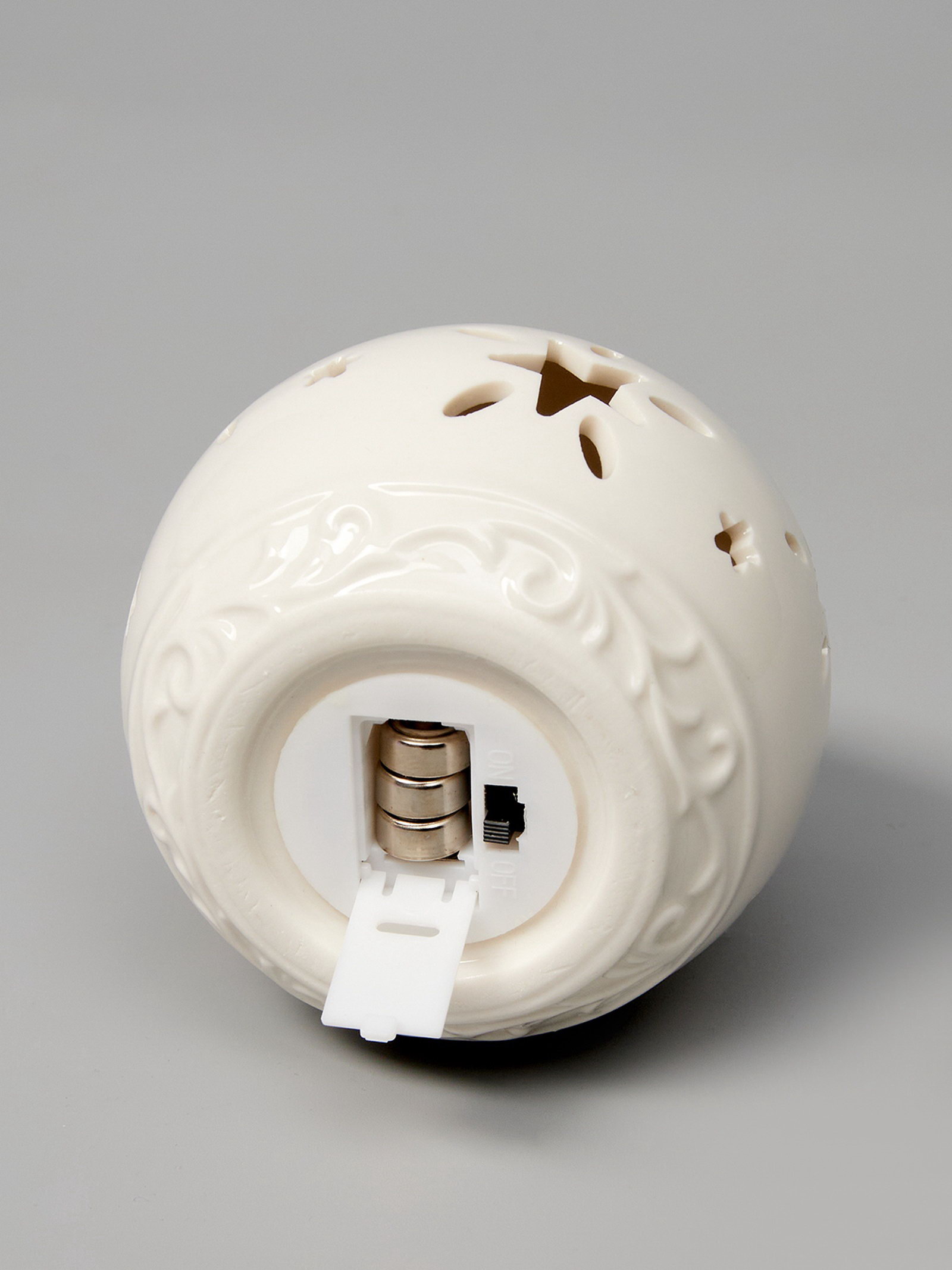 Размер упаковки: 8.8 x 8.8 x 10 см. Форма игрушки: Шар Цвет: Белый Диаметр шара, см: 8.8 Особенности: Со светодиодами Набор: Нет Гарантийный срок, мес.: 6 tnved: 9505109000 Тематика праздника: Новый год Тип питания: От батареек Цвет свечения: Тёплый белый Символ года: Нет Количество светодиодов: 1 Количество батареек: 3 Типоразмер батареек: LR44 (V13GA, AG13, LR1154, SR44) Праздничный светящийся шар украсит любой интерьер и создаст уютную атмосферу. Изготовленный из керамики, он источает тёплый белый свет, создавая иллюзию звёздного неба прямо у вас дома. Компактные размеры делают его идеальным даже для маленьких пространств, а встроенная LED подсветка обладает долгим сроком службы. Особенности