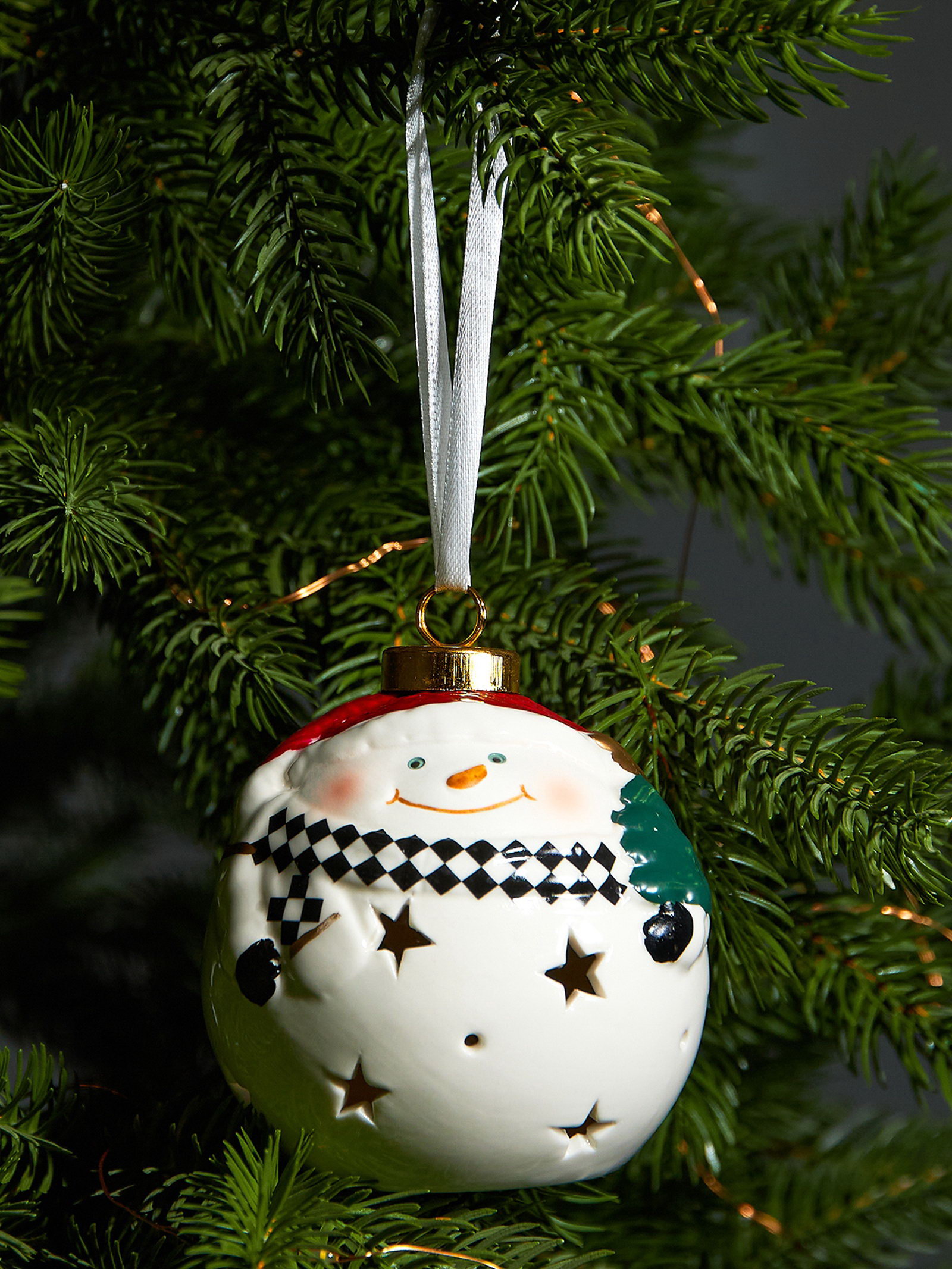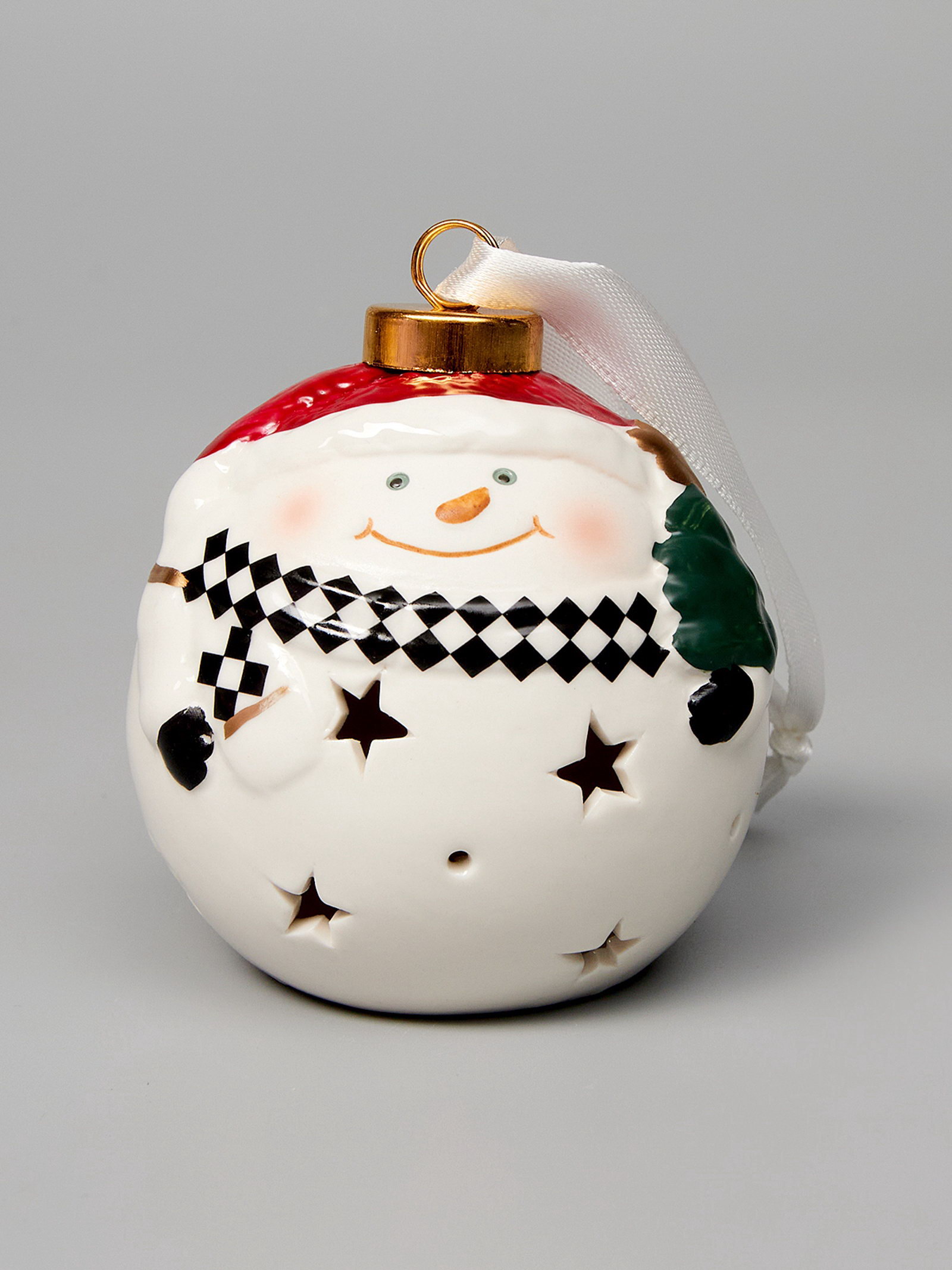 Ёлочный шар с подсветкой "Снеговик", 10x8.6x8.6 см, 1 LED, от батареек LR44x3, керамика, свечение тёплое белое, 8.6x10x8.6 см., Luazon Lighting, Китай