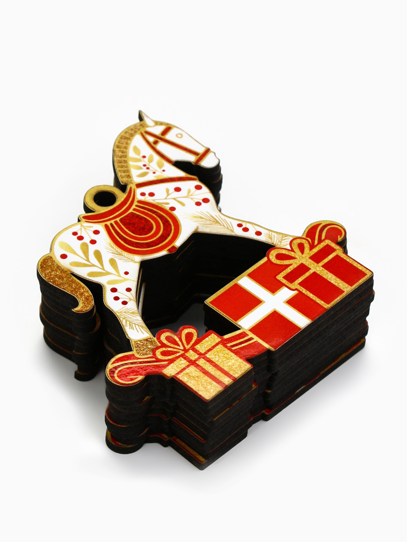 Ёлочная игрушка деревянная "Новогодний конь", набор 10 шт., Сима-ленд, Россия