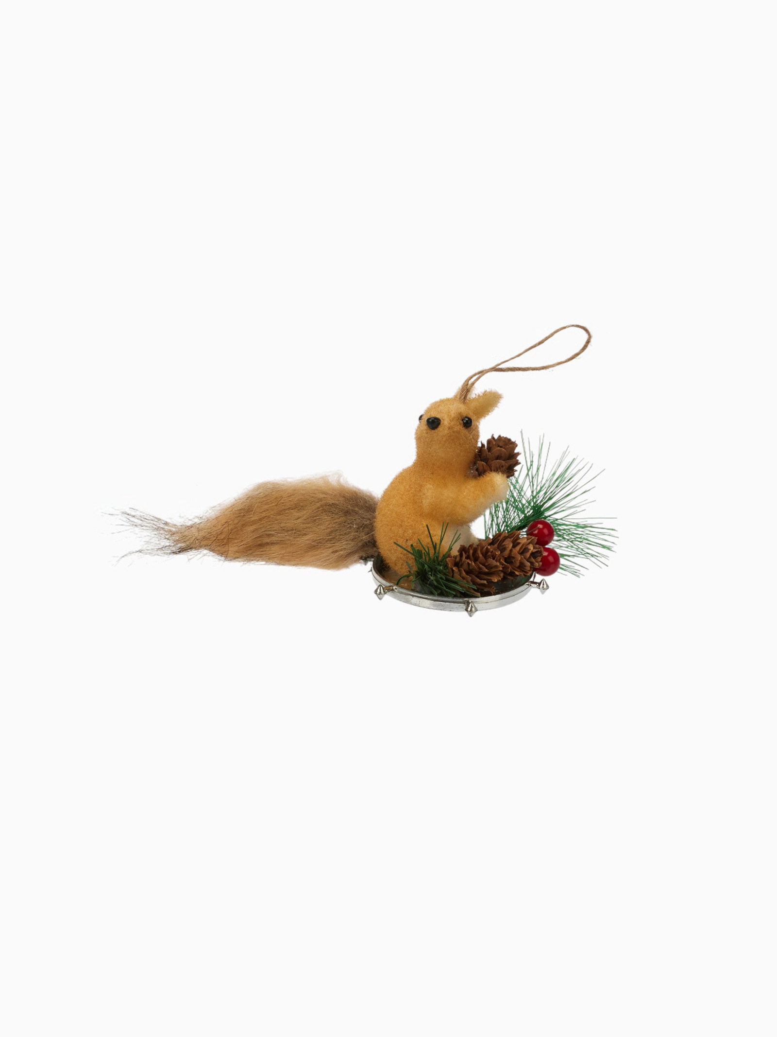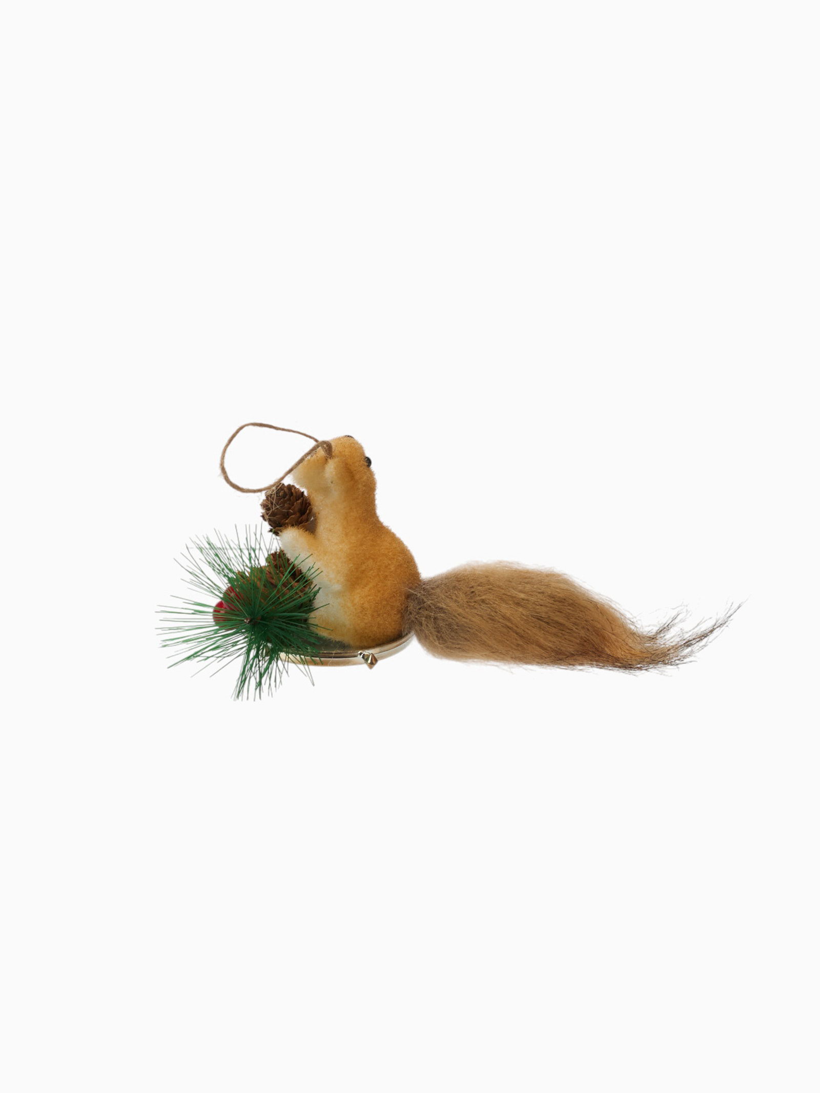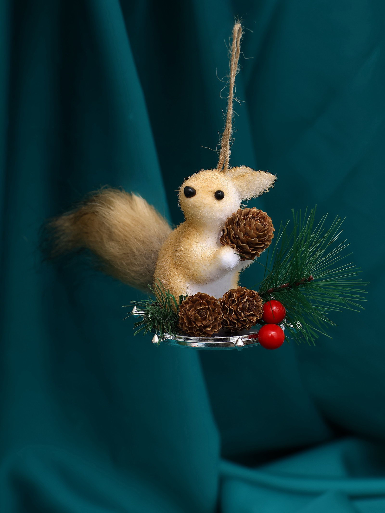 Ёлочная игрушка "Бельчонок на веточке" 7.5x12 см, бежевый, 12x7.5 см., Зимнее волшебство, Китай