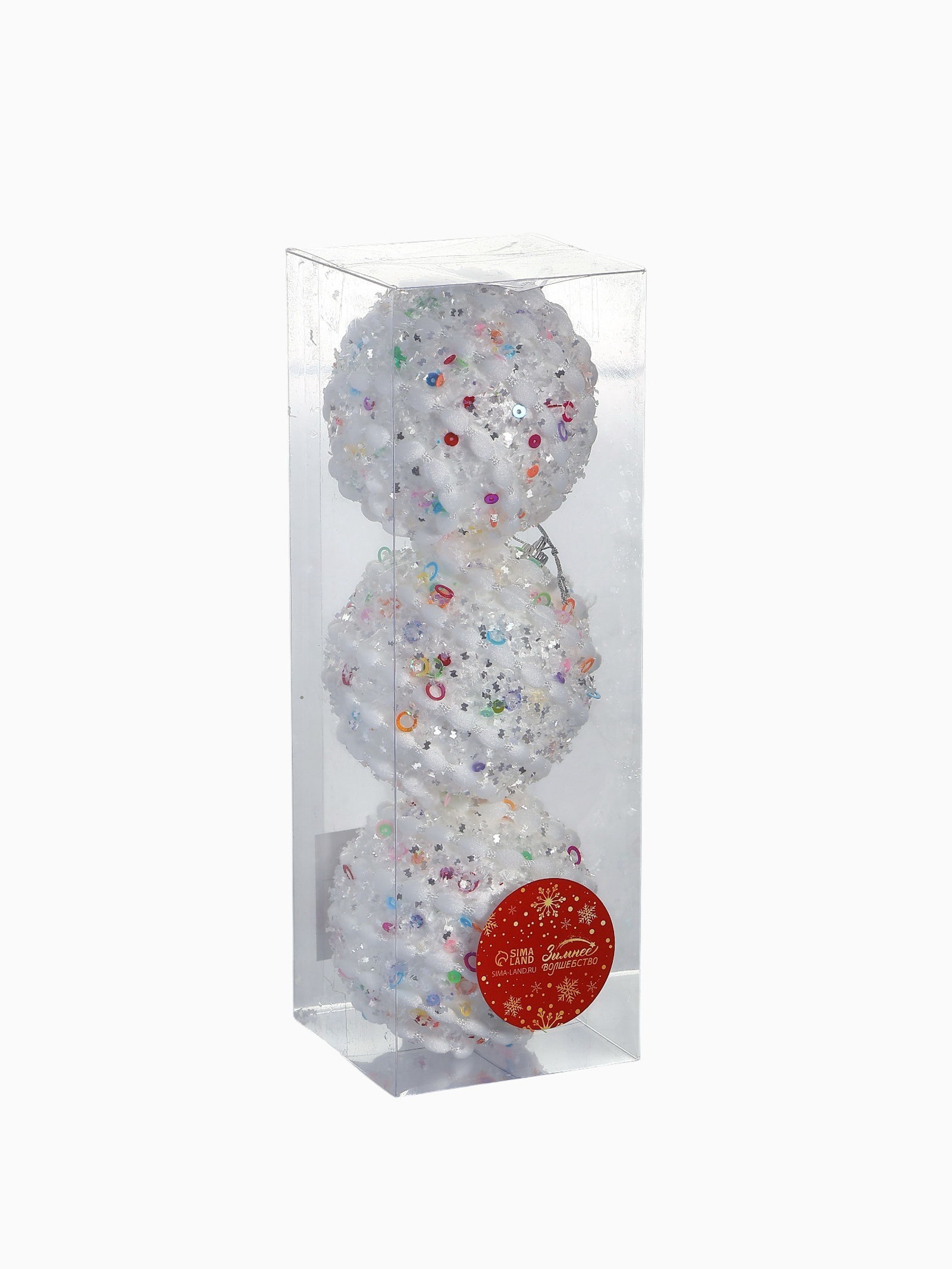 Ёлочные игрушки "Акли", шары новогодние, d=8 см, 3 шт., белый, 8x8 см., Зимнее волшебство, Китай