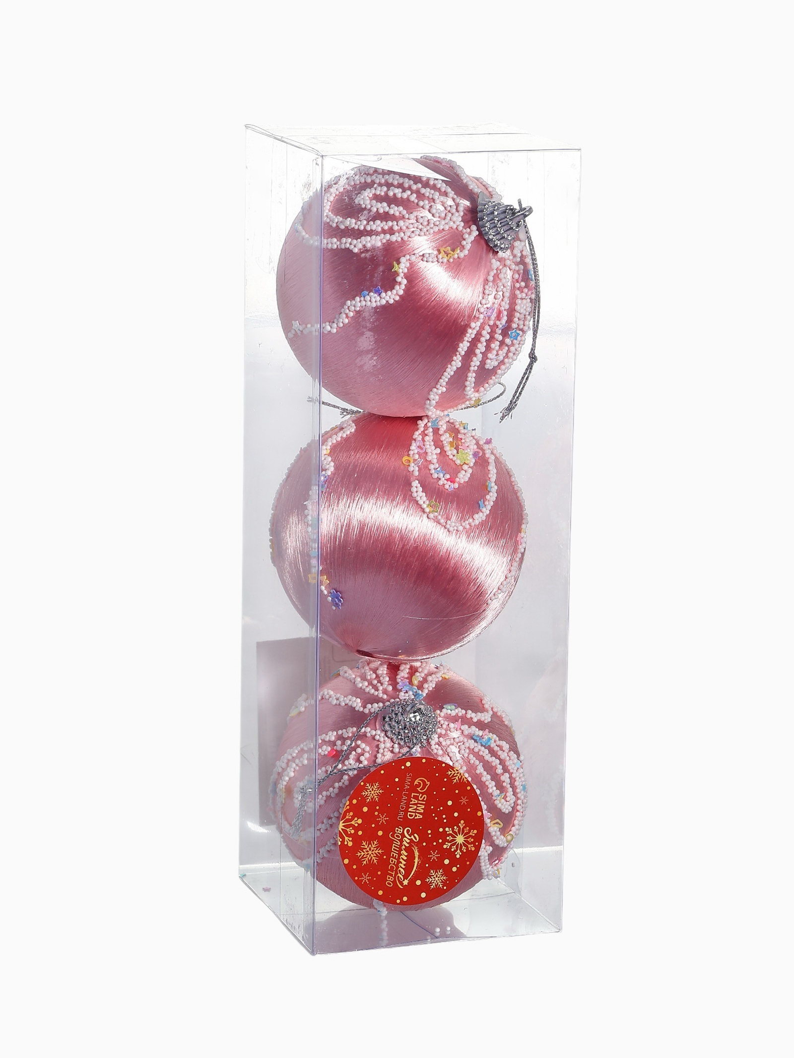 Ёлочные игрушки "Бамби", шары новогодние, d=8 см, 3 шт., розовый, 8x8 см., Зимнее волшебство, Китай